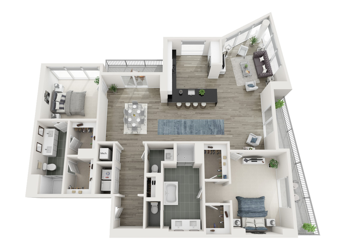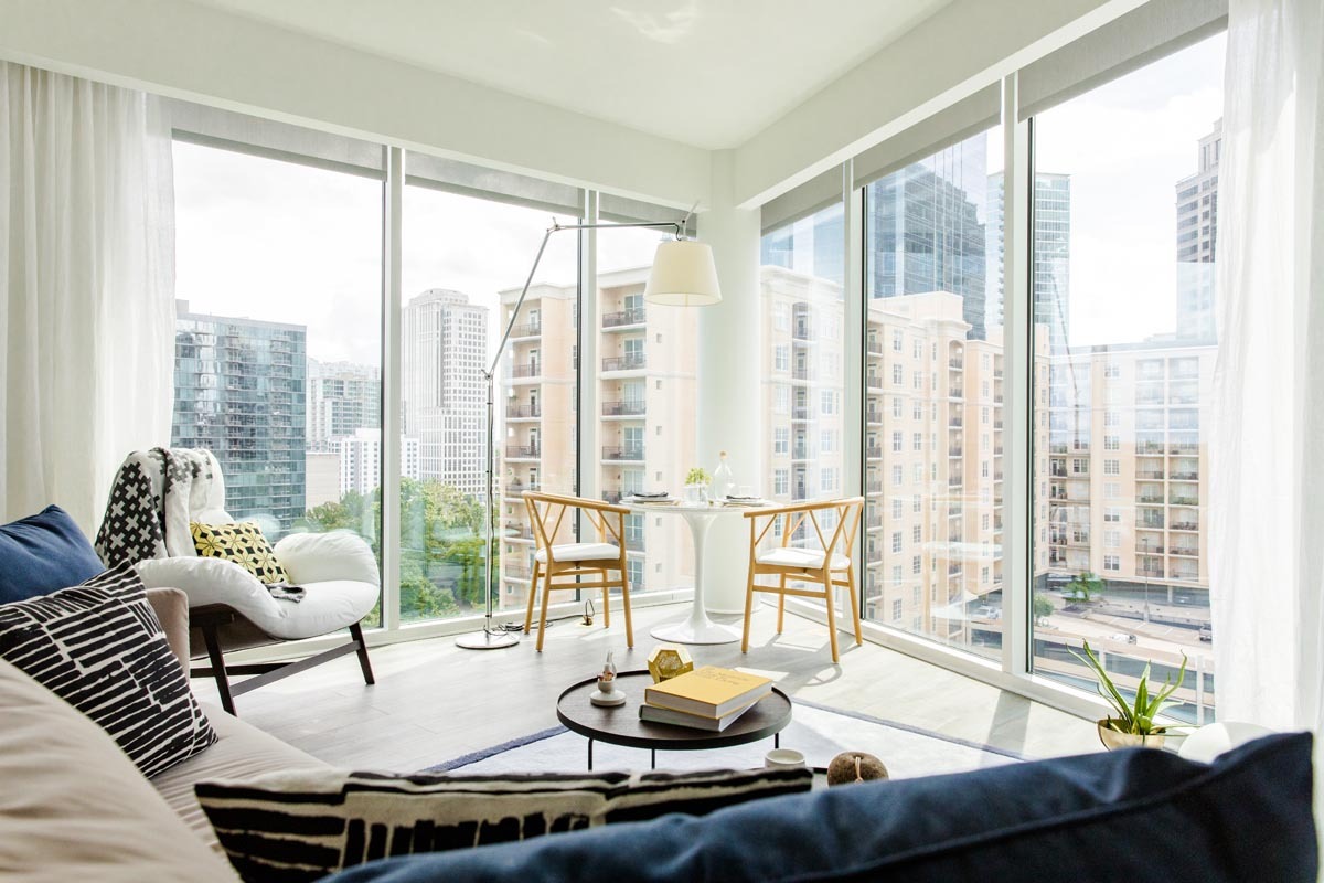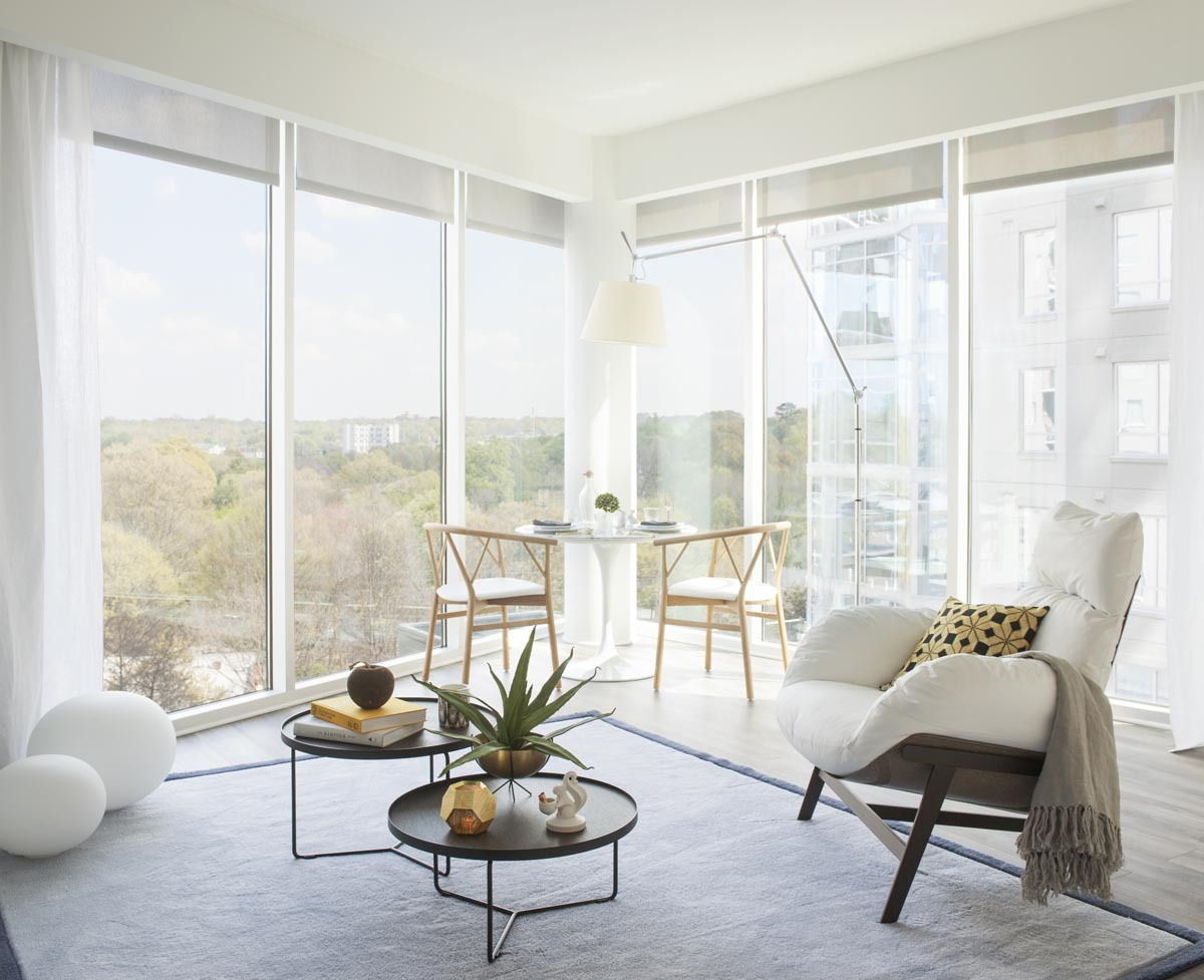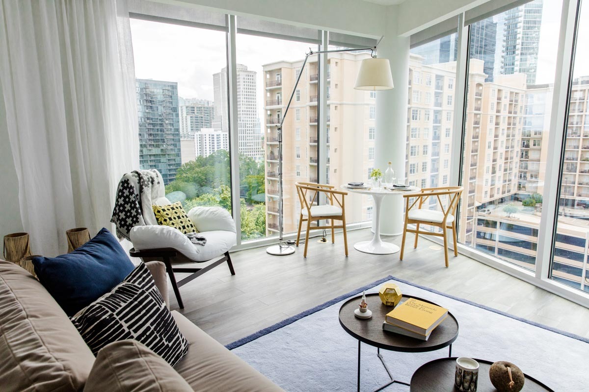 Beaming with designer finishes, our pet-friendly apartments come in studio, one, two, and three bedroom layouts. Come home to striking interiors in your choice of two unique design schemes with custom Italian lacquer cabinetry, Spanish quartz countertops, and stainless steel appliances. Floor-to-ceiling windows overlook stunning views of Piedmont Park, Downtown, and Buckhead while in-home technologies, such as Nest Learning Thermostats, maintain a comfortable atmosphere year-round.