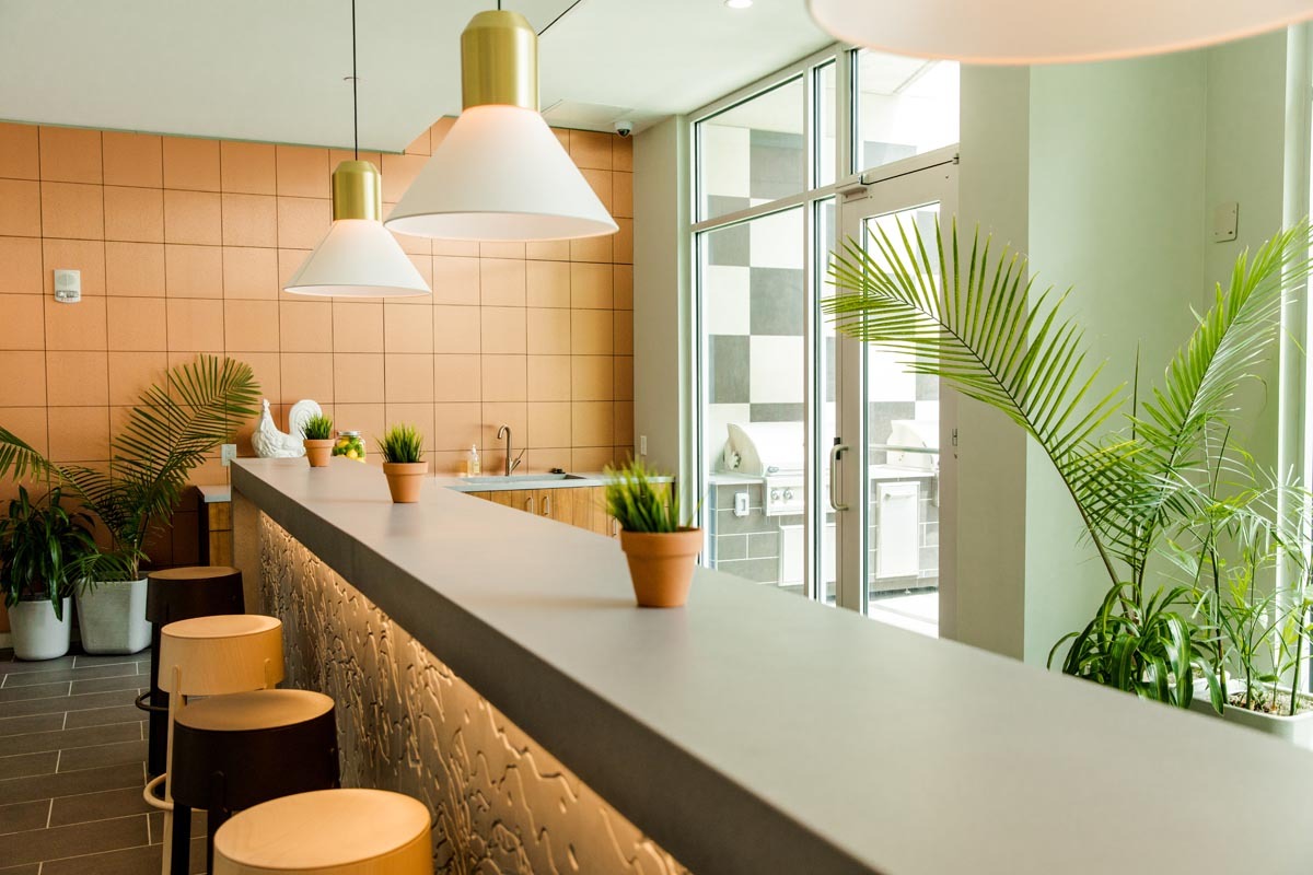During your free time, take advantage of the resort-inspired amenities just outside your front door. Soak up the sun while admiring the 180-degree views of the Midtown skyline from the heated saltwater pool. When you’re looking to burn some calories, head to the 24-hour fitness center, which features an outdoor HIIT station, a yoga studio, and Lululemon equipment. Even your furry friends can enjoy some relaxation and entertainment with an on-site pet spa.