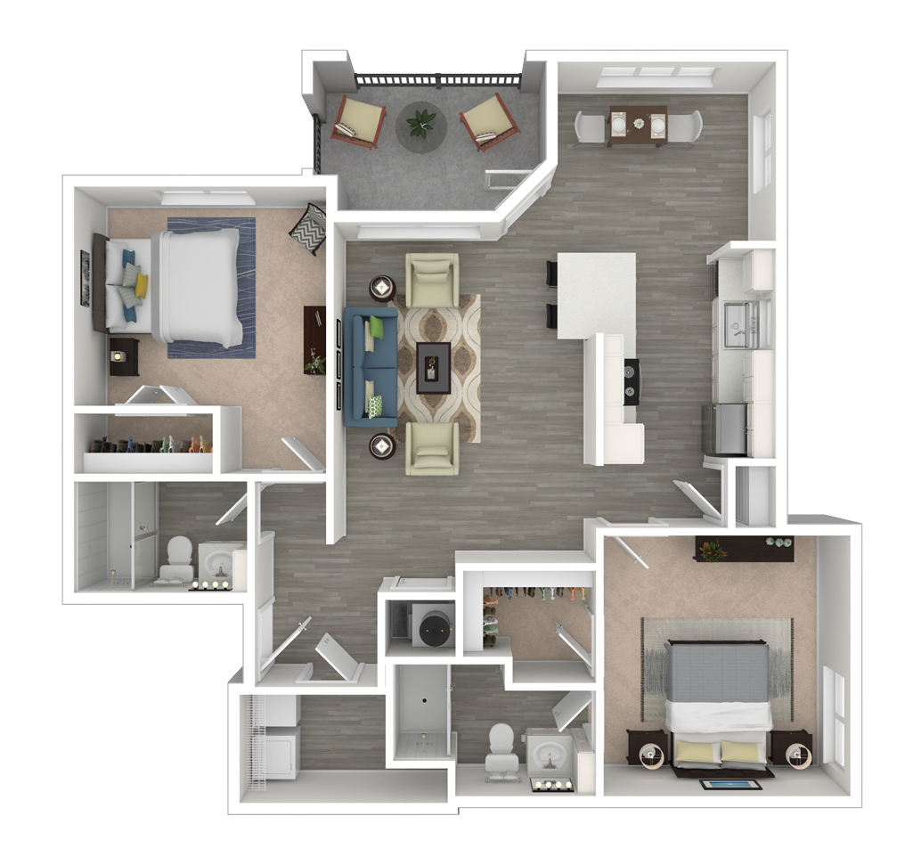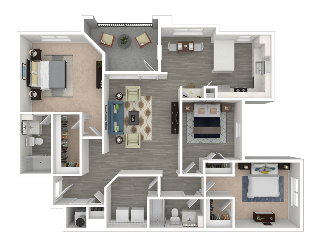 Our pet-friendly apartments were smartly designed to help streamline your day-to-day life with features to maximize your comfort level, including spacious closets. Our 1-, 2-, and 3-bedroom floor plans come in a variety of configurations and offer a comfortable space to prepare for your day, relax after work, and entertain friends.
