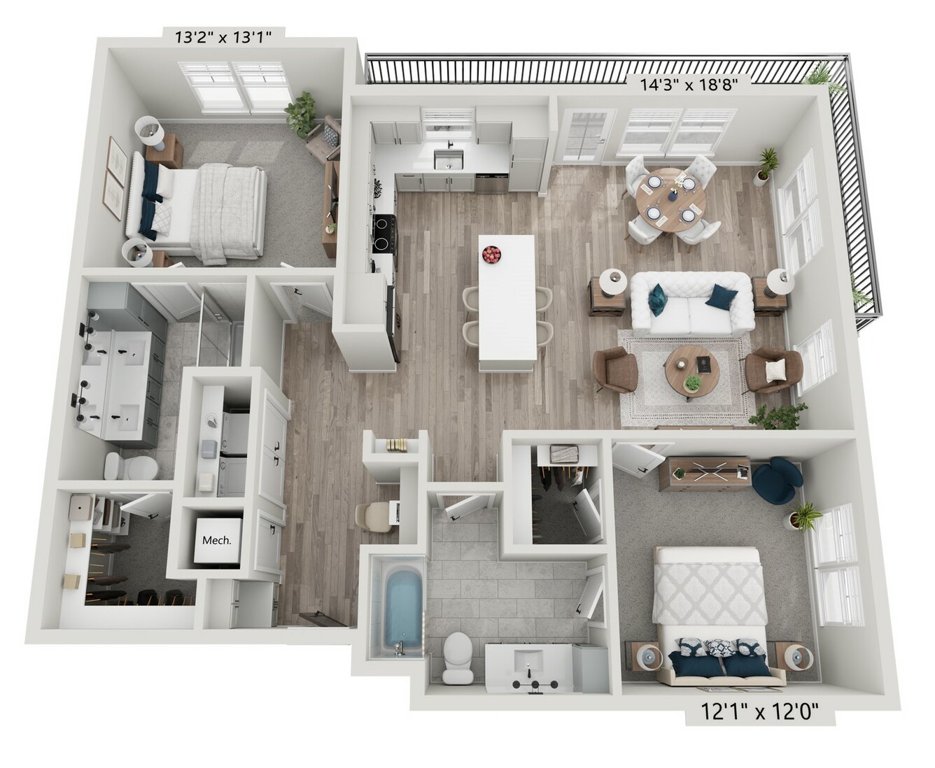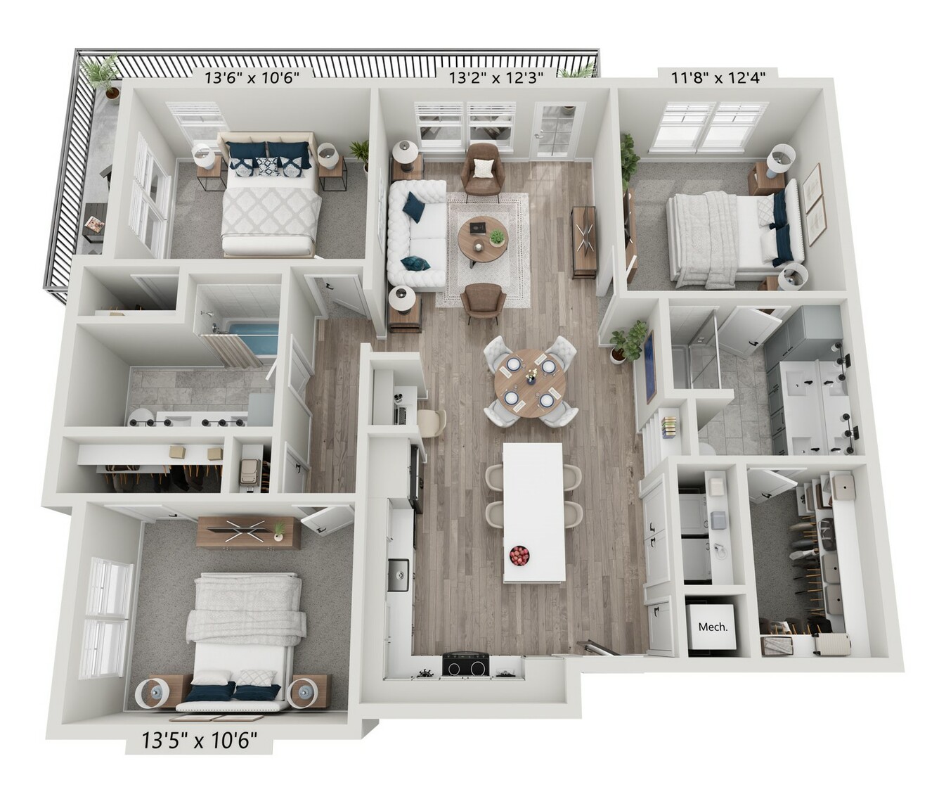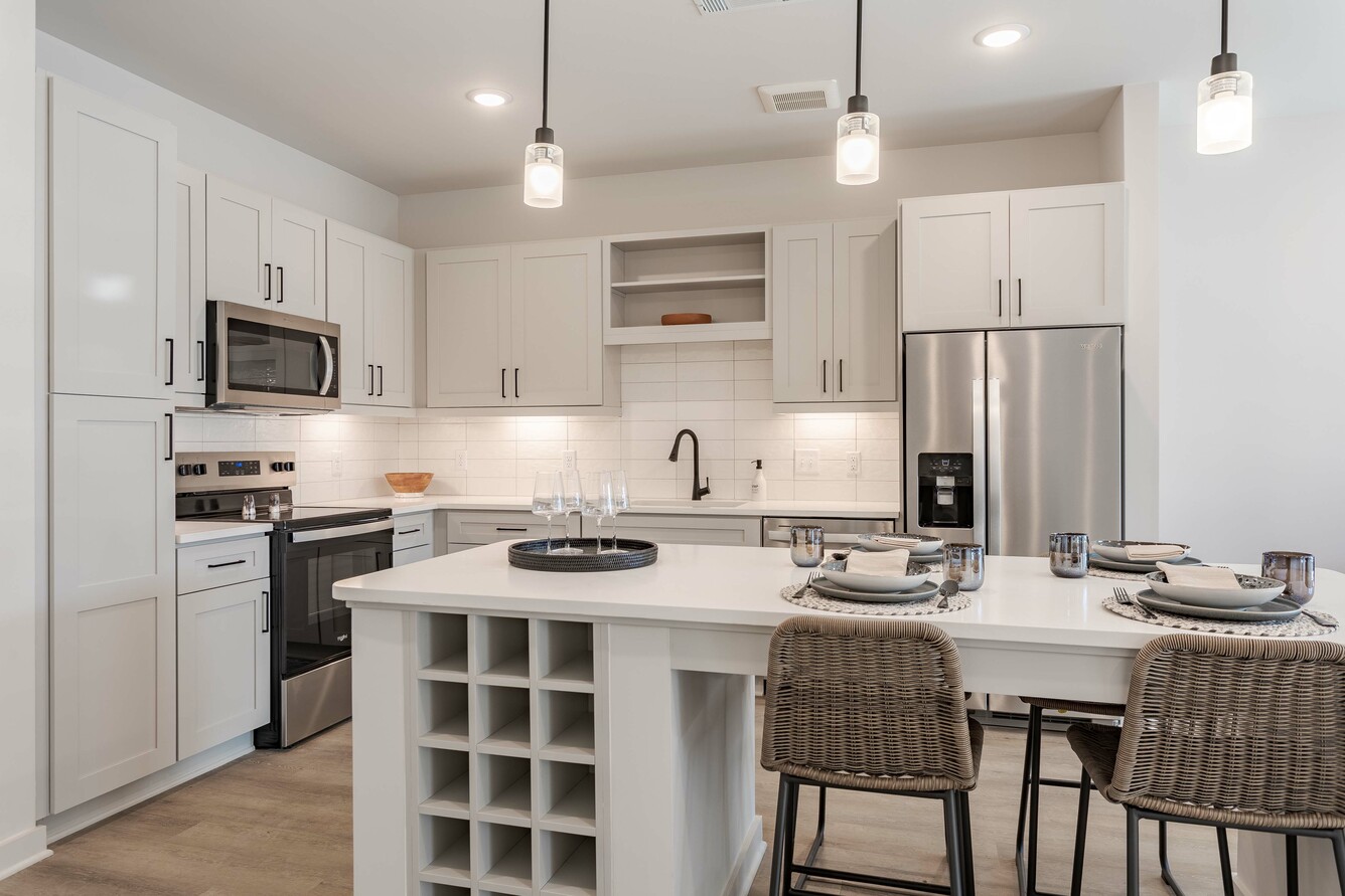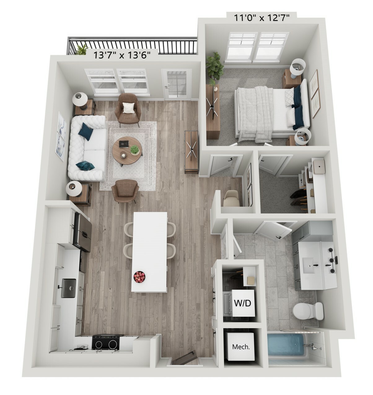 From quartz countertops to oversized closets and private balconies, every detail of our one-, two-, and three-bedroom apartments is crafted to elevate your living experience. Stunning views from private balconies. Chef-inspired dishes elegantly presented on sleek quartz countertops. Favorite pieces in oversized closets. Our spaces perfectly balance modern amenities and ultimate comfort to ensure a sense of warmth and connection reflective of our charming location.