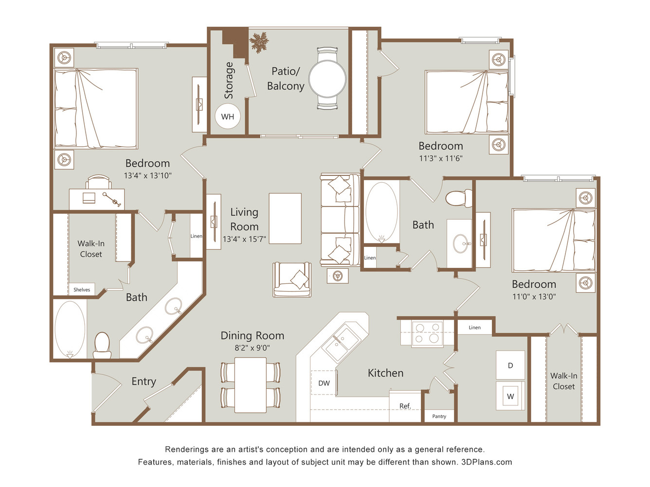 1, 2, 3 bedroom(s)