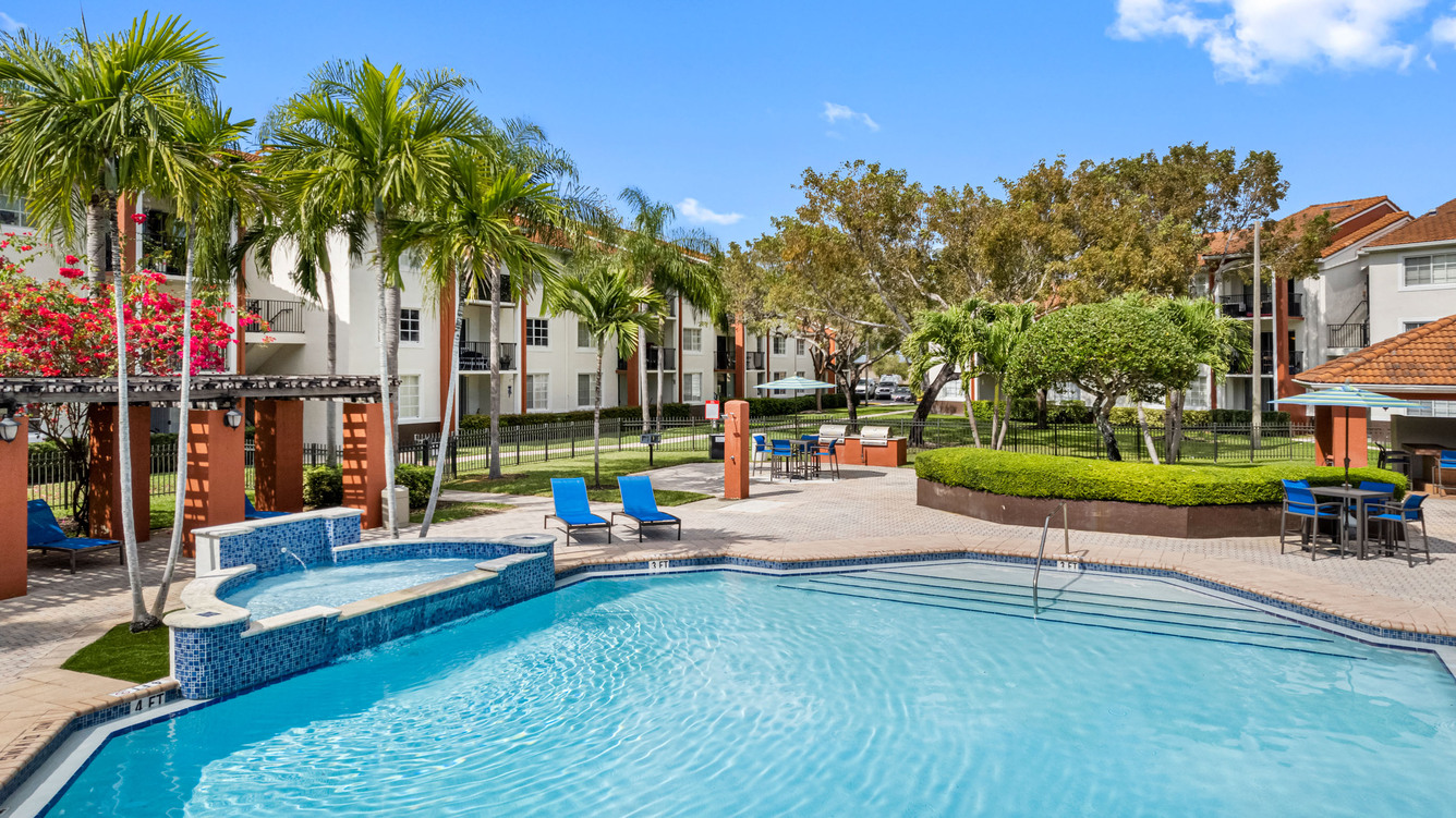 Prepare to be amazed by our resort-style features, including an inviting pool, a completely renovated fitness center, a business center, a tennis court, and more. You'll find the convenience of being just minutes away from the Turnpike and Palmetto Expressway, along with a plethora of restaurants and fabulous shopping options in every direction. Despite being conveniently located, our community offers a peaceful and secluded environment, providing you with the best of both worlds.