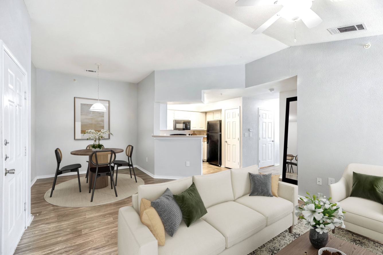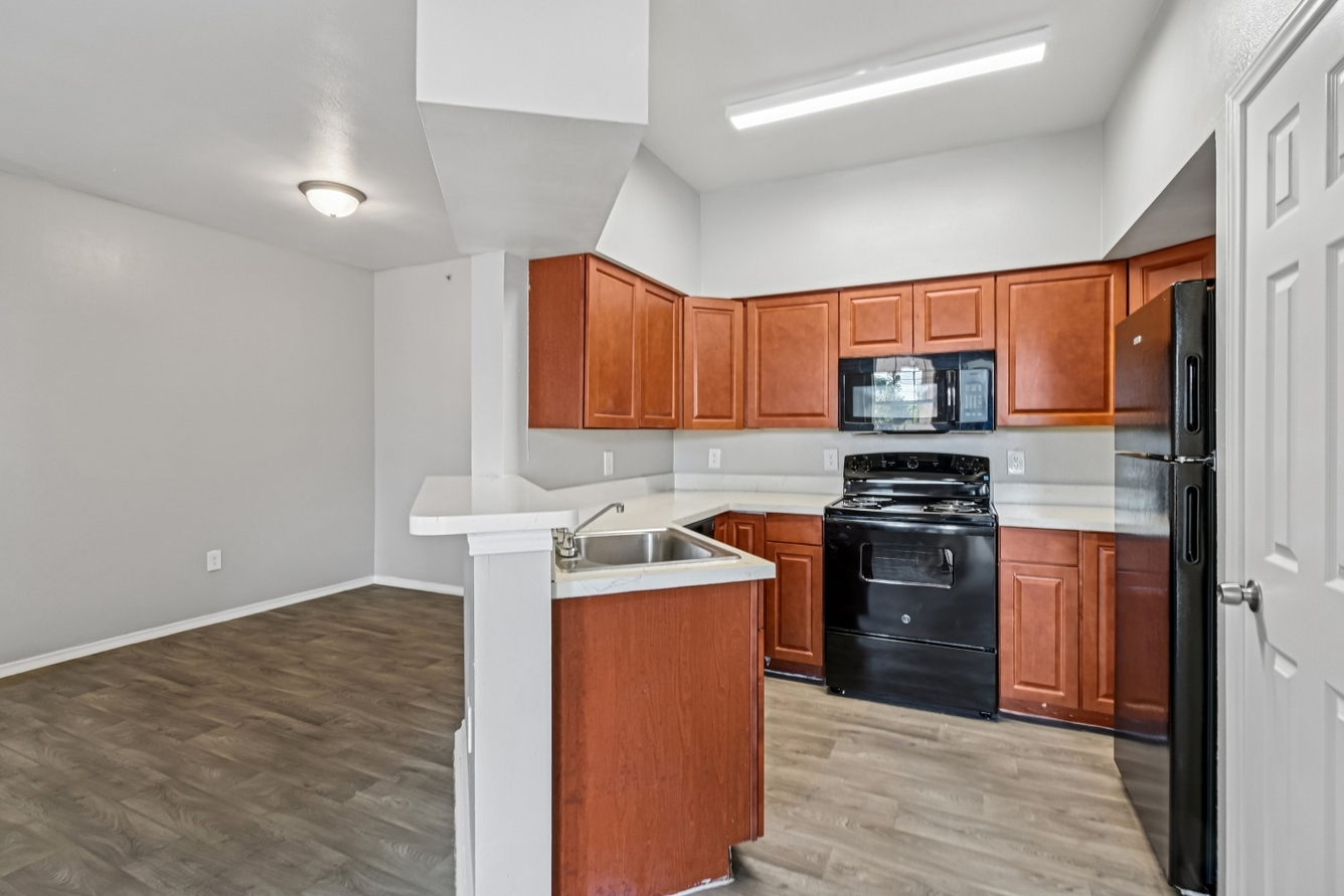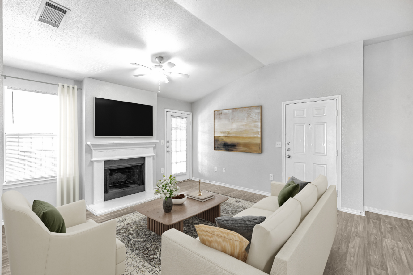 Step inside your spacious floor plan to find beautiful faux wood flooring, tall ceilings with fans, and a charming fireplace. The kitchen is fully equipped and each home comes with full-size washer and dryer connections for your convenience. Throughout the pet-friendly community, resort-inspired amenities aim to make daily living easier. Stay cool in the summer with access to a pool and sundeck, take advantage of the business center and Wi-Fi lounge when you’re working from home, or get to know your neighbors at the clubhouse. On-site, you’ll also find two playgrounds and a java bar.