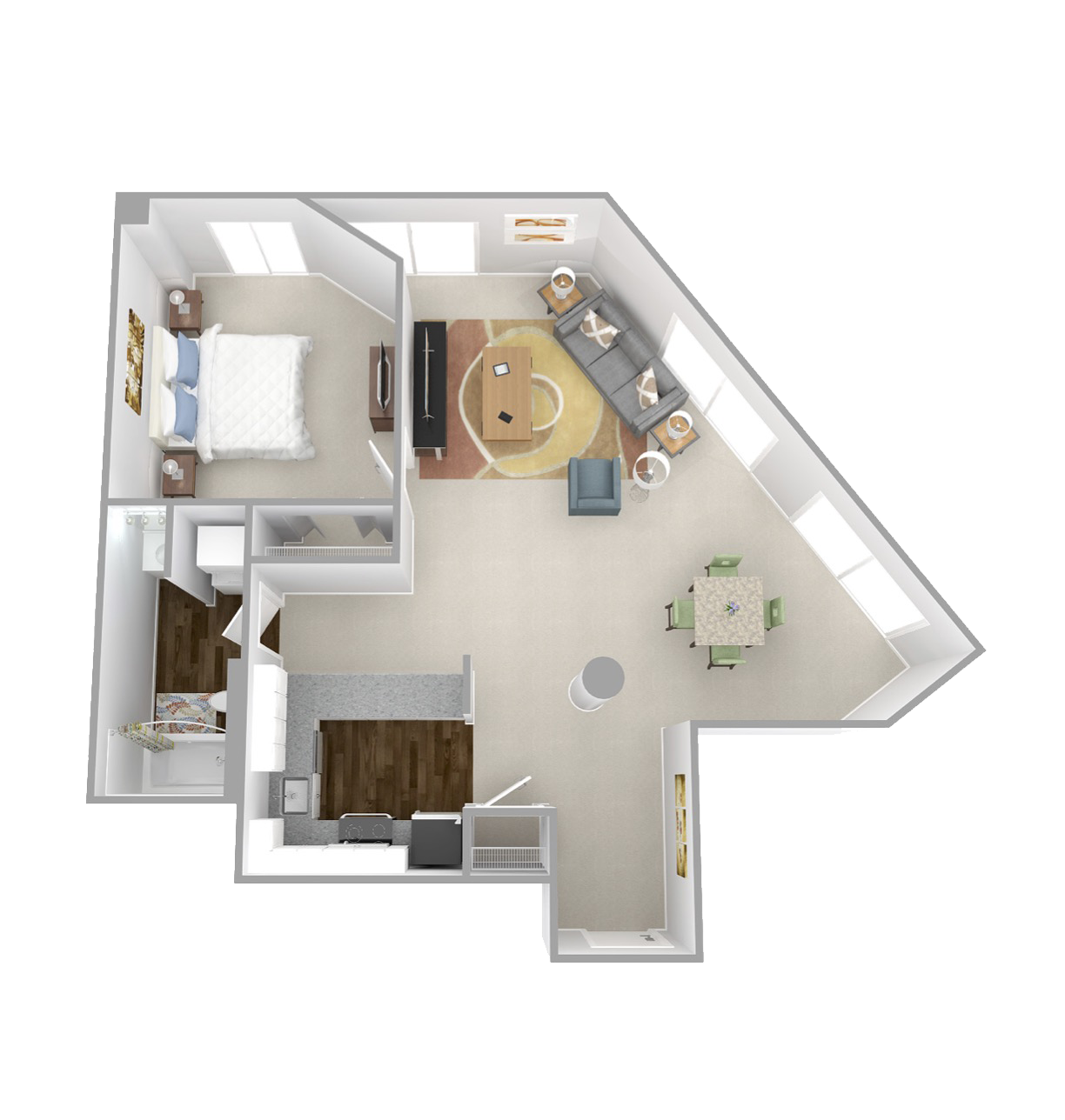 Outside your apartment, you’ll find an impressive selection of on-site amenities, several of which have been newly built or beautifully remodeled. Open 24 hours a day, the state-of-the-art fitness studio allows you to get some exercise at any time. After your workout, you can catch your breath on a scenic patio with stunning riverside views. Featuring pool tables and smart TVs, the inviting resident lounge provides endless opportunities for entertainment.