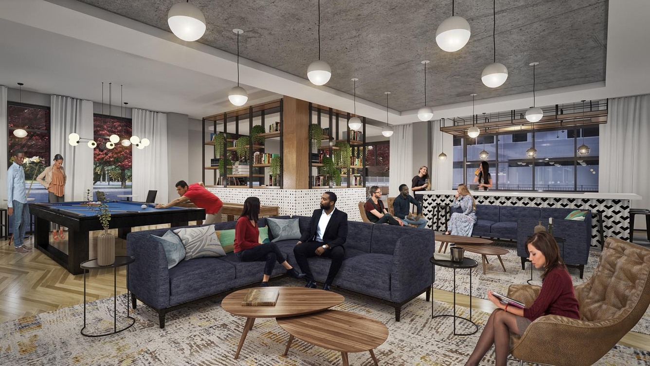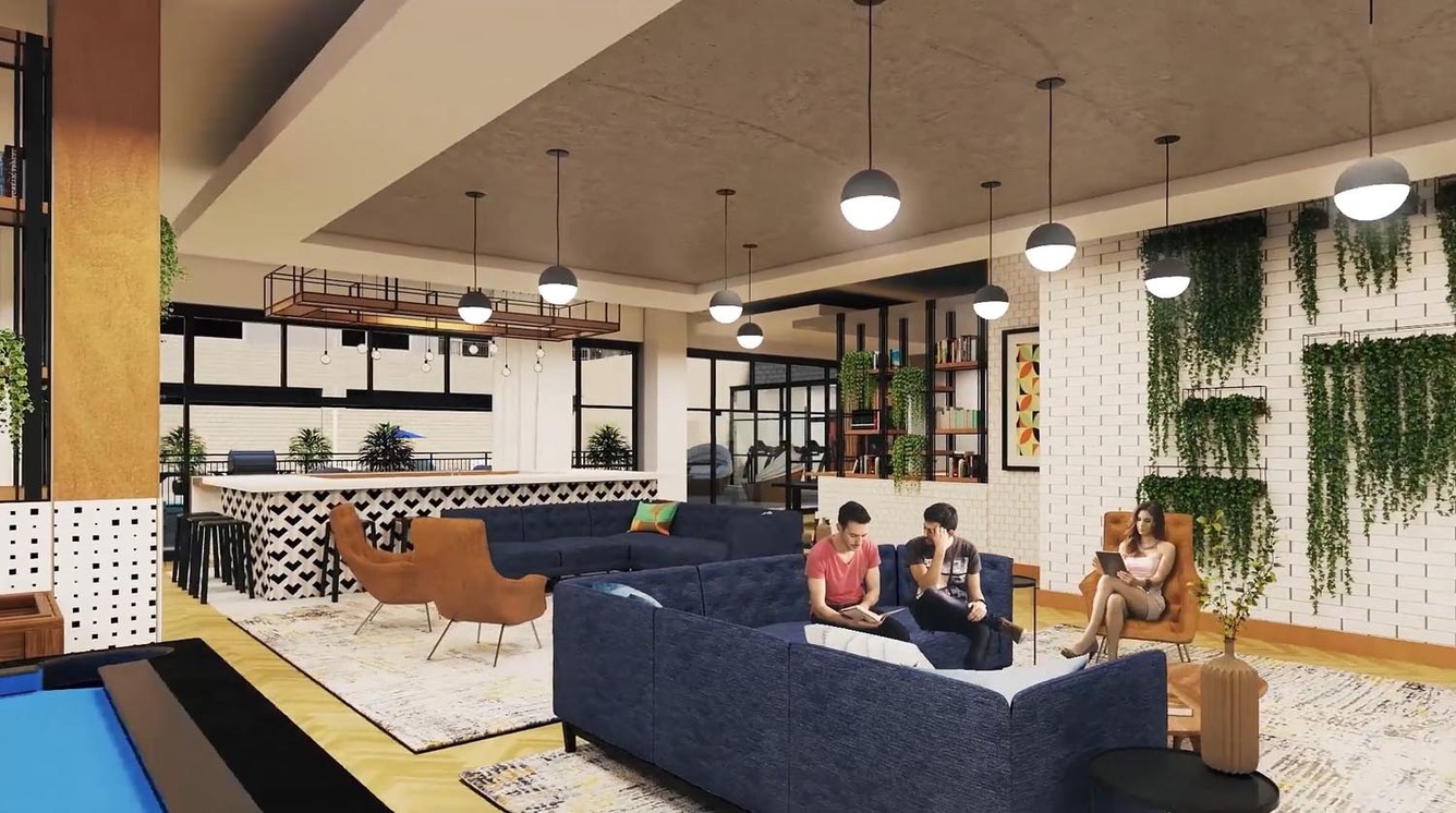 • Expansive common areas that include media room, courtyards and firepits, games, and coffee bar.
