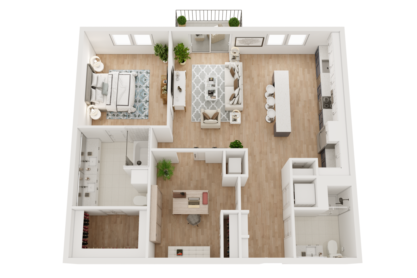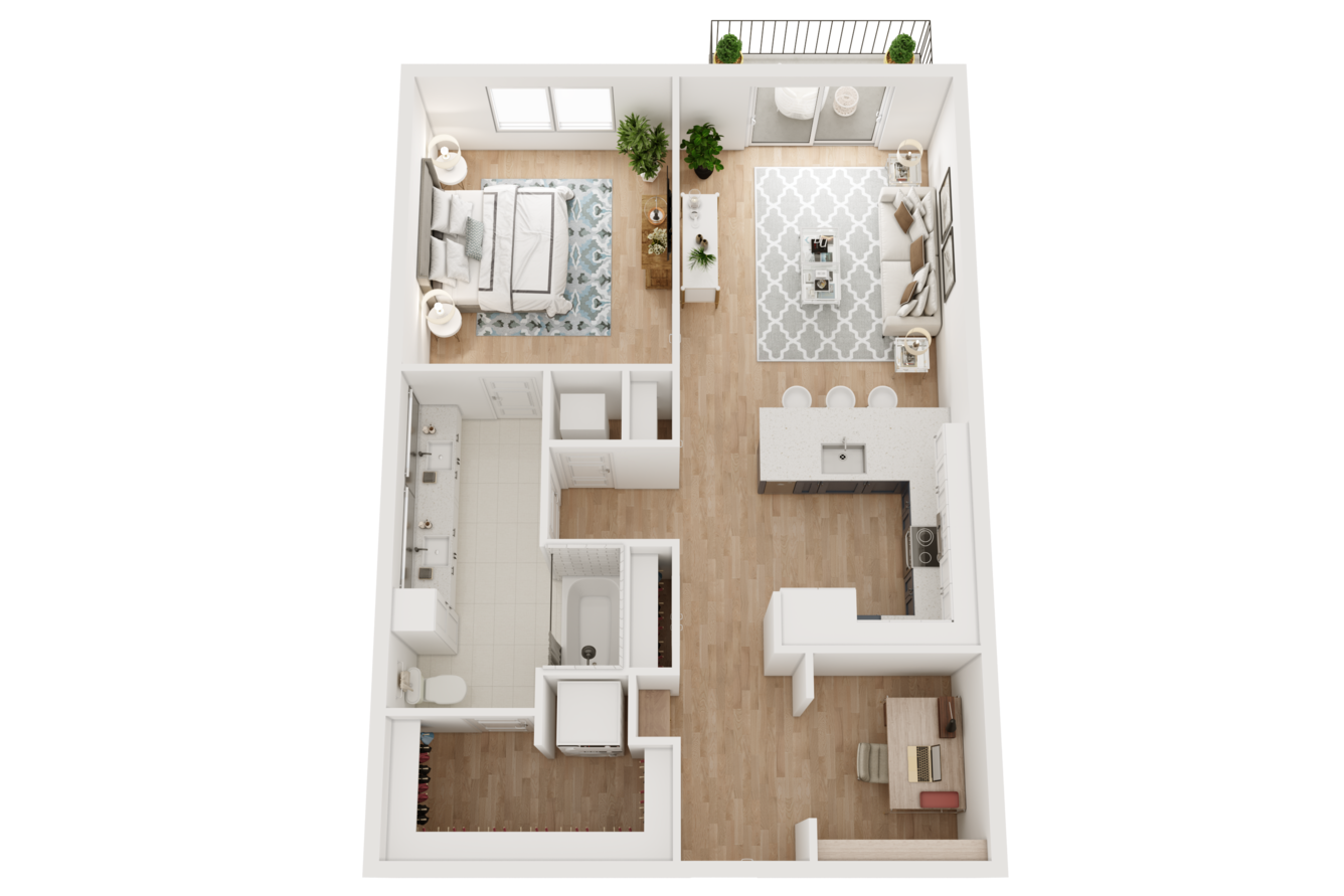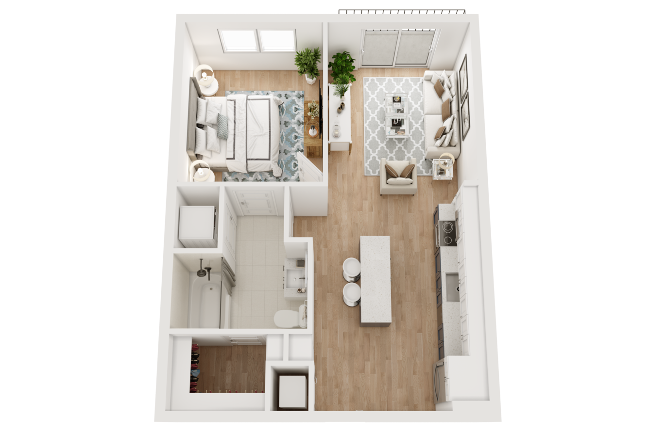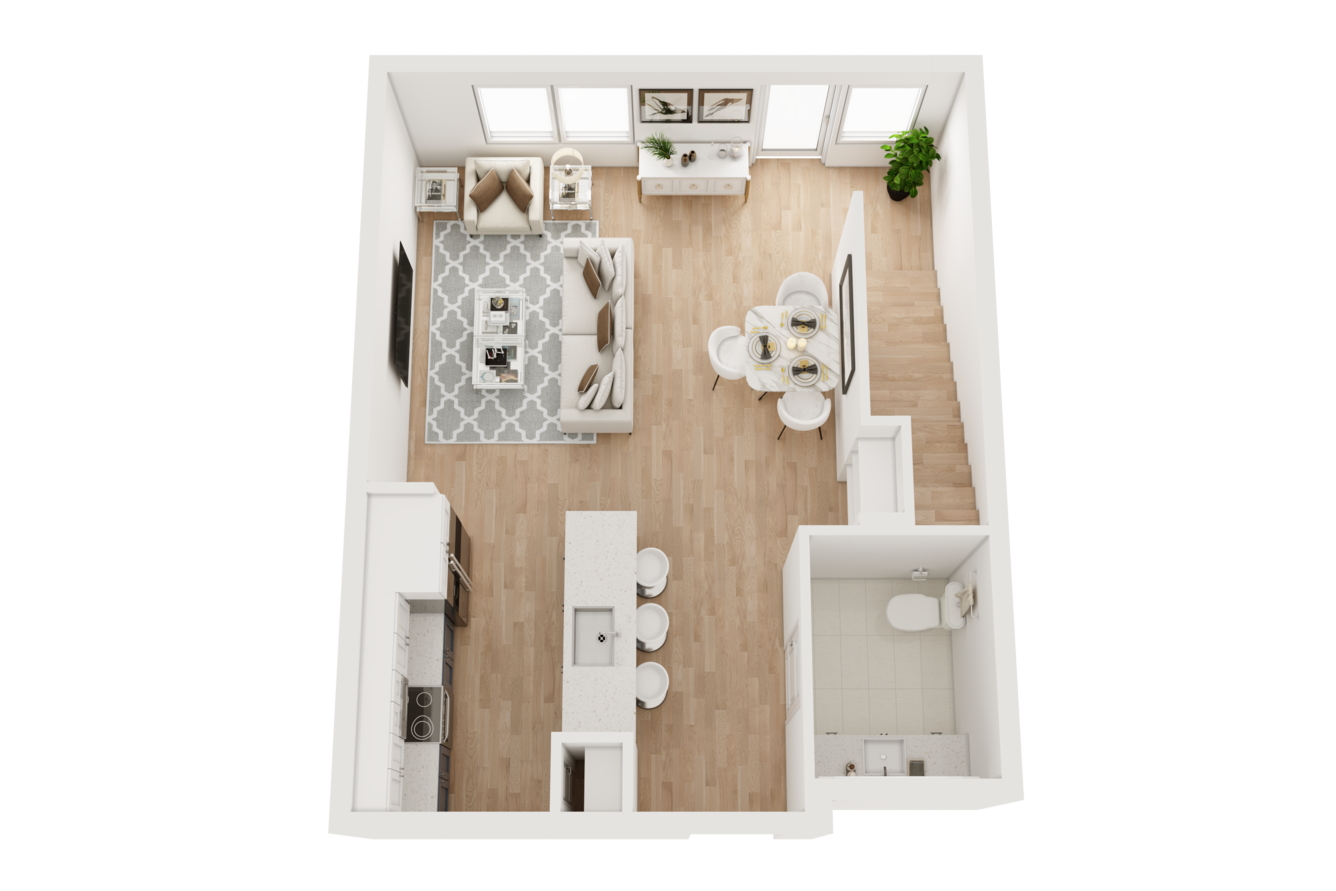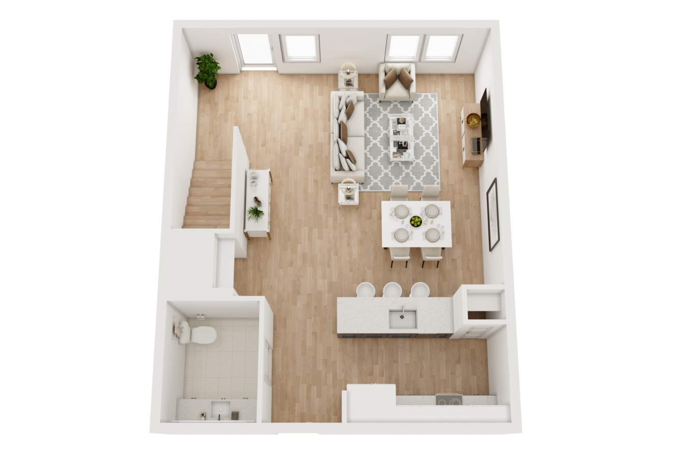As soon as you step inside, features like lofty ceilings and sleek wood-style flooring invite you to feel at home. A modern kitchen with stainless-steel appliances and custom two-toned cabinets makes it easy to master your culinary skills, while generously sized walk-in closets with built-in shelving take organization to the next level. If you work remotely, our two-story live/work loft layouts allow you to achieve ultimate productivity at home.