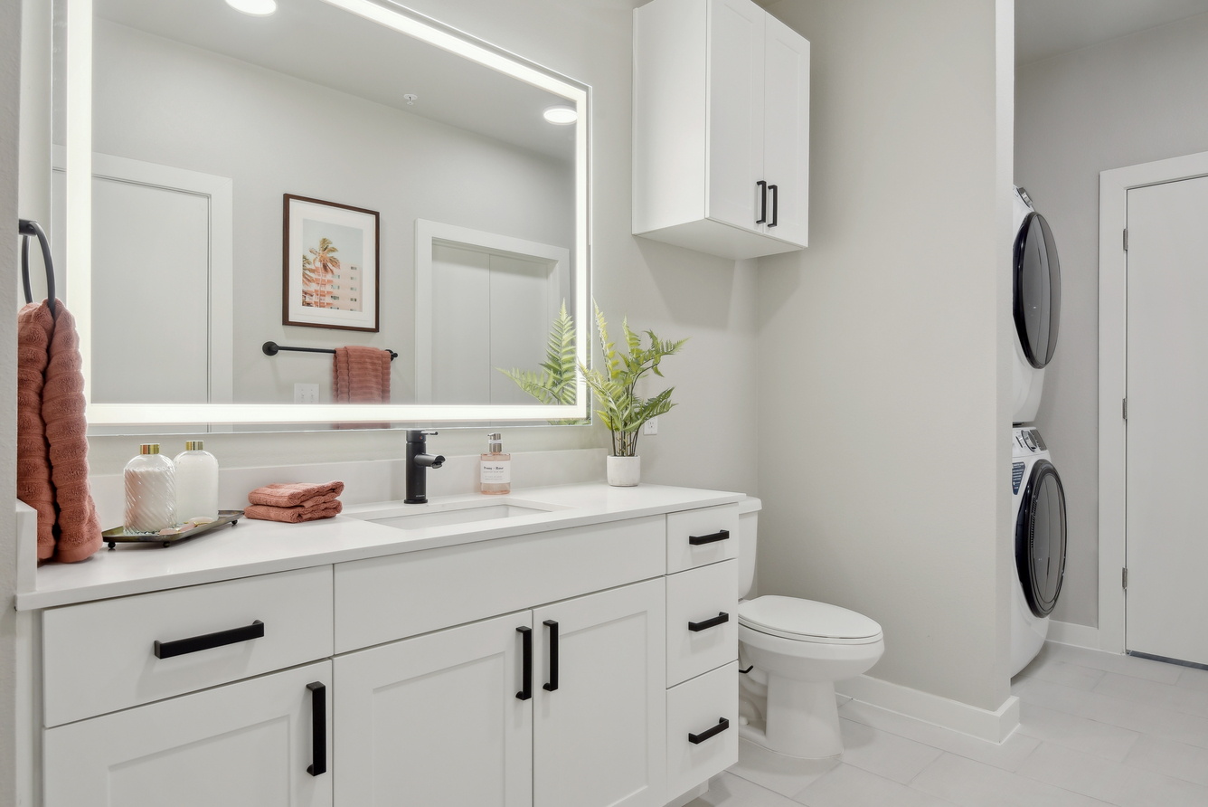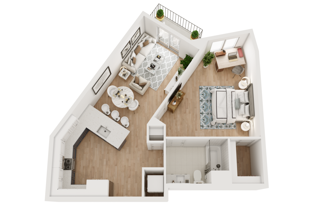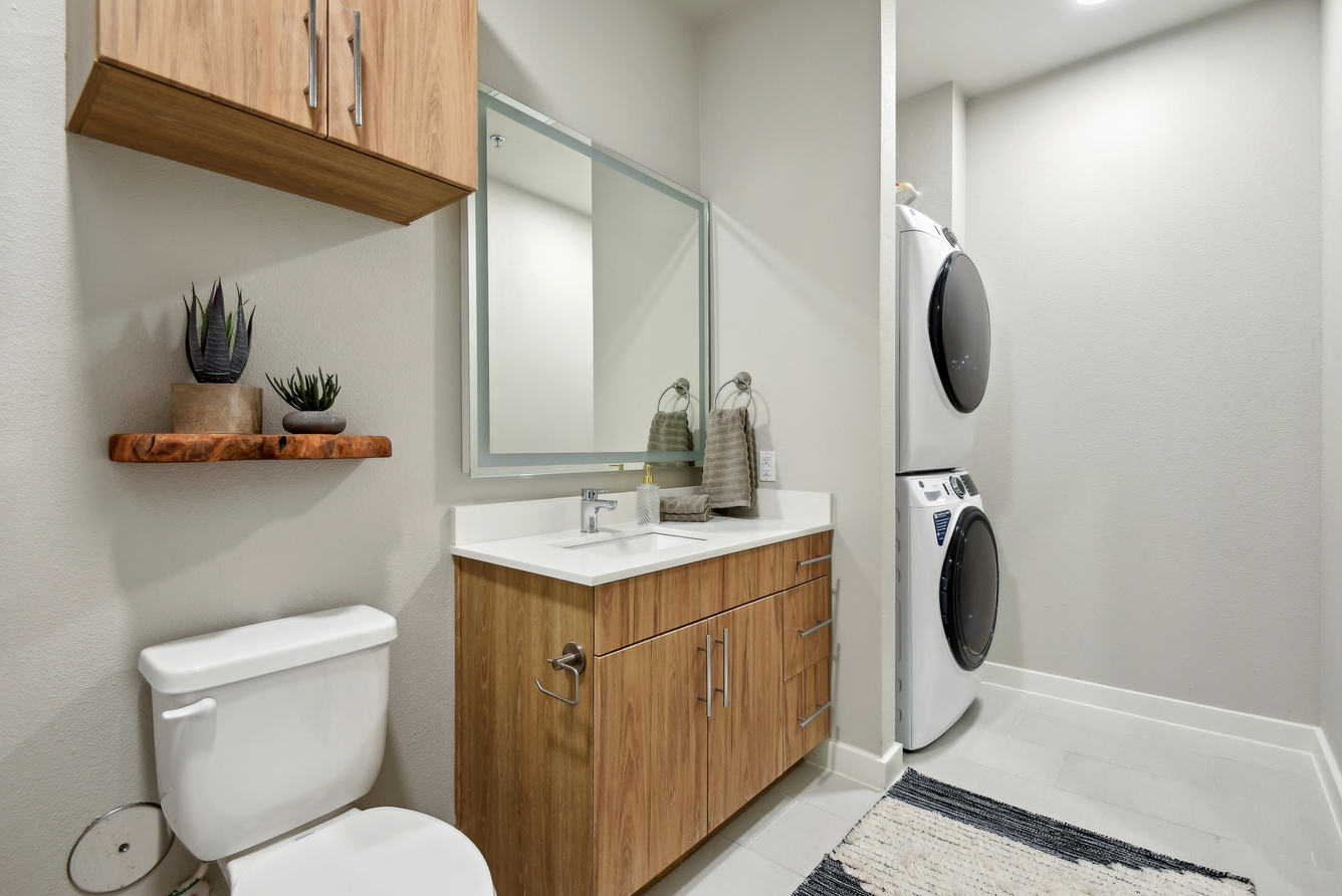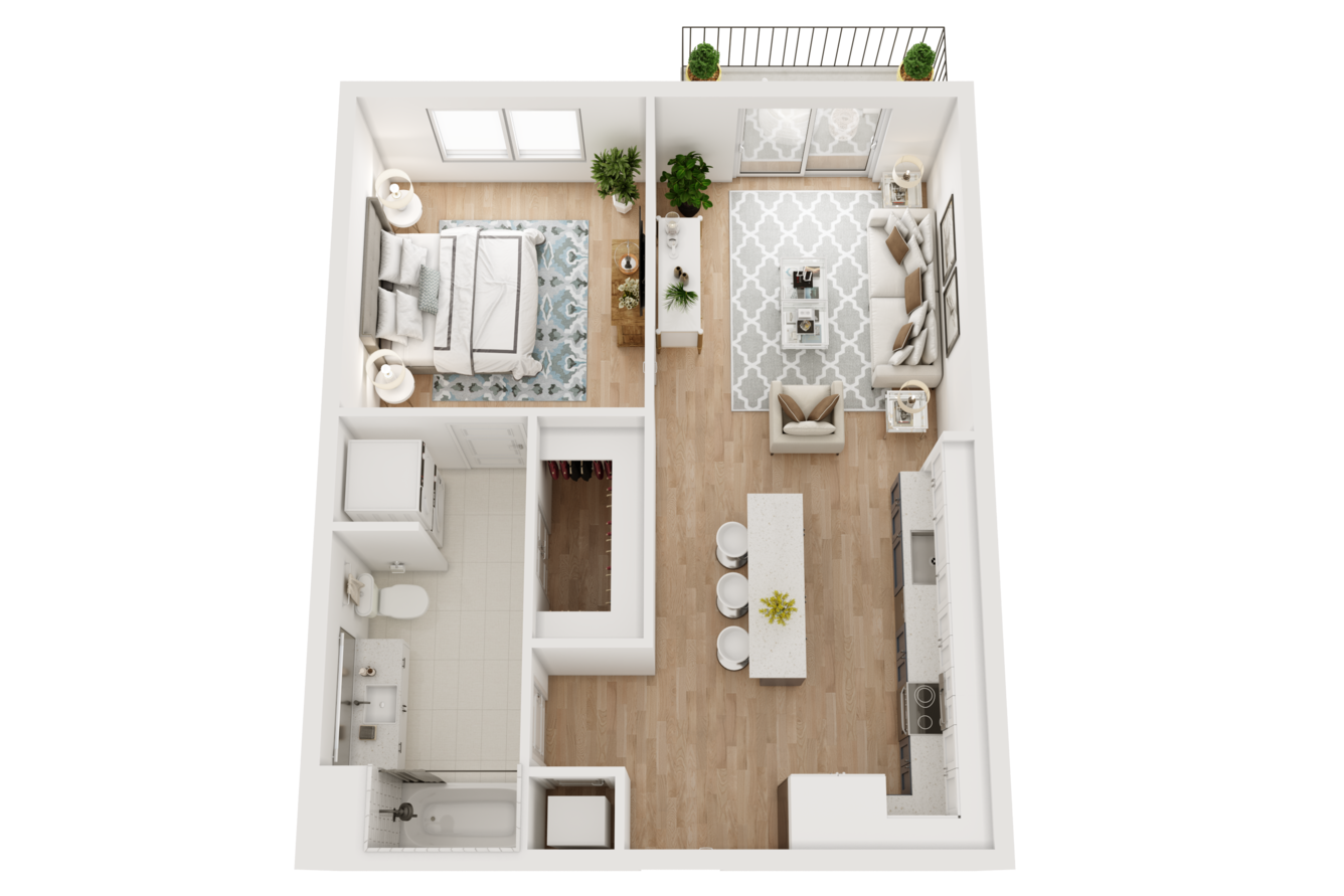 As soon as you step inside, features like lofty ceilings and sleek wood-style flooring invite you to feel at home. A modern kitchen with stainless-steel appliances and custom two-toned cabinets makes it easy to master your culinary skills, while generously sized walk-in closets with built-in shelving take organization to the next level. If you work remotely, our two-story live/work loft layouts allow you to achieve ultimate productivity at home.