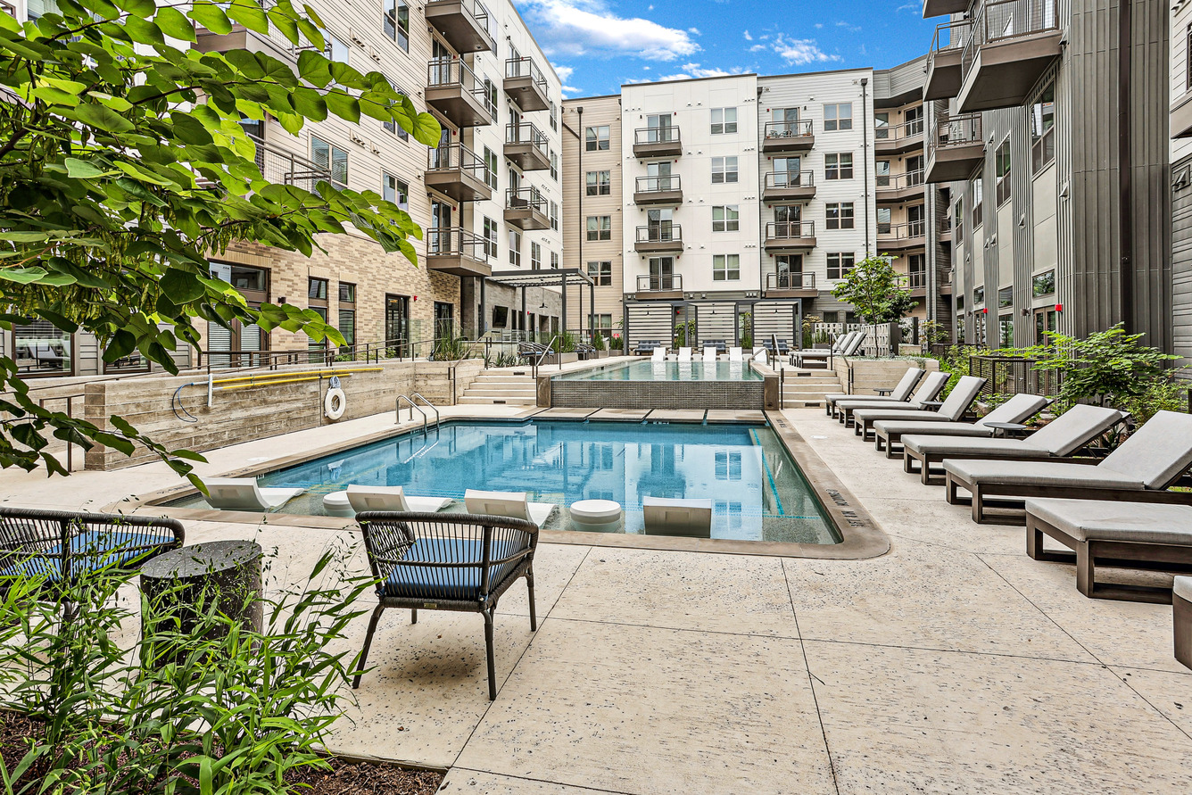 Just steps from your apartment, you’ll discover a vibrant community that makes every day feel like a vacation. During the summer months, there’s no better place to beat the heat than at our hospitality-inspired pool with sun decks and cabanas. With perks like a 24-hour fitness center, a yoga and barre facility, and a half-acre park, we also offer plenty of ways to stay active. Our fenced-in pet park and premium pet spa are sure to keep your furry friends happy as well.
