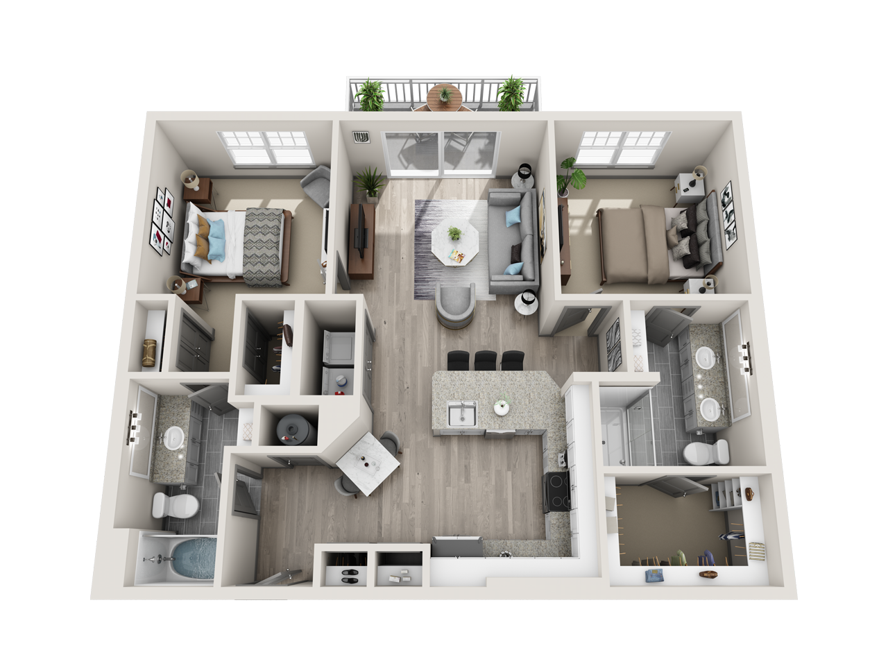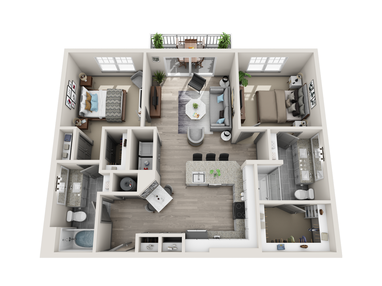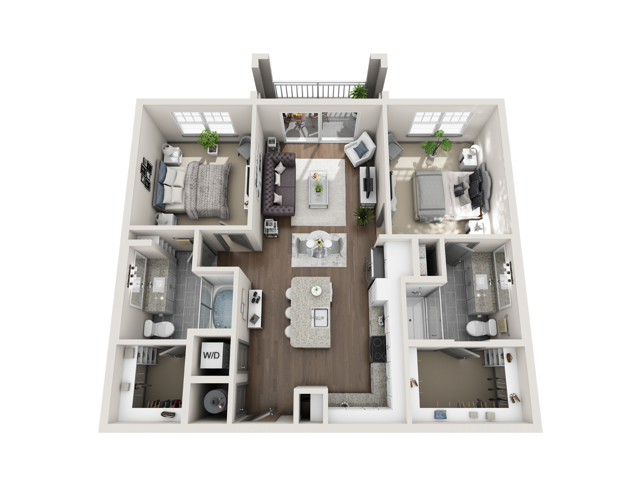 Inside, your thoughtfully designed apartment beams with natural light and boasts high-end finishes, including luxury vinyl tile flooring. In-home washer and dryer sets make doing laundry a breeze while expansive walk-in closets take the hassle out of staying organized. Your chef-inspired kitchen is a culinary paradise outfitted with shaker-style cabinets, granite countertops, stainless steel Whirlpool appliances, and a spacious pantry. Take advantage of the full-width vanity mirrors and stand-up showers featured in all homes or choose an upgraded floor plan with double vanity sinks and built-in shelving.