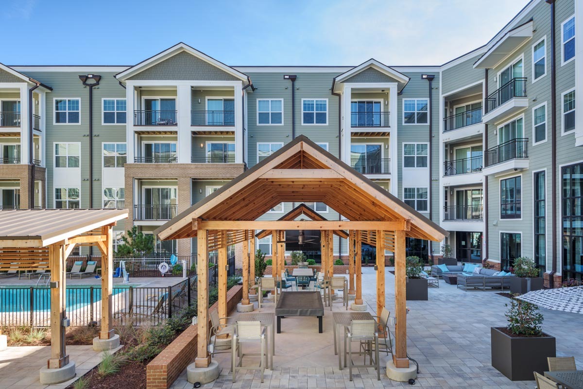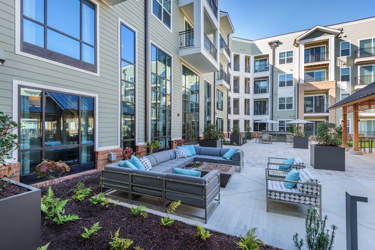 Outside your door, you can take care of business in the co-working-inspired clubroom or destress in the tranquility of the resident courtyard. Take your workouts to the next level with Fitness on Demand in the fitness center or treat your pup to a walk at the dog park. Spend weekends in the shimmering saltwater pool or plan get-togethers in the adjacent private courtyard, complete with firepits, porch swings, outdoor TVs, and a pool table.