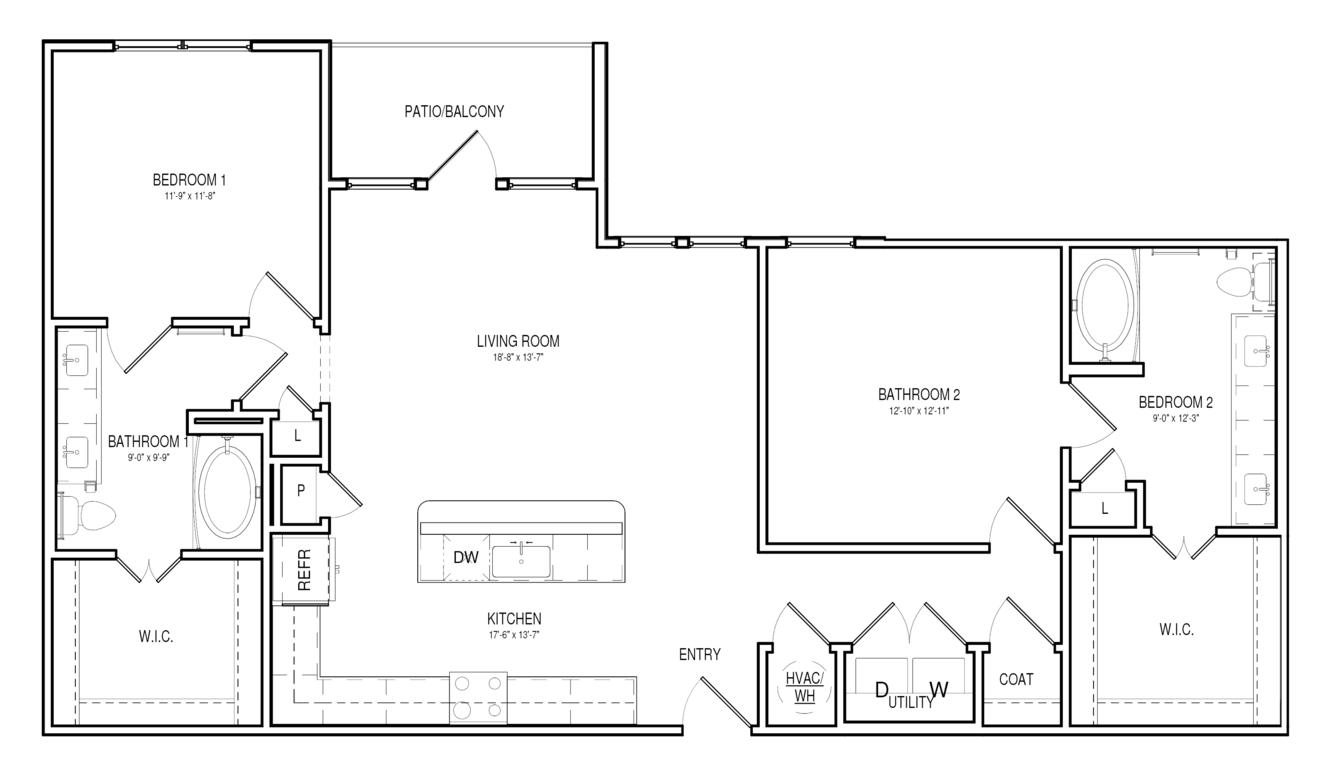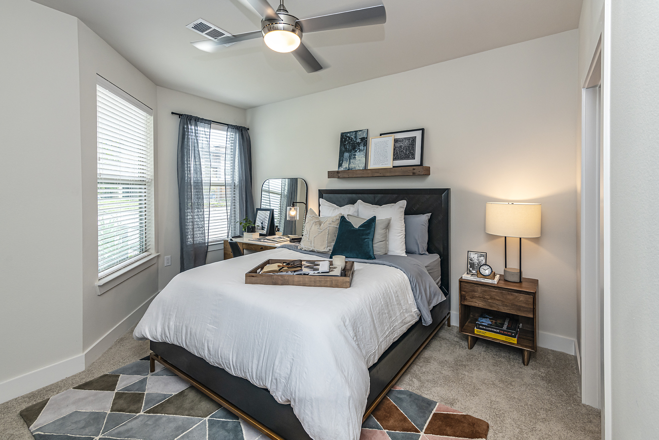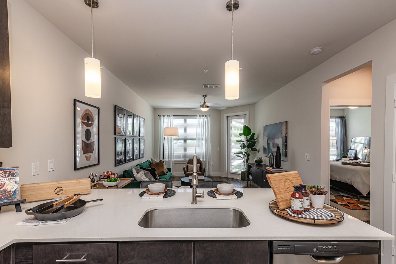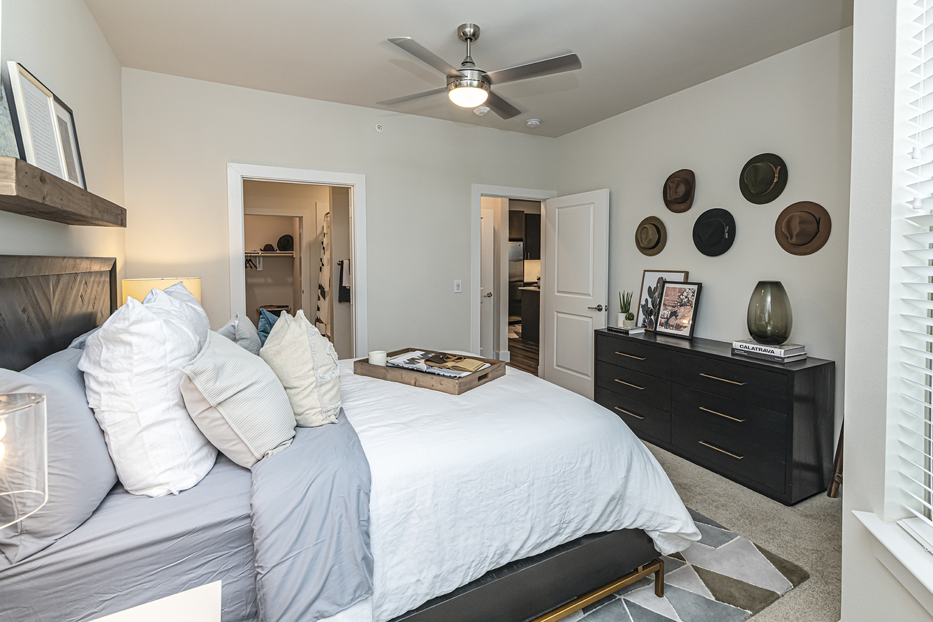 Come home to a one, two, or three-bedroom apartment with nine-foot ceilings, designer lighting, and wood-look flooring. Energy-efficient windows and a SMART thermostat keep your entire home comfortable. Emulate your favorite chef in a gourmet kitchen with an island and quartz countertops. You can cook in style using the ceramic glass cooktop range and Energy Star-certified stainless steel appliances. A spacious pantry, elegant cabinetry, and wine rack offer abundant storage. Beautiful ceramic tiles line your bathroom floor and surround your garden tub. Dual vanities and glass-enclosed showers are available in select homes. For added comfort, each apartment has a patio or balcony. You’ll enjoy the convenience of a custom walk-in closet and an in-home washer and dryer set.