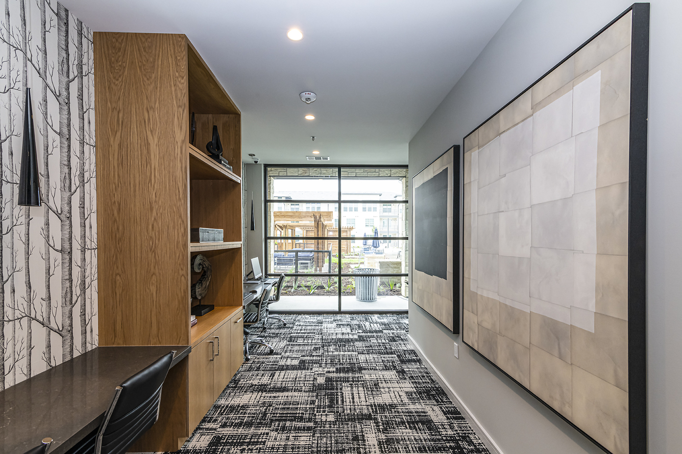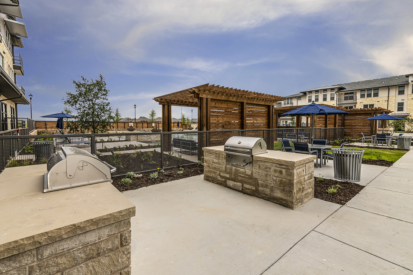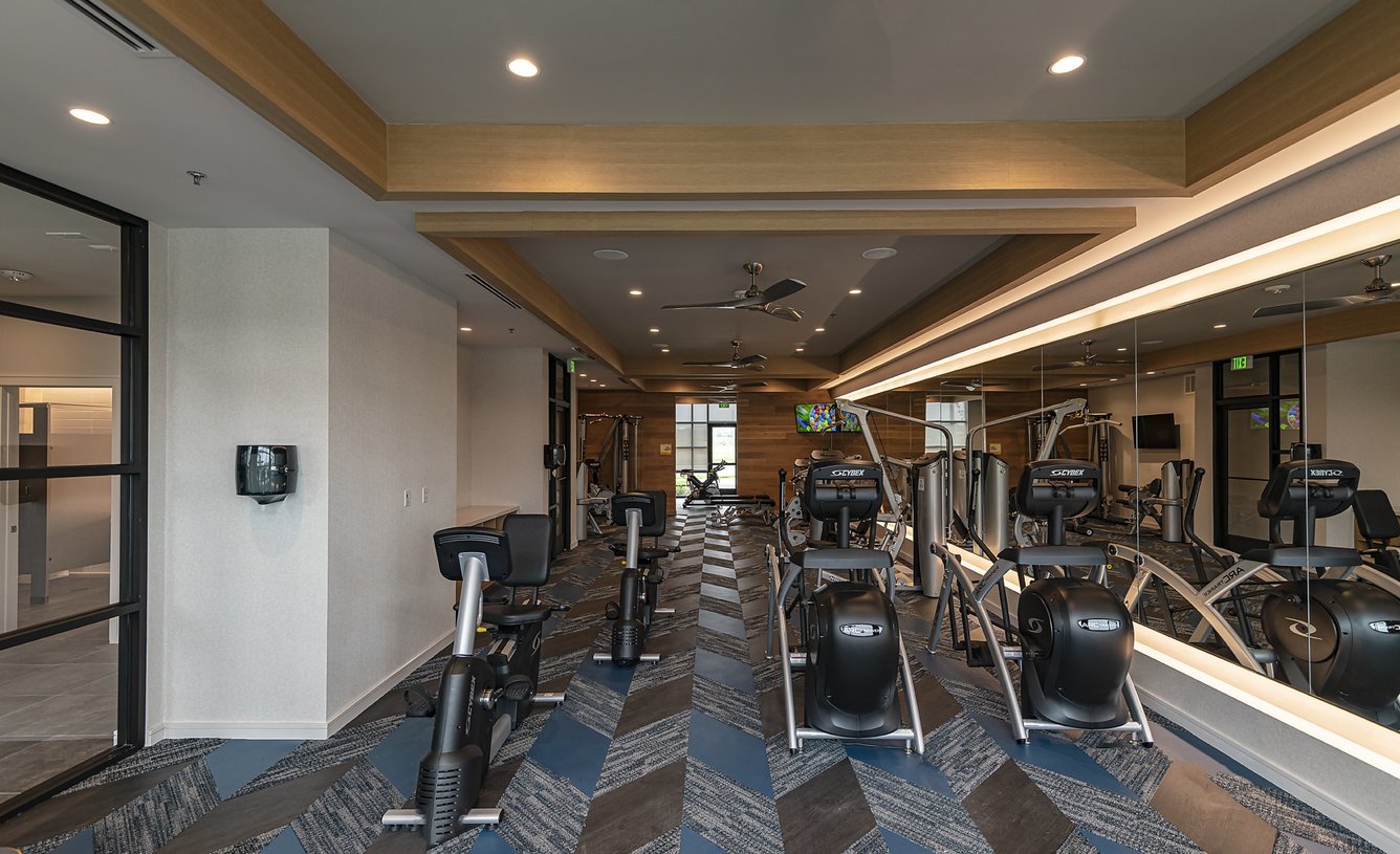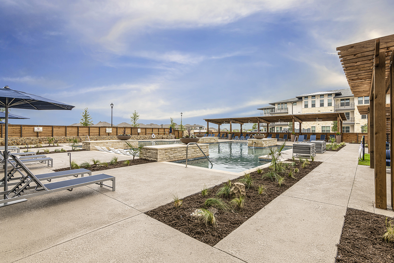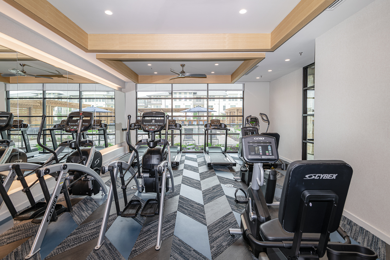 Past your doorstep, lush courtyards, and an outdoor activity area await you. You have a gorgeous pool with a sunning ledge, cabanas, and barbecue grills to enjoy. Stay active in our state-of-the-art fitness center. Spend as much time as you want with your pets in our dog park, dog wash, and grooming room. We even placed waste stations throughout the community for your convenience. To help make your everyday life simple and sustainable, we offer waste pick-up services, too. Thanks to round-the-clock access to our parcel locker and mail facility, you won’t have to worry about missed deliveries. Bike racks, EV charging stations, and one- and two-car breezeway-access garages are available.