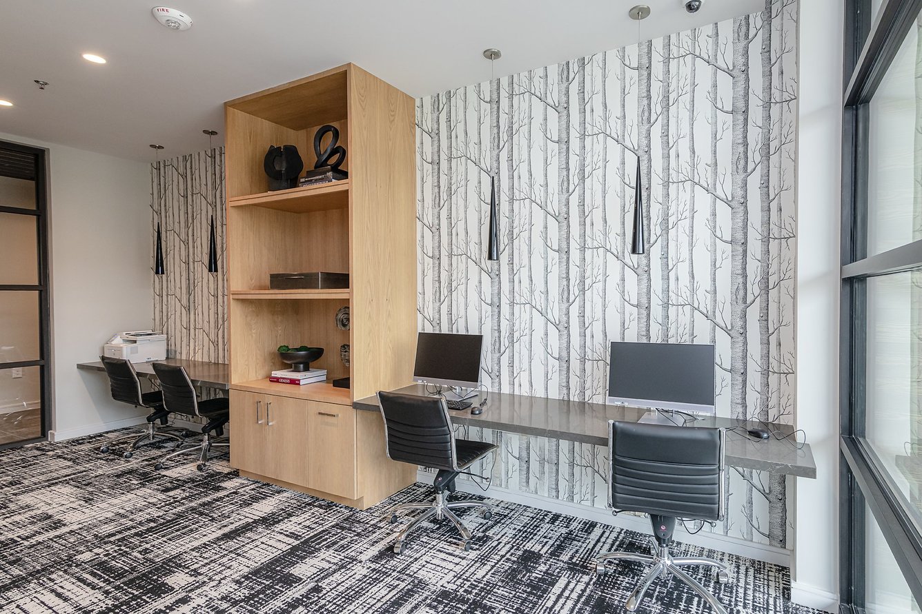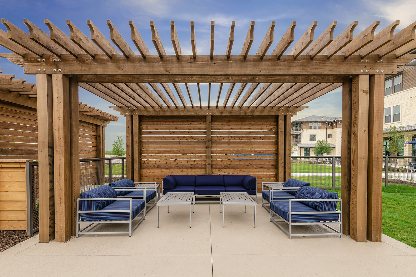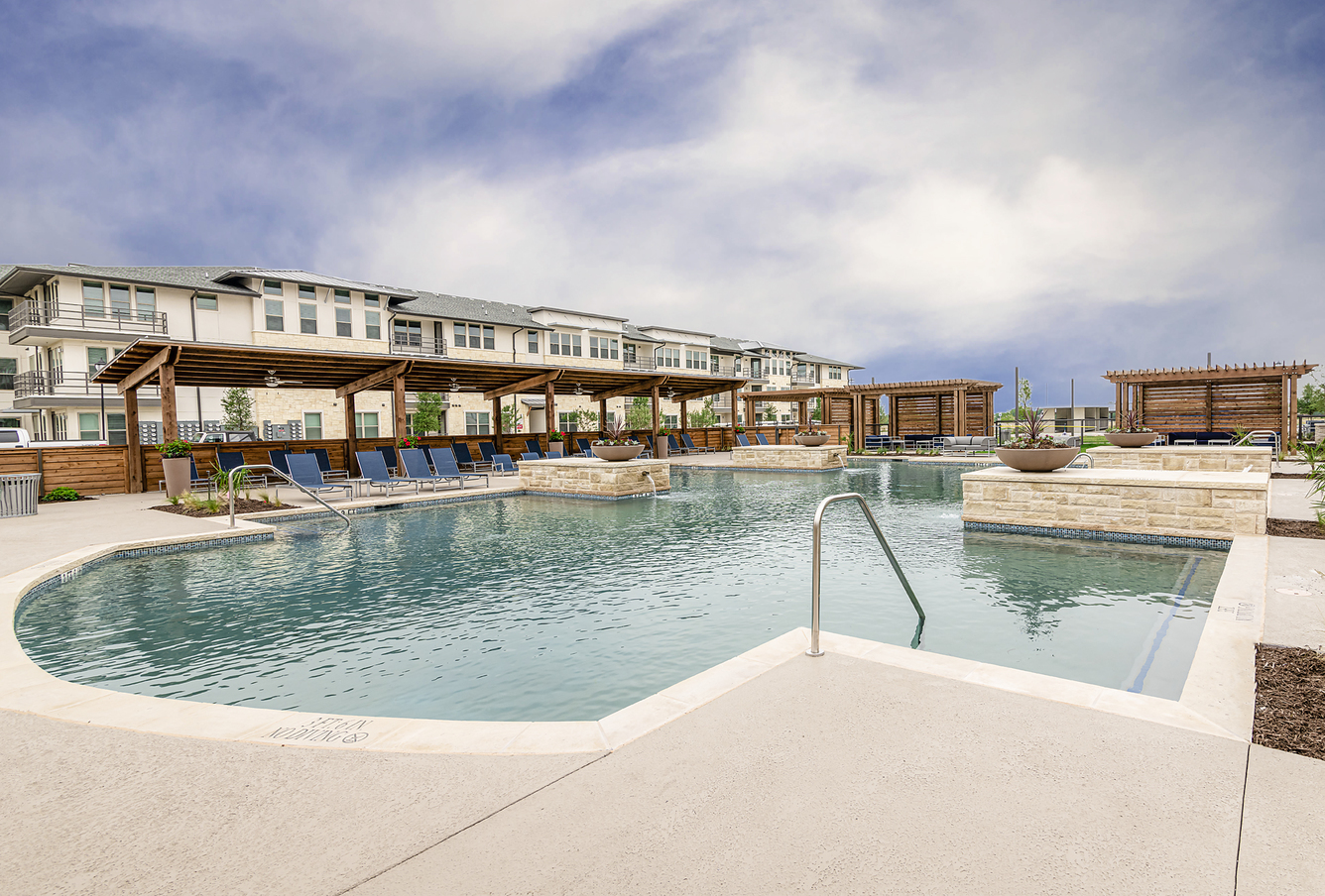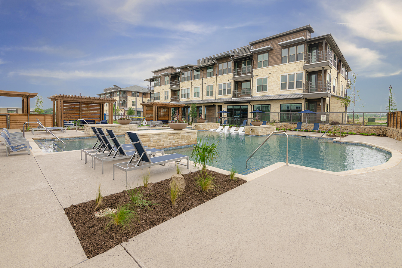 Past your doorstep, lush courtyards, and an outdoor activity area await you. You have a gorgeous pool with a sunning ledge, cabanas, and barbecue grills to enjoy. Stay active in our state-of-the-art fitness center. Spend as much time as you want with your pets in our dog park, dog wash, and grooming room. We even placed waste stations throughout the community for your convenience. To help make your everyday life simple and sustainable, we offer waste pick-up services, too. Thanks to round-the-clock access to our parcel locker and mail facility, you won’t have to worry about missed deliveries. Bike racks, EV charging stations, and one- and two-car breezeway-access garages are available.