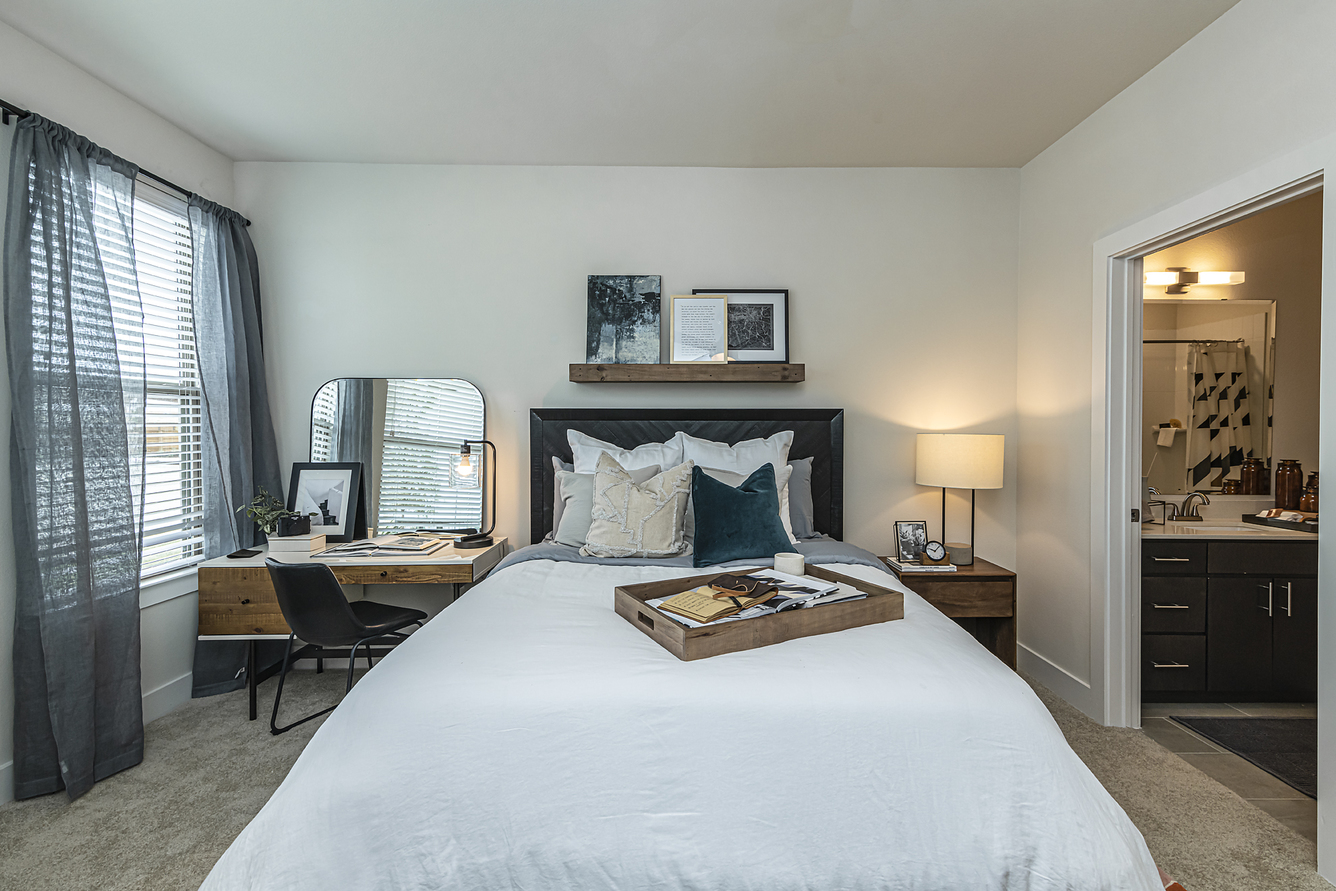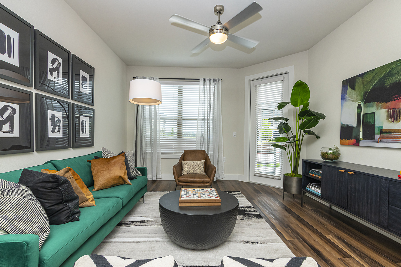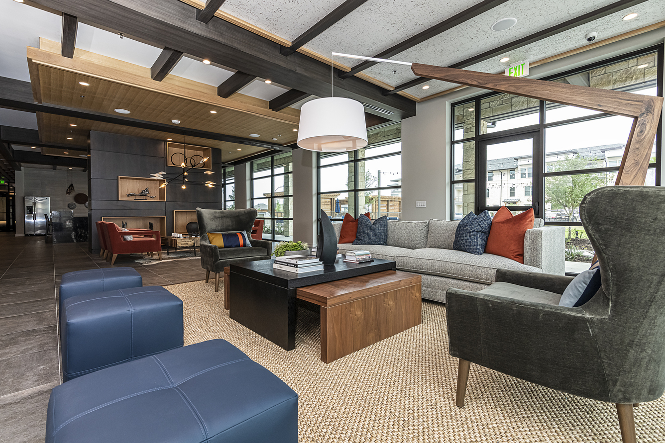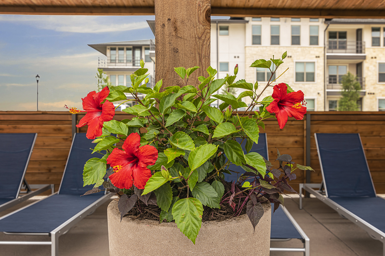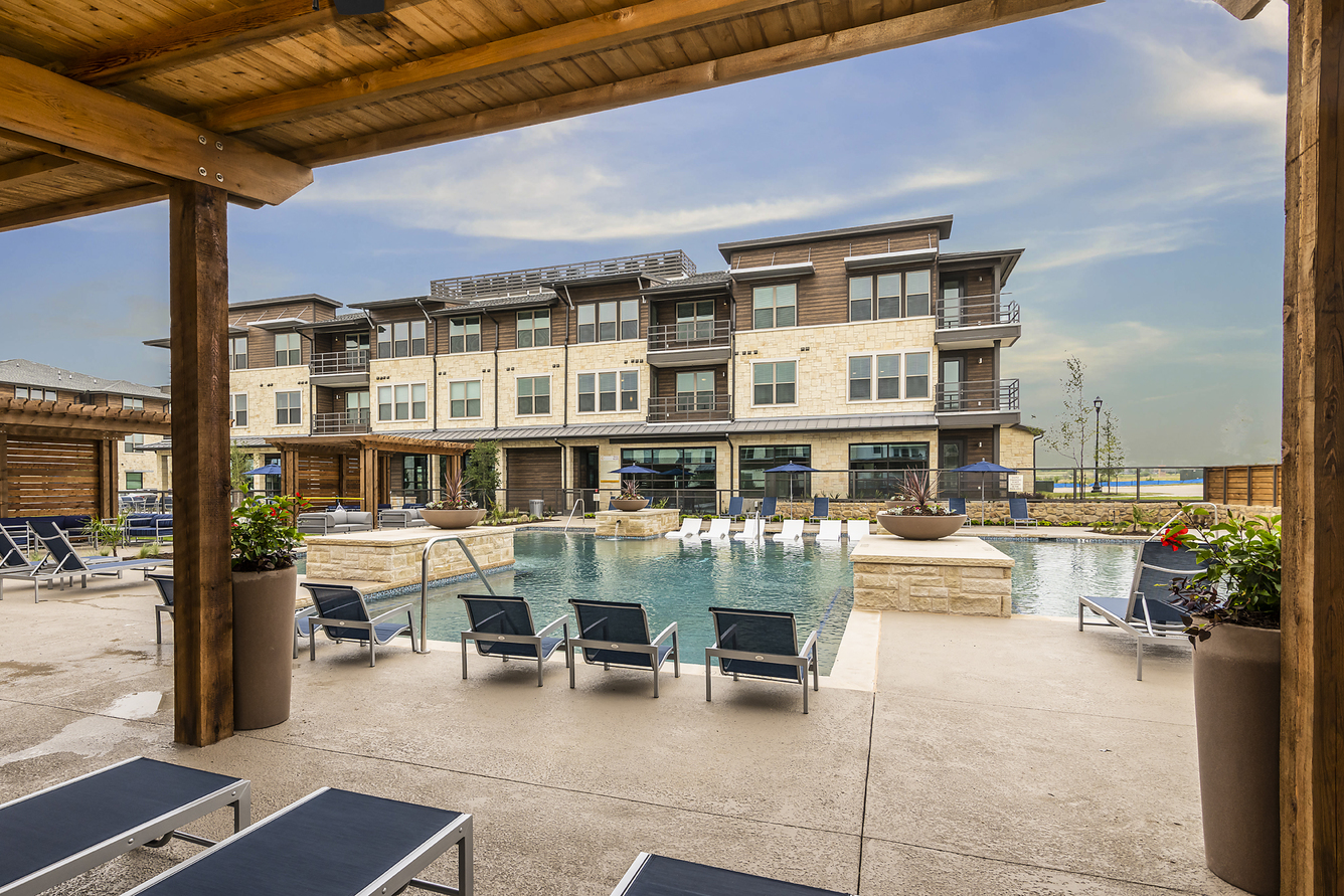 Past your doorstep, lush courtyards, and an outdoor activity area await you. You have a gorgeous pool with a sunning ledge, cabanas, and barbecue grills to enjoy. Stay active in our state-of-the-art fitness center. Spend as much time as you want with your pets in our dog park, dog wash, and grooming room. We even placed waste stations throughout the community for your convenience. To help make your everyday life simple and sustainable, we offer waste pick-up services, too. Thanks to round-the-clock access to our parcel locker and mail facility, you won’t have to worry about missed deliveries. Bike racks, EV charging stations, and one- and two-car breezeway-access garages are available.