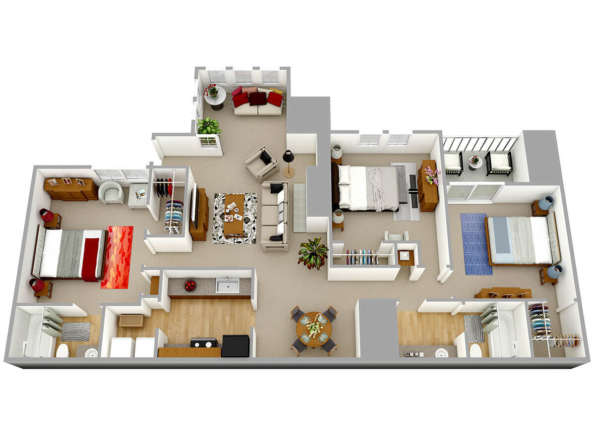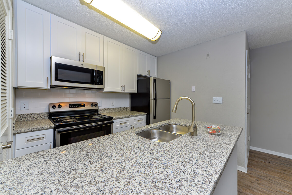 Whether you’re looking for one-, two-, or three-bedroom apartments, you’ll find them here. We also have seven different layouts to choose from. All apartments feature spacious interiors with elegant stylistic touches. The kitchens are equipped with either modern black or stainless-steel appliances. Dual-basin sinks and expansive countertops making cooking delicious homemade meals simple and convenient. Similarly, all kitchens have quality-crafted cabinetry. There’s plenty of room for storing and organizing your belongings. Each apartment at The Clarion has numerous of windows that let in an ample amount of natural light. All floor plans have been designed to include either a patio or balcony. It’s an ideal place to get some fresh air or relax after a long day.
