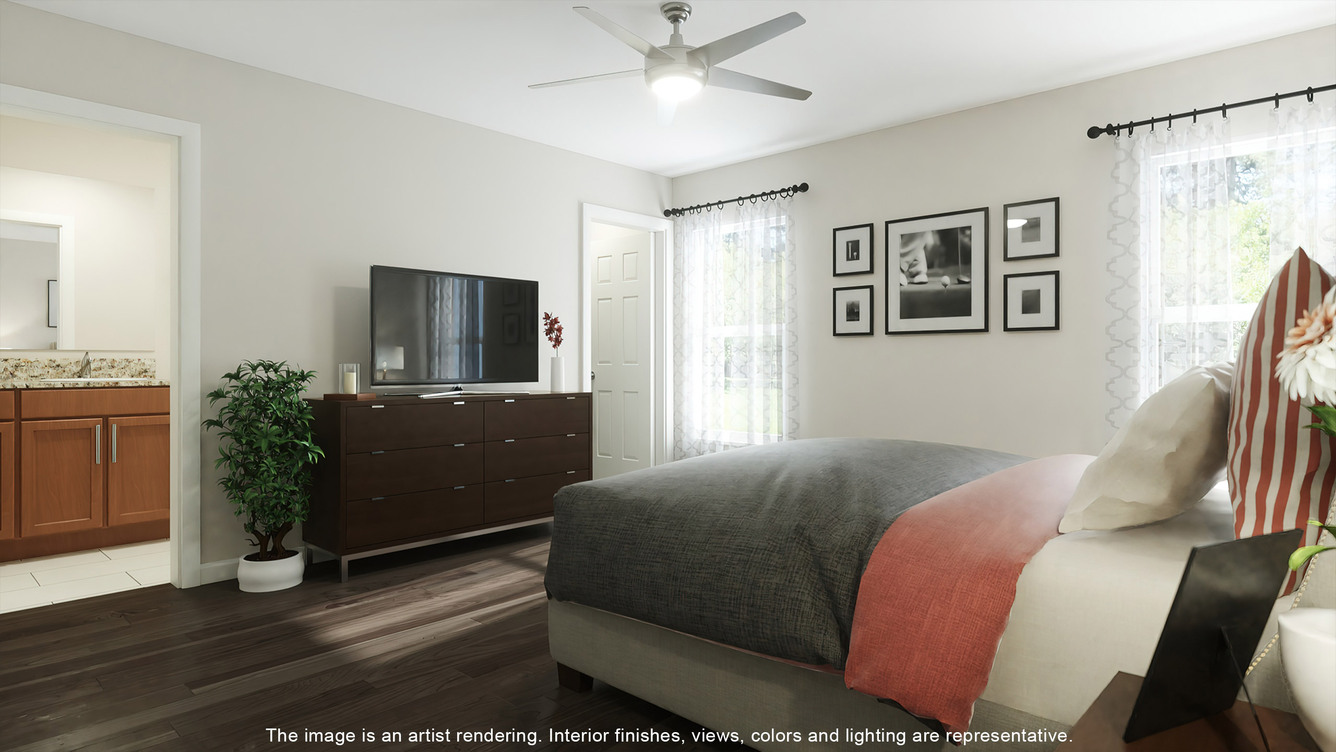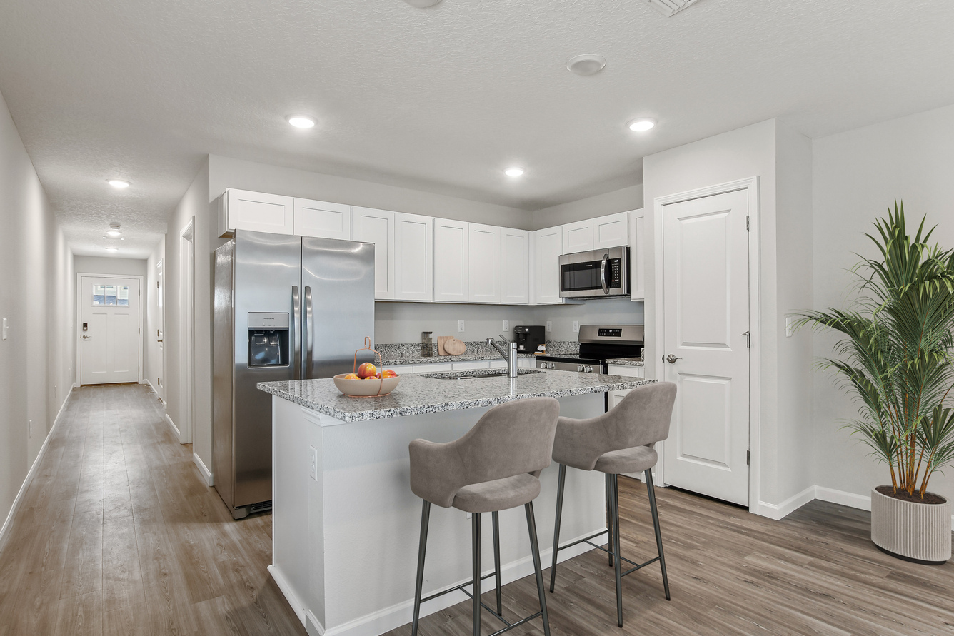 Each morning, you’ll wake up in a stunning interior with an open layout and smart-home technology. Move across luxury vinyl plank floors to a chef-inspired kitchen, where you can prepare a hearty breakfast using the stainless-steel Samsung appliance package. Laundry day is made simple with an in-home washer and dryer set, as well as generously sized walk-in closets to help you stay organized. No matter where you’re headed, you’ll appreciate the convenience of an attached garage, and when the day is done, retreat to your home with a private entrance to enjoy a nightcap on your private patio. For an even more elevated living experience, choose an upgraded floor plan with select features like a large kitchen island, tiled showers, and premium pond views.