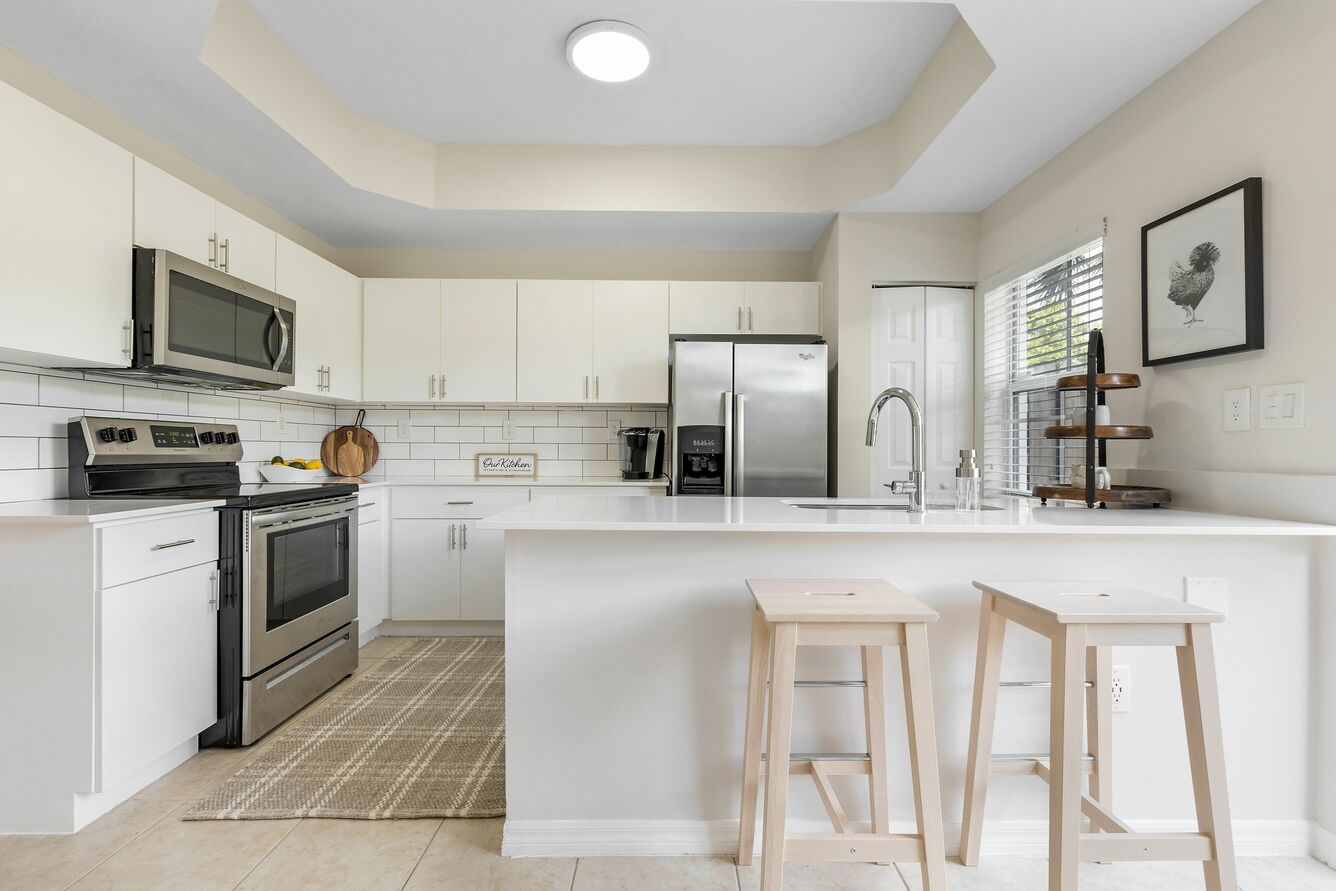 • Redesigned Kitchens with Stainless Steel Appliances, Quartz Counters and Tile Backsplash
