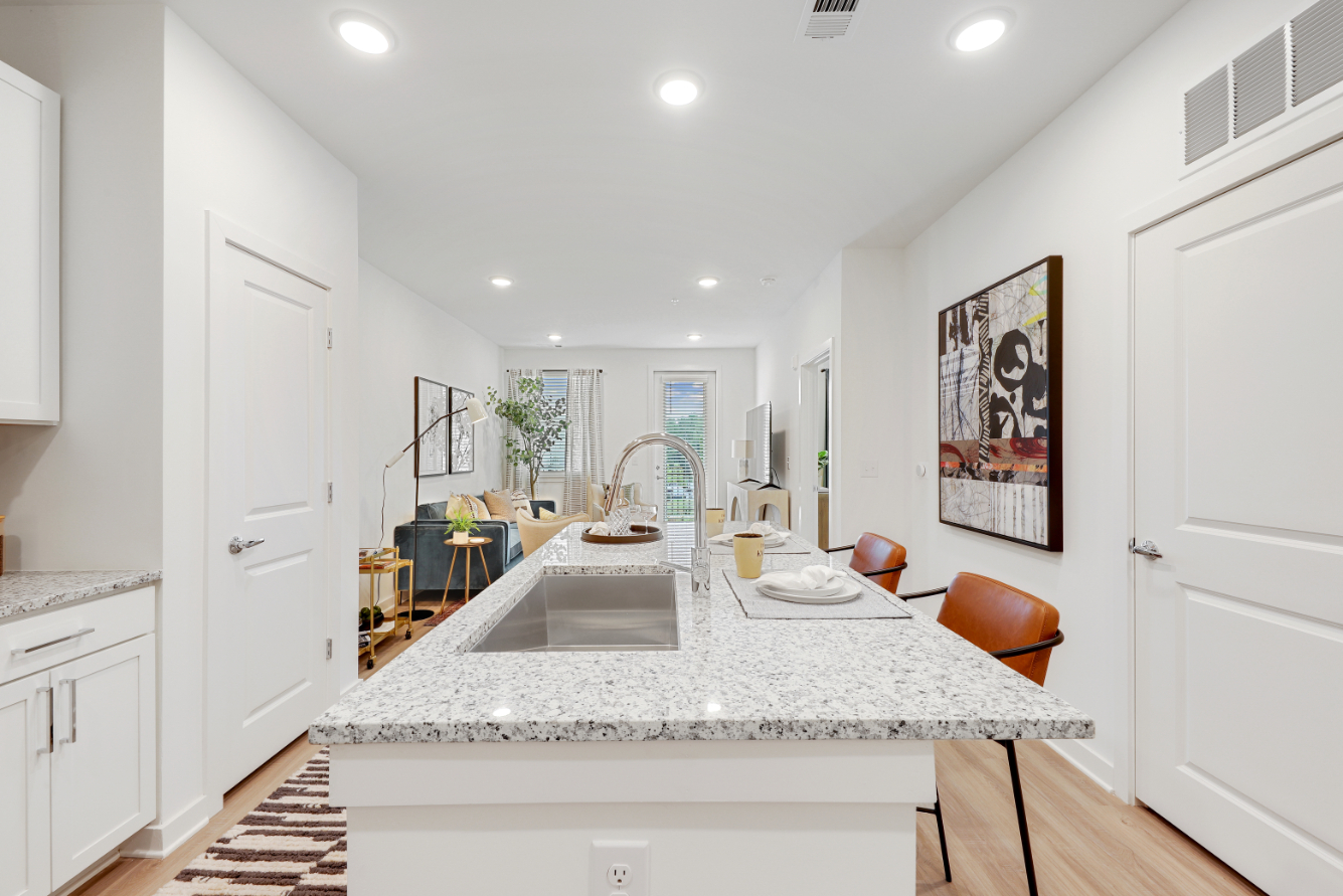 The pinnacle of modern luxury living awaits at The Knox, a contemporary apartment community in North Georgia with beautifully designed social spaces, stylish homes, and an unbeatable location in the Buice Lake community. Choose between one, two, and three bedroom floor plans with open layouts enhanced by wide-plank flooring, oversized windows, and tall ceilings. Your professional grade kitchen is the perfect spot to create memories around delicious meals with stunning natural granite countertops, custom cabinetry, and sleek stainless-steel appliances.