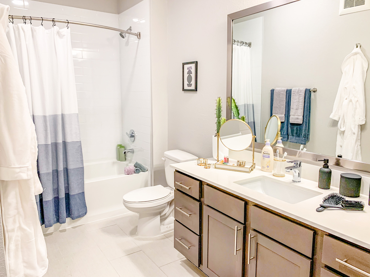 Among our studio, one, two, and three bedroom floor plans, you’ll find yourself a spacious, open-concept home with premium wood-style flooring and oversized windows. Balconies in select apartments allow you to soak in the sun while you enjoy your warm coffee each morning. Let your culinary skills shine in a stunning kitchen with stainless steel appliances, quartz or granite countertops, and a tile backsplash. Islands or breakfast bars in select apartments give you plenty of extra space. Keep everything within easy reach inside your wood cabinets with under-mount lighting. When it’s time to relax, indulge in a luxurious bath in your spa-inspired bathroom with a soaking tub and beautiful tile flooring. Bedrooms have premium carpeting for added comfort. Most floor plans also offer the convenience of walk-in closets while all floor plans come with in-home washer and dryer sets.