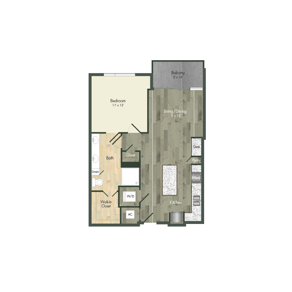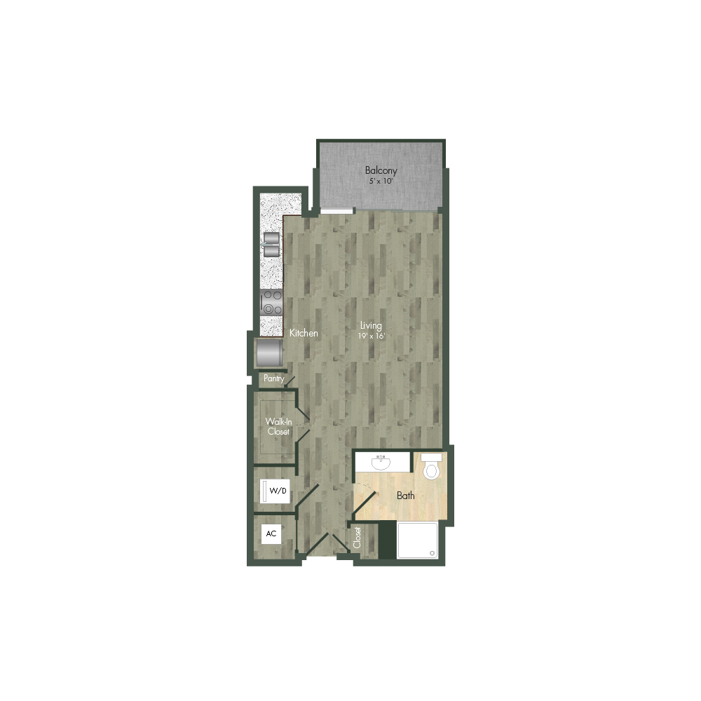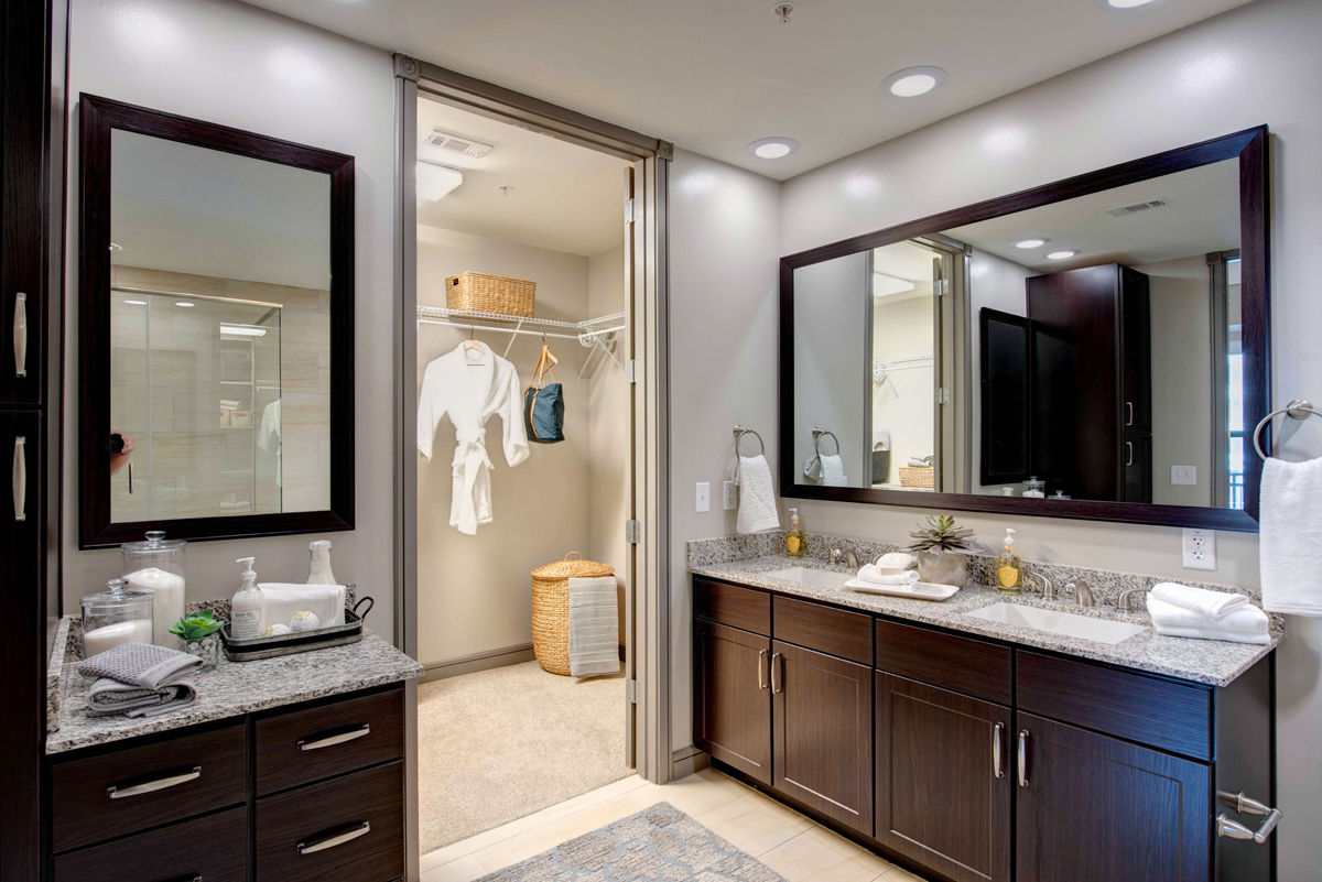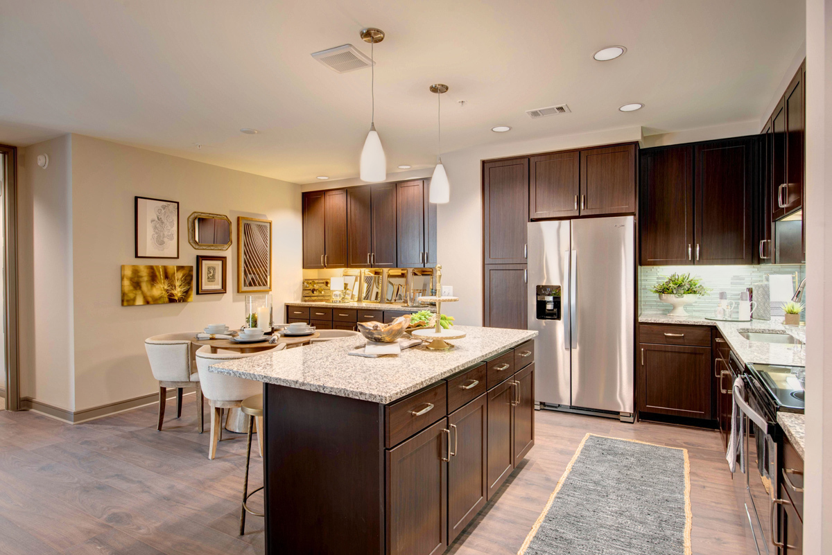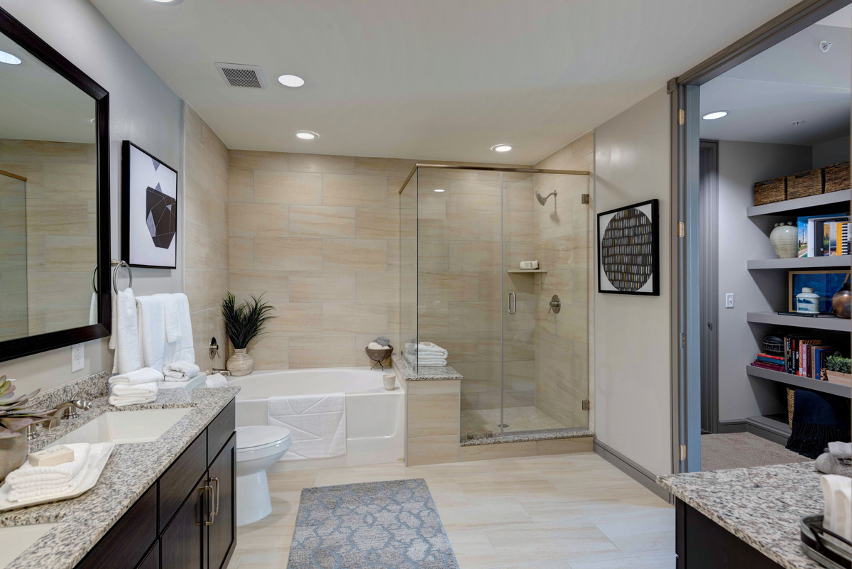 From natural palette schemes to elegant wood floors, our homes boast appealing interiors with a sophisticated style that can’t be found anywhere else. Pet-friendly living and dining areas showcase premium views of the neighborhood through floor-to-ceiling windows. Feel like a master chef every time you cook in the modern kitchens with custom-crafted cabinetry and stainless steel appliances. In select homes, you’ll find island kitchens with pendant lighting. For ultimate convenience and comfort, our floor plans also include fully customized closets, full-size and front-loading laundry appliances, and floor-to-ceiling tiled bathrooms with granite vanities and framed mirrors.