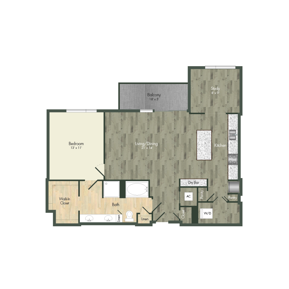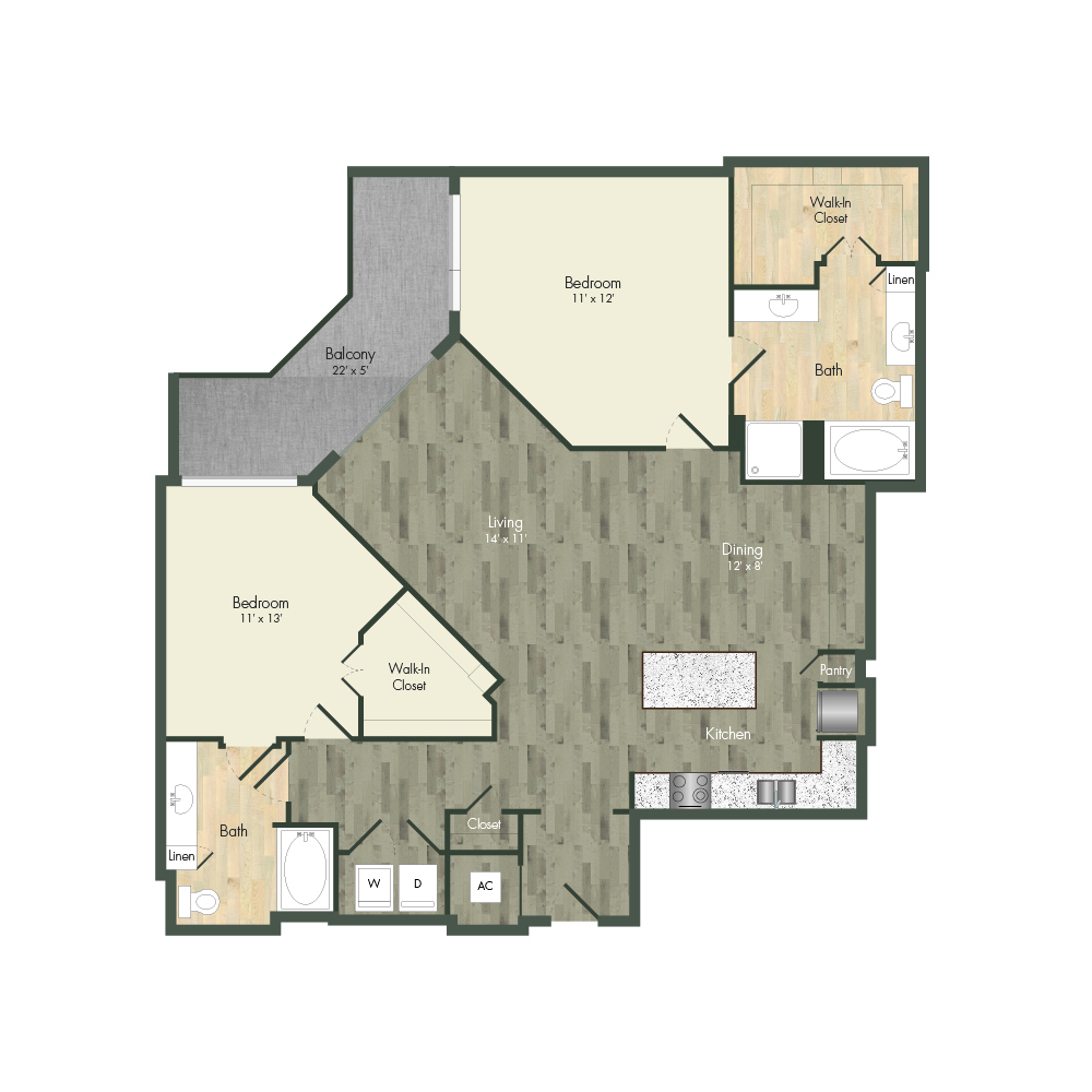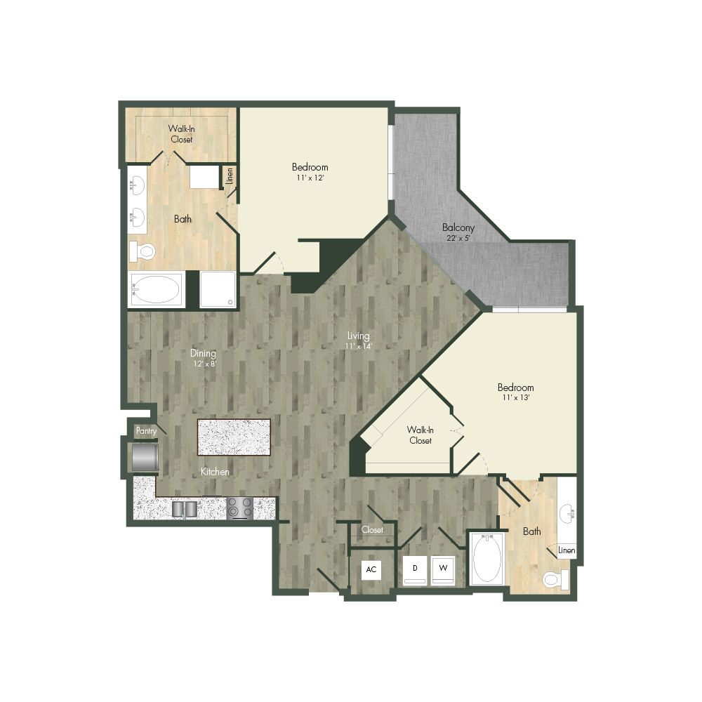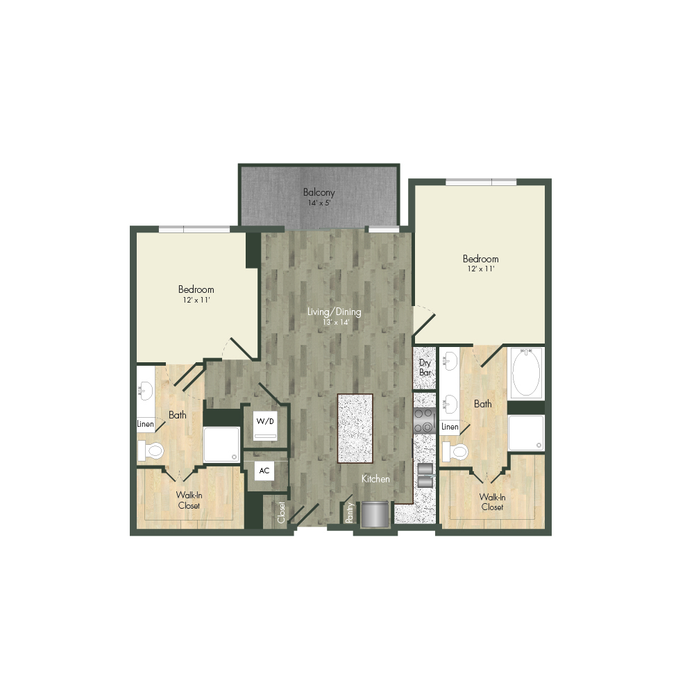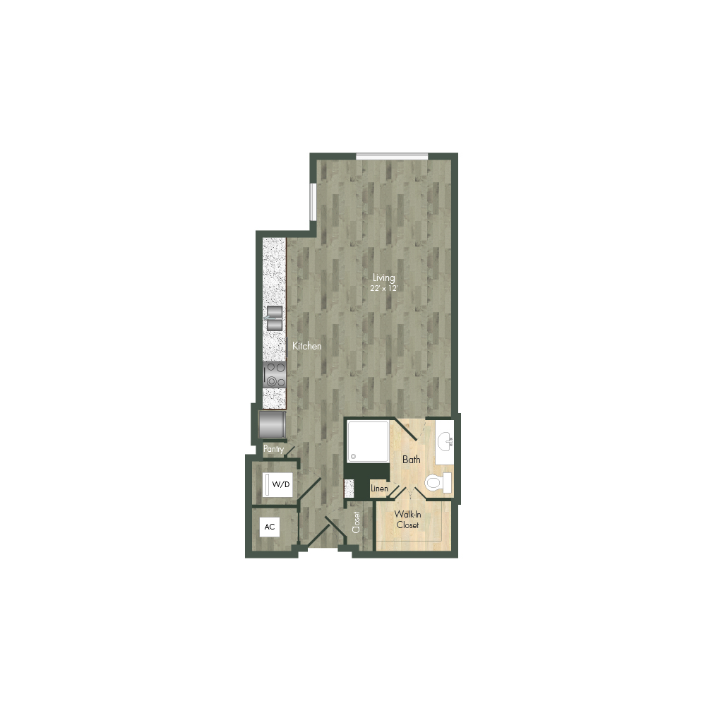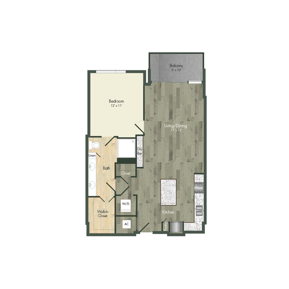 From natural palette schemes to elegant wood floors, our homes boast appealing interiors with a sophisticated style that can’t be found anywhere else. Pet-friendly living and dining areas showcase premium views of the neighborhood through floor-to-ceiling windows. Feel like a master chef every time you cook in the modern kitchens with custom-crafted cabinetry and stainless steel appliances. In select homes, you’ll find island kitchens with pendant lighting. For ultimate convenience and comfort, our floor plans also include fully customized closets, full-size and front-loading laundry appliances, and floor-to-ceiling tiled bathrooms with granite vanities and framed mirrors.