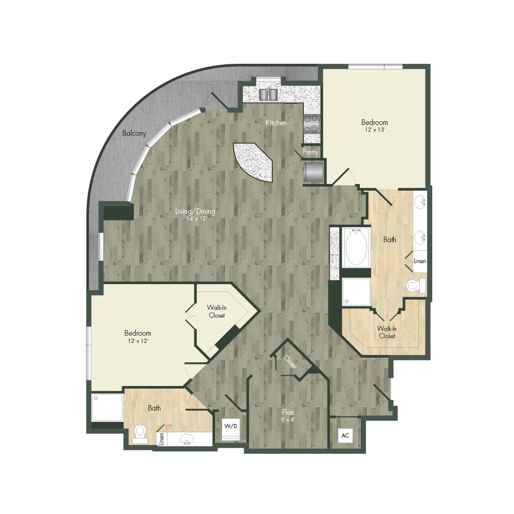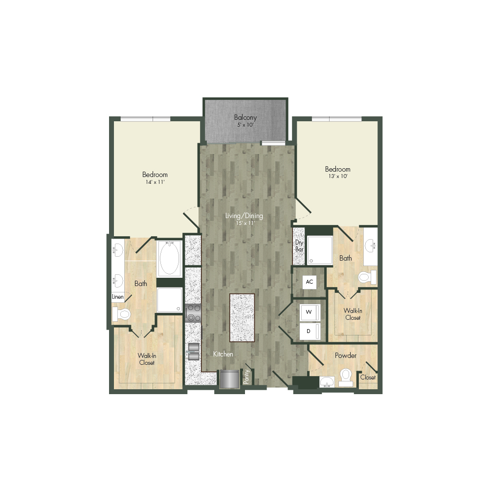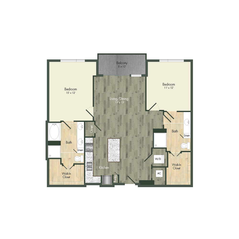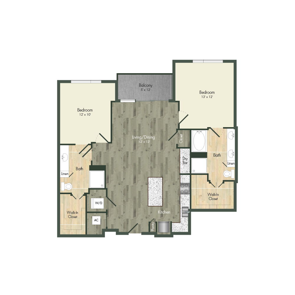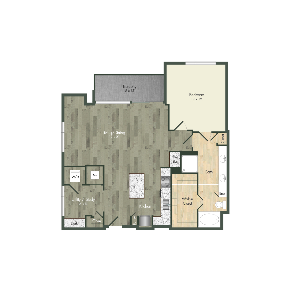 From natural palette schemes to elegant wood floors, our homes boast appealing interiors with a sophisticated style that can’t be found anywhere else. Pet-friendly living and dining areas showcase premium views of the neighborhood through floor-to-ceiling windows. Feel like a master chef every time you cook in the modern kitchens with custom-crafted cabinetry and stainless steel appliances. In select homes, you’ll find island kitchens with pendant lighting. For ultimate convenience and comfort, our floor plans also include fully customized closets, full-size and front-loading laundry appliances, and floor-to-ceiling tiled bathrooms with granite vanities and framed mirrors.