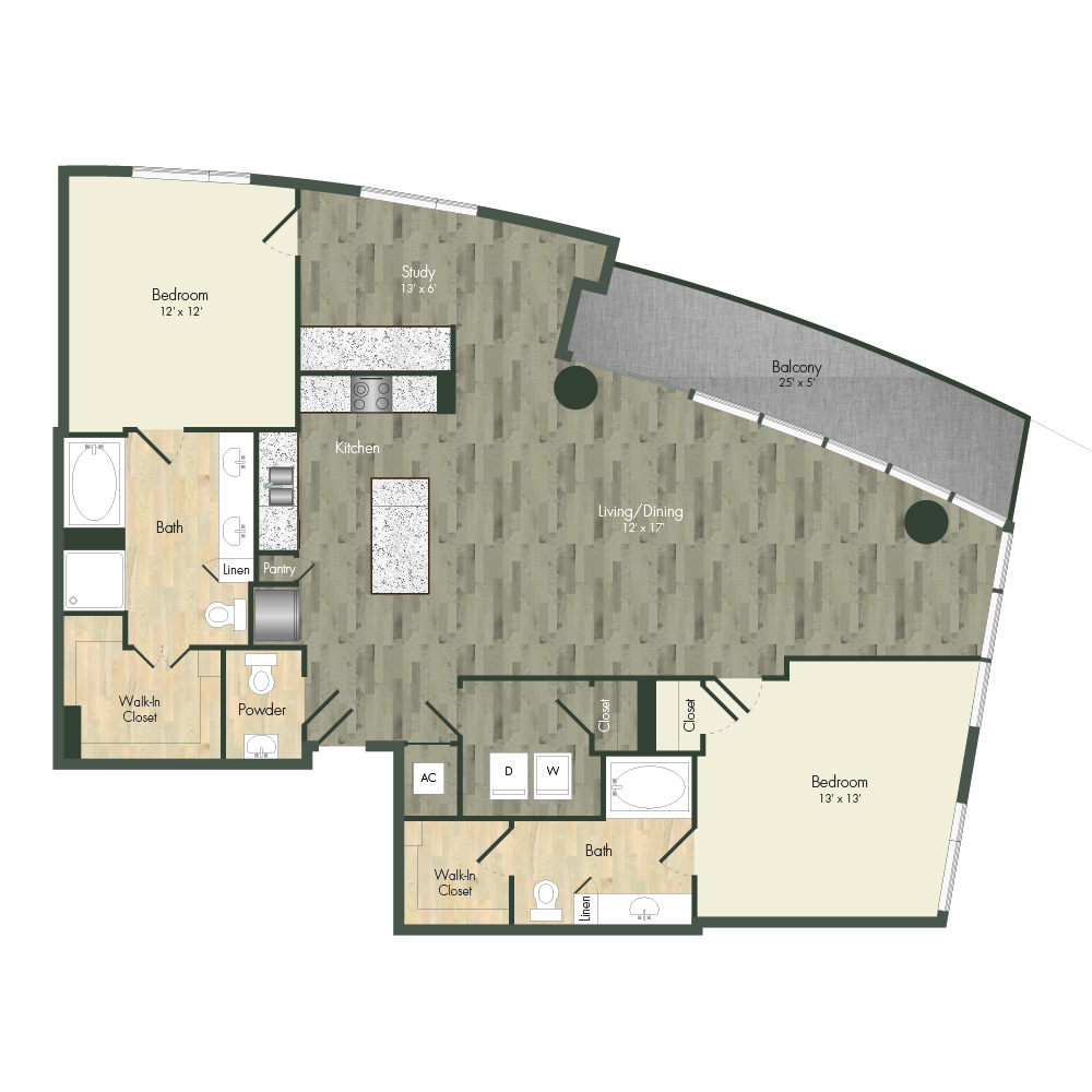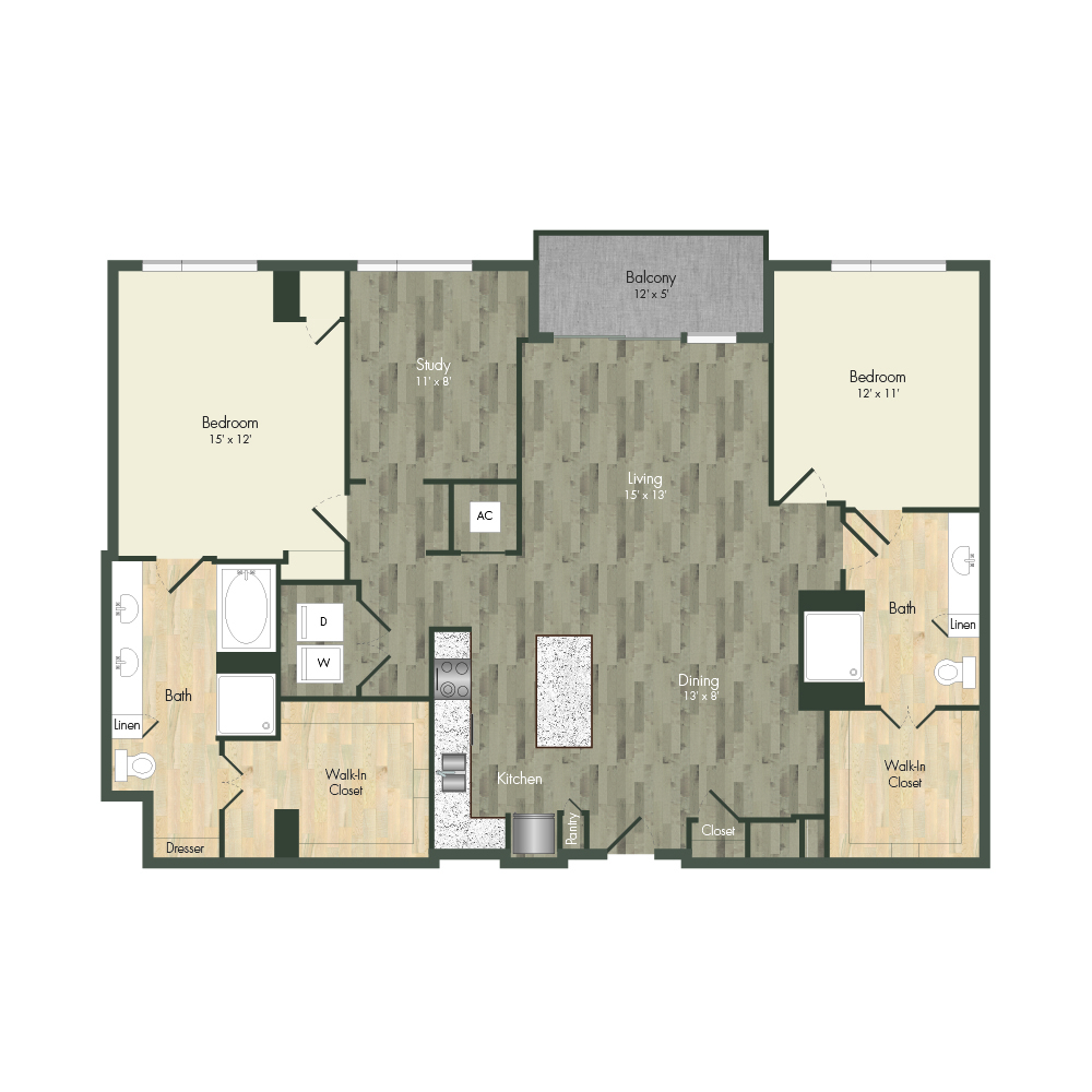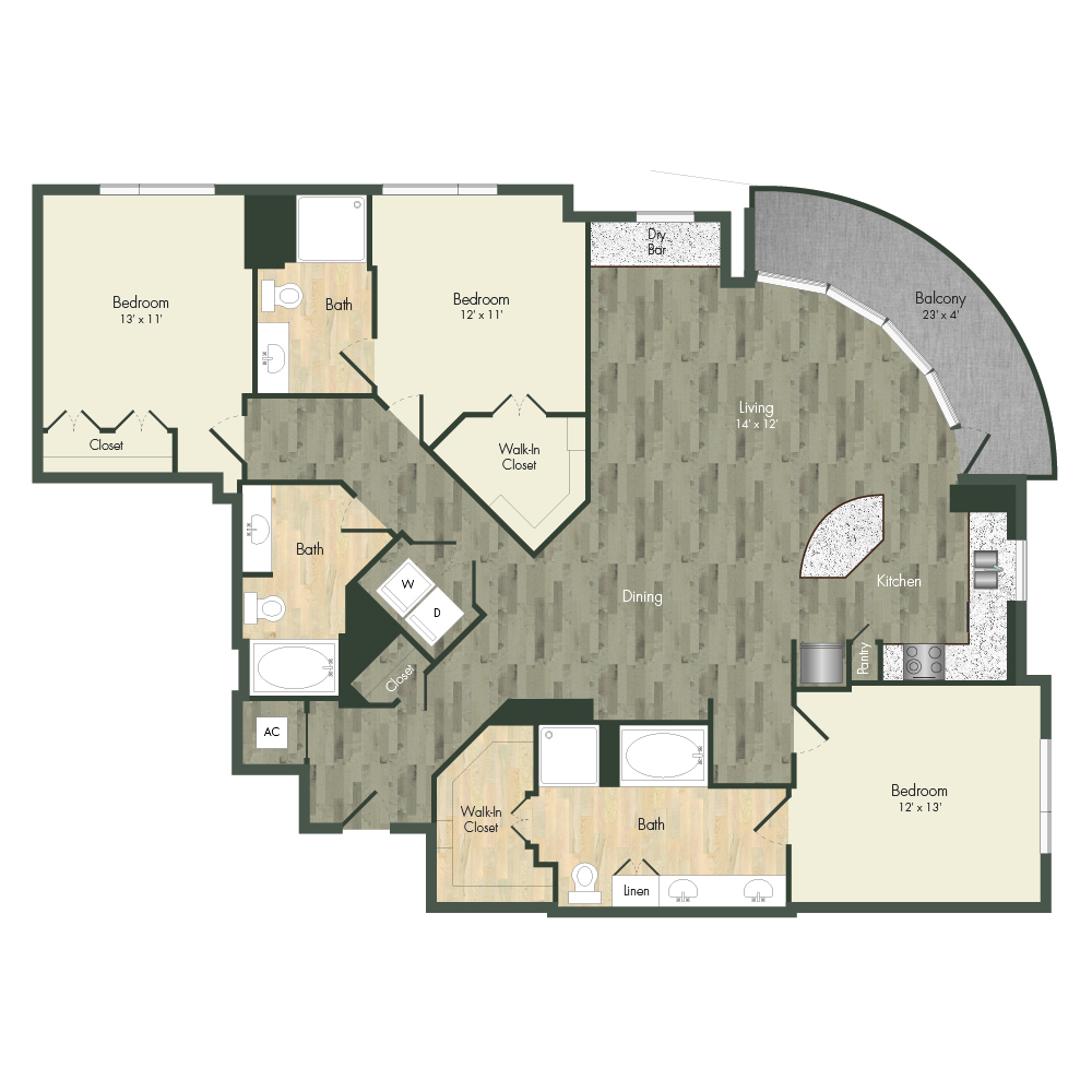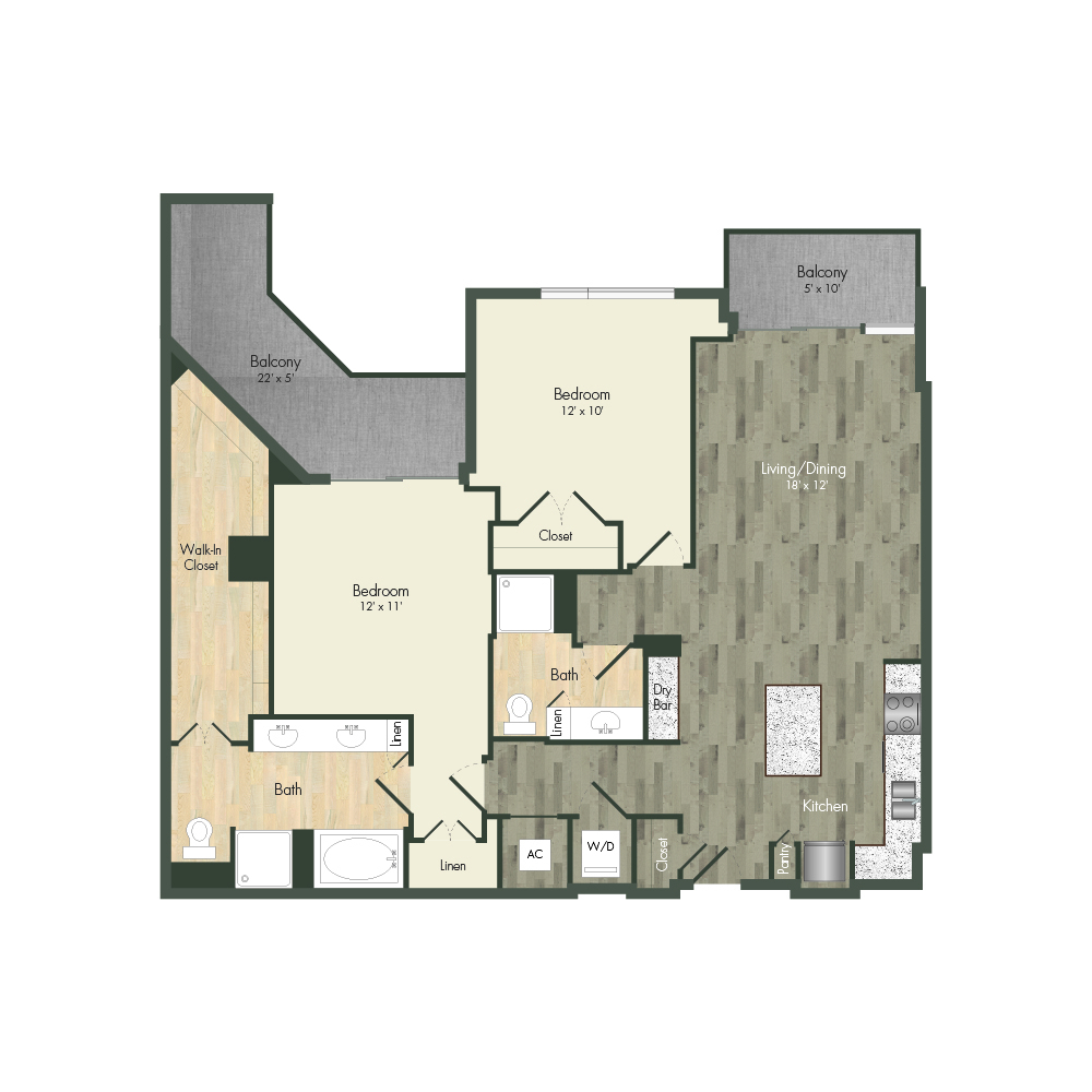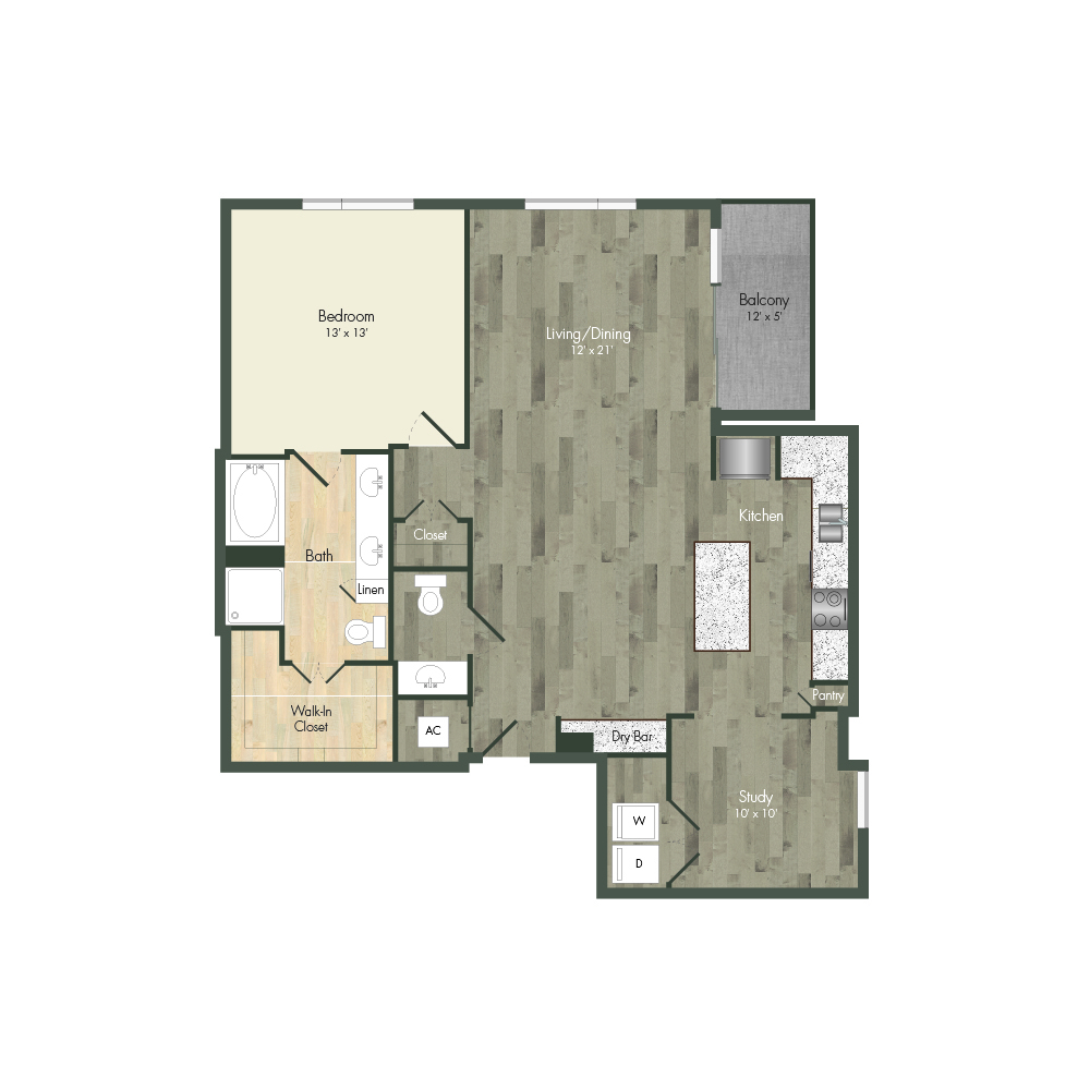 From natural palette schemes to elegant wood floors, our homes boast appealing interiors with a sophisticated style that can’t be found anywhere else. Pet-friendly living and dining areas showcase premium views of the neighborhood through floor-to-ceiling windows. Feel like a master chef every time you cook in the modern kitchens with custom-crafted cabinetry and stainless steel appliances. In select homes, you’ll find island kitchens with pendant lighting. For ultimate convenience and comfort, our floor plans also include fully customized closets, full-size and front-loading laundry appliances, and floor-to-ceiling tiled bathrooms with granite vanities and framed mirrors.