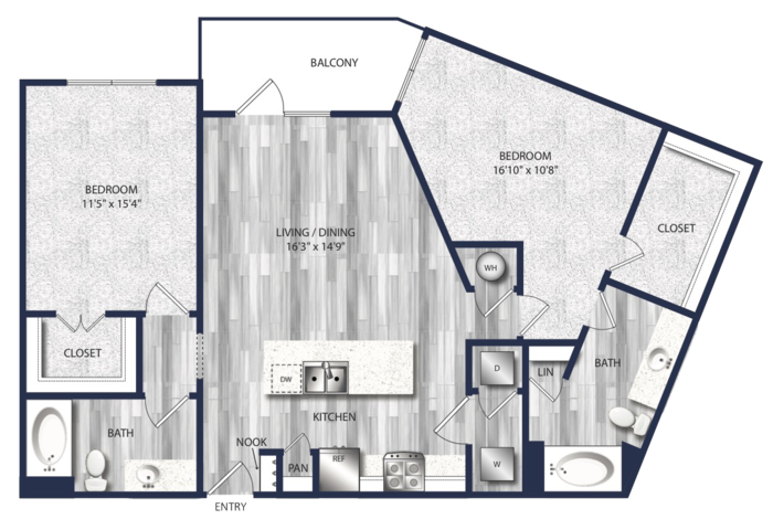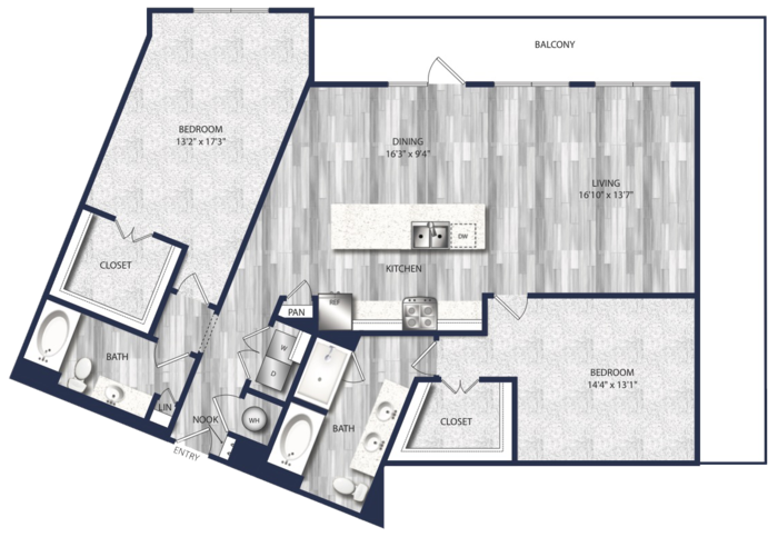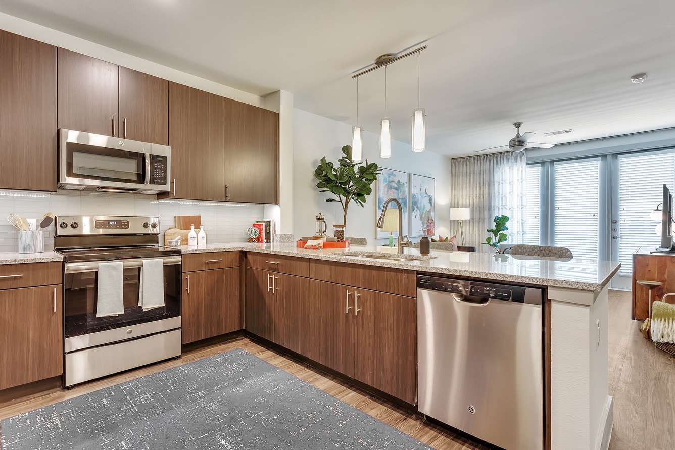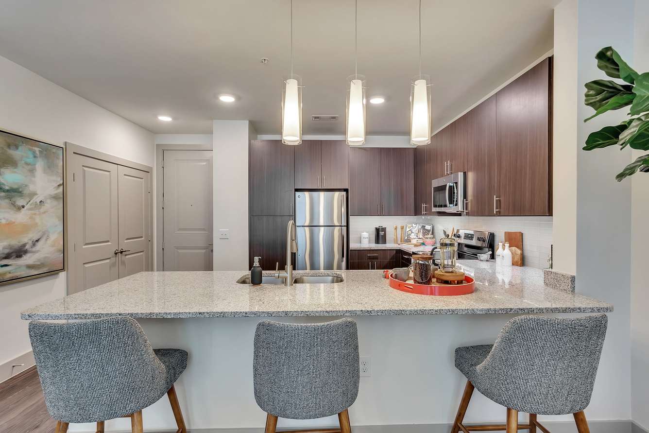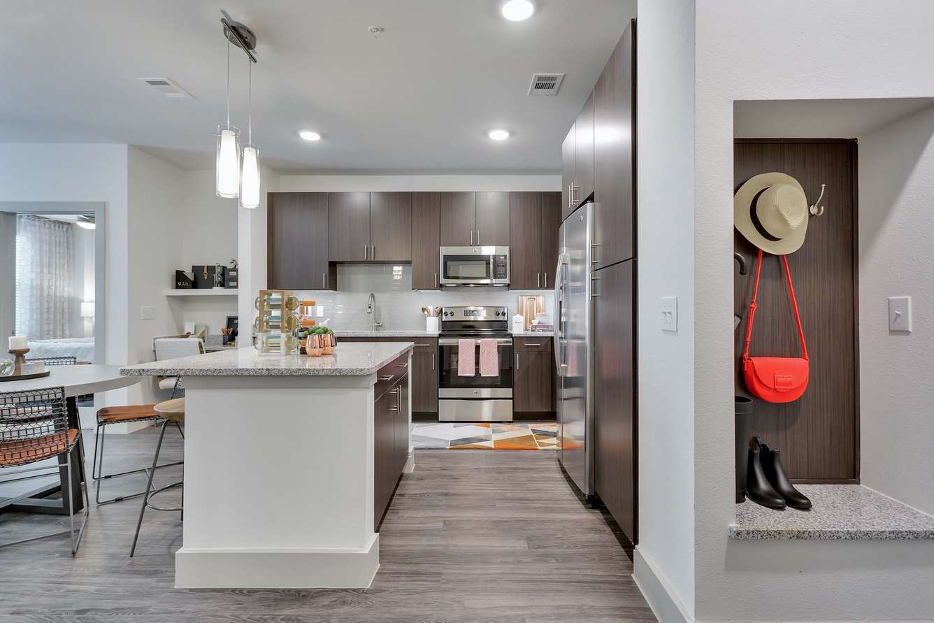 Welcome to The Nash, a beautiful apartment community located within the heartbeat of Midtown Park Dallas. Our apartment homes were built to fit the needs of its residents, while also exhibiting amazing views and unmatched style. The community has a collection of premium amenities and features, including a sun-drenched pool, a state of the art fitness center, and a relaxing yoga room to find your Zen. Each apartment home features large windows giving way to breathtaking views of the city, hardwood-style floors, stainless steel appliances, granite countertops and much more. The Nash community is near, Dallas’s most renowned tourist attractions and are located a short distance away while providing commuters with a breeze driving to the office. Plenty of friendly coffee shops, stylish restaurants, trendy bars, and community parks are close by to enjoy.