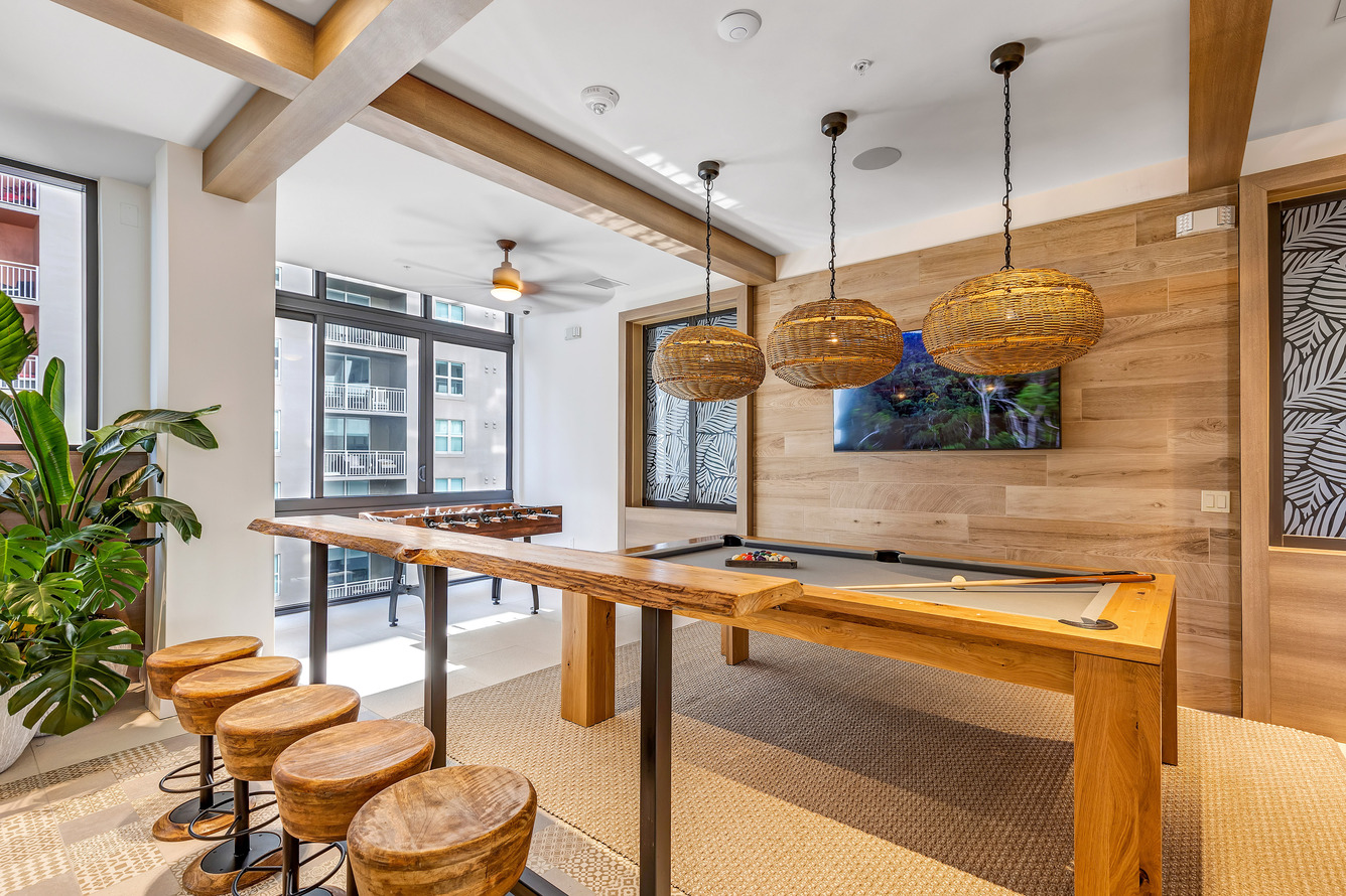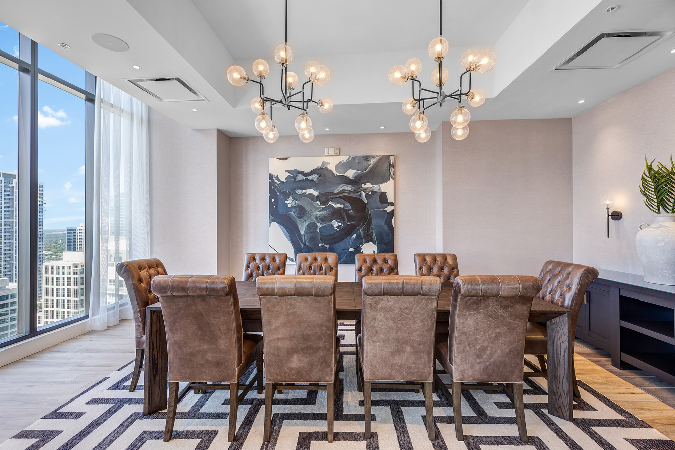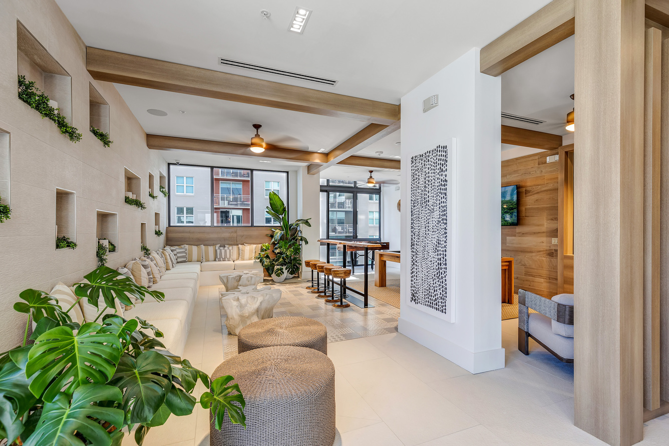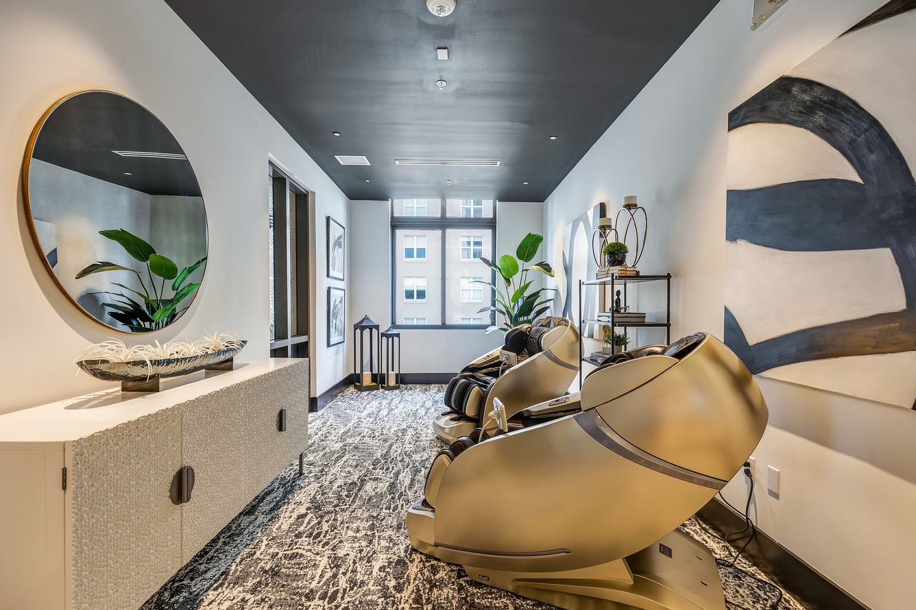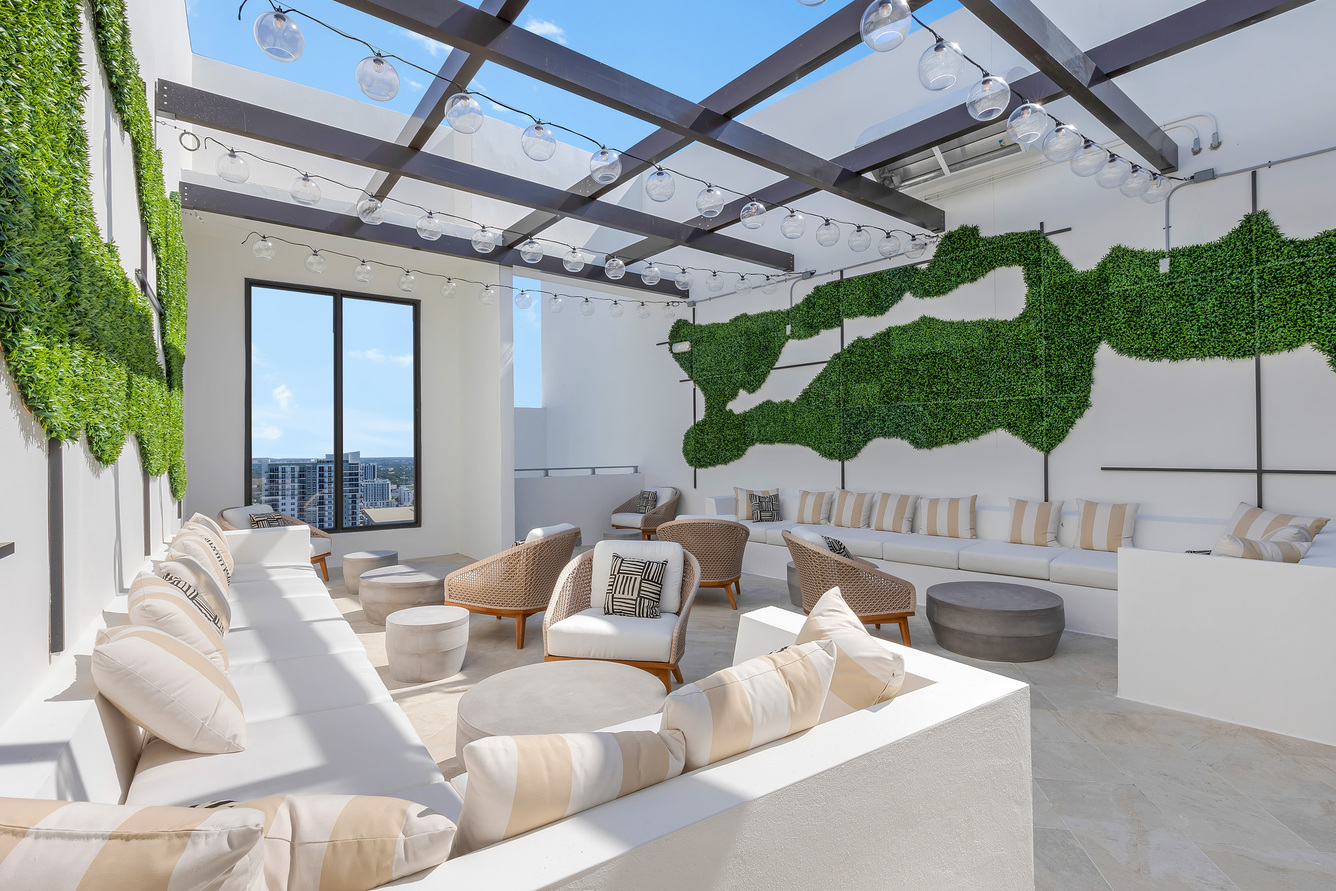 An unrivaled amenity package, which includes everything from a dry cleaning service to a pet spa, offers the feeling of living in a five-star resort. On a summer day, cool off on a refreshing splash deck or mix a cocktail on a rooftop lounge with stunning panoramic views. Take your workouts to the next level in a state-of-the-art fitness center complete with a spin room and a yoga studio.
