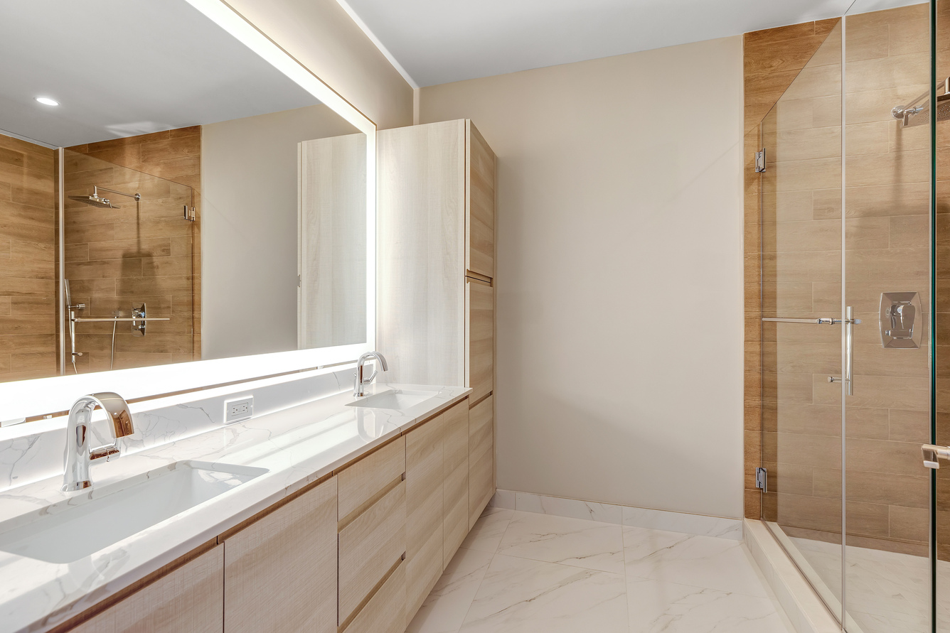 • Penthouse Residences Feature Enhanced Upgrades like Caesar stone Quartz Marble Countertops in Kitchens, Back-Lit Bathroom Mirrors, Black Fixtures, and More