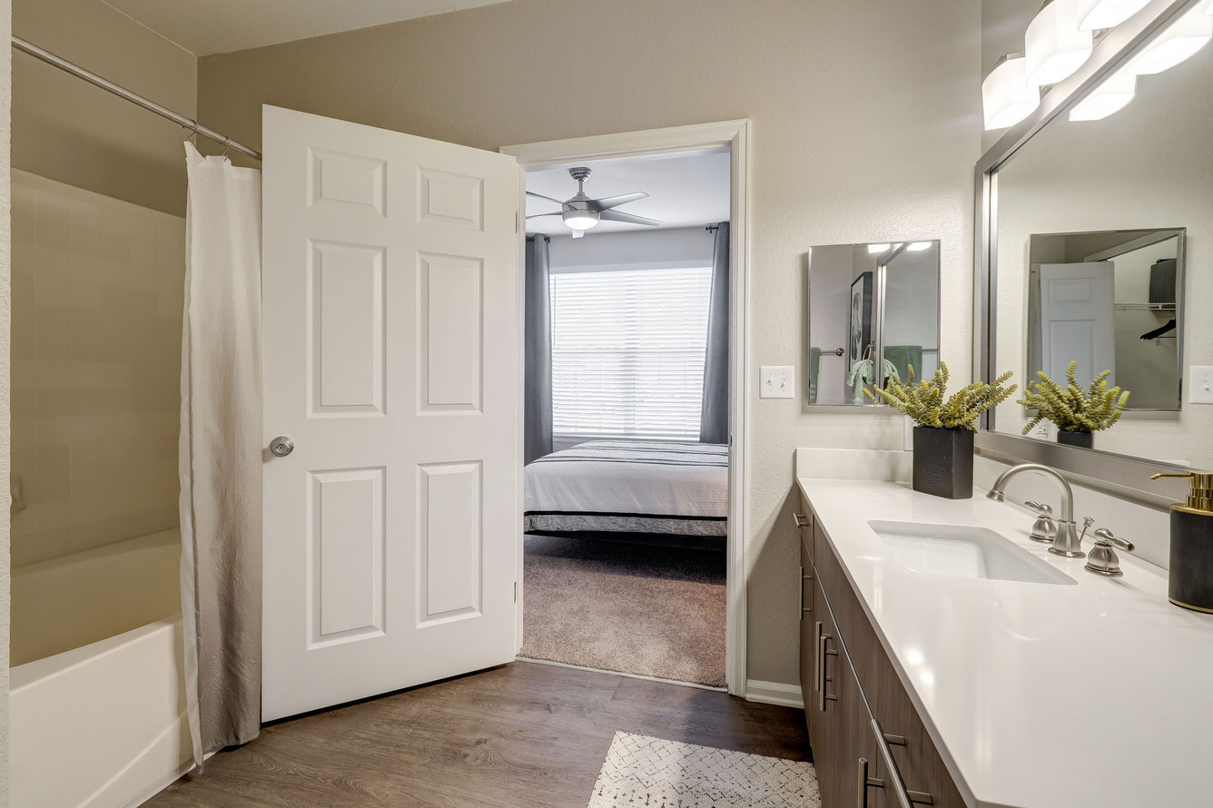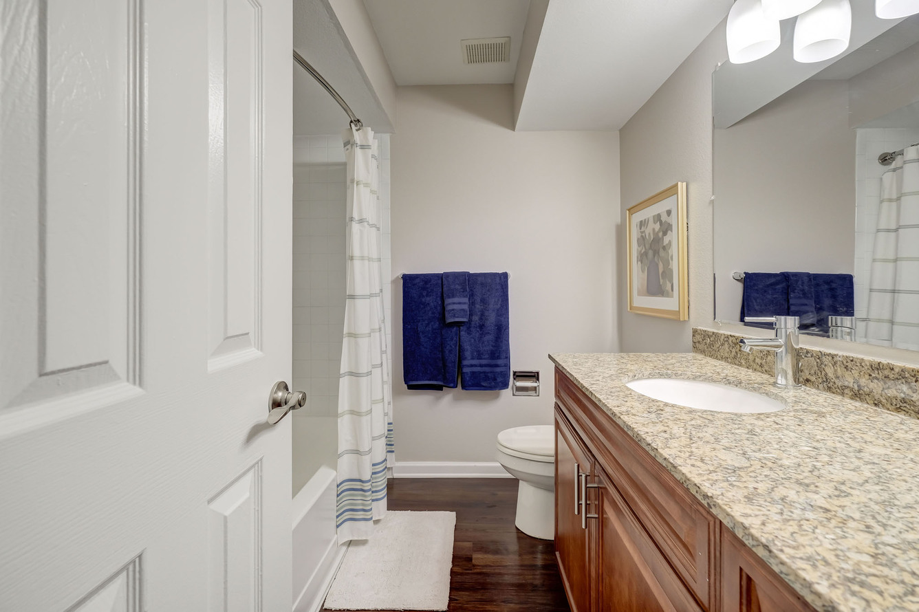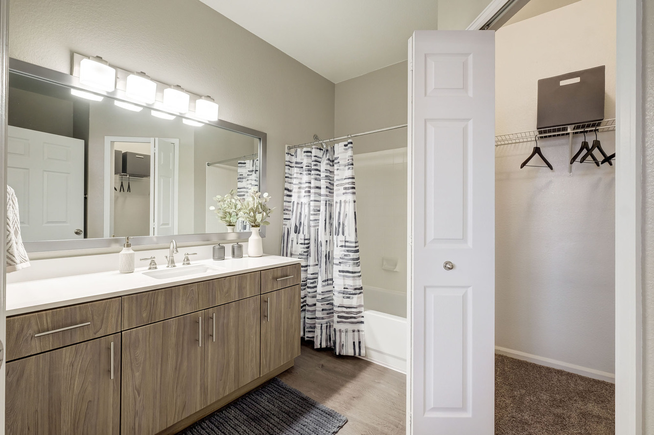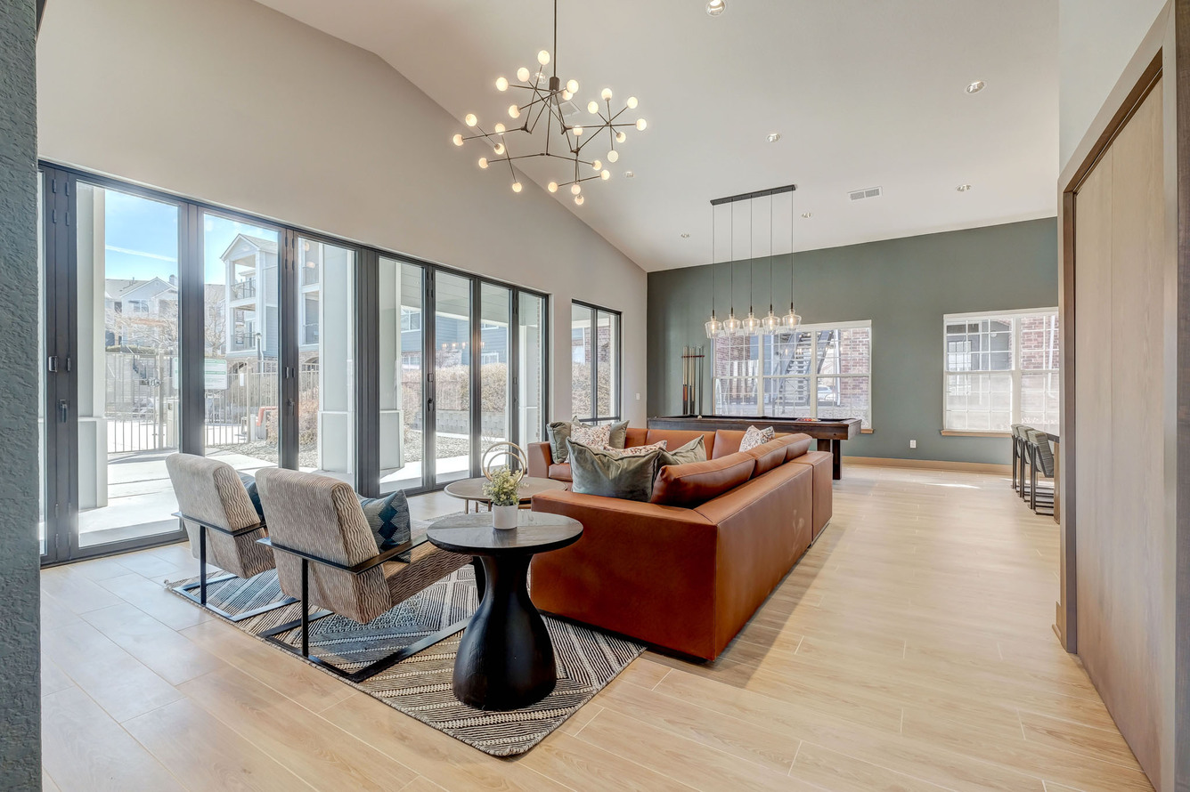 At Emmersyn, our one-, two-, and three-bedroom floor plans come with a variety of amenities depending on the building and layout. Schedule a tour with us during office hours to see our cable-ready apartments with hardwood floors and ceiling fans, and then have your choice of walk-in closets, window covers, washer and dryer sets, and a private patio or balcony with an alarm system. Whether cozy by the fireplace or cooled by the AC, our open, spacious apartments are equipped for every Colorado season. Kitchens also come with a dishwasher, garbage disposal, ice maker, microwave, and self-cleaning oven. The amenities certainly do not end in our apartments, with plenty to discover in the Emmersyn community as well! Let loose in one of our many onsite facilities, including our year-round swimming pool with hot tub and nearby BBQ grills, our Wi-Fi enabled clubhouse with a billiards table and satellite TV, our 24-hour fitness center with tennis courts, and even our state-of-the-art movie theater. The fun continues out in Lone Tree, Colorado, too! Whether you utilize our covered parking and garage access to drive, or our proximity to public transit, you will feel connected not only to Lone Tree, but also nearby downtown Denver by routes like C-470, E-470, I-25, and the Lincoln Light Rail. In Lone Tree itself, you can explore the nearby recreation center, bowling alley, indoor skydiving facility, the myriad trails for running, biking, or hiking, and even Colorado's largest shopping mall, Park Meadows Mall, with 185 stores and restaurants to discover. When you contact us, be sure to also ask about other services we offer our residents, from package reception and complimentary trash pickup, to guest apartments, and our inclusive pet policy. Choose Emmersyn today!