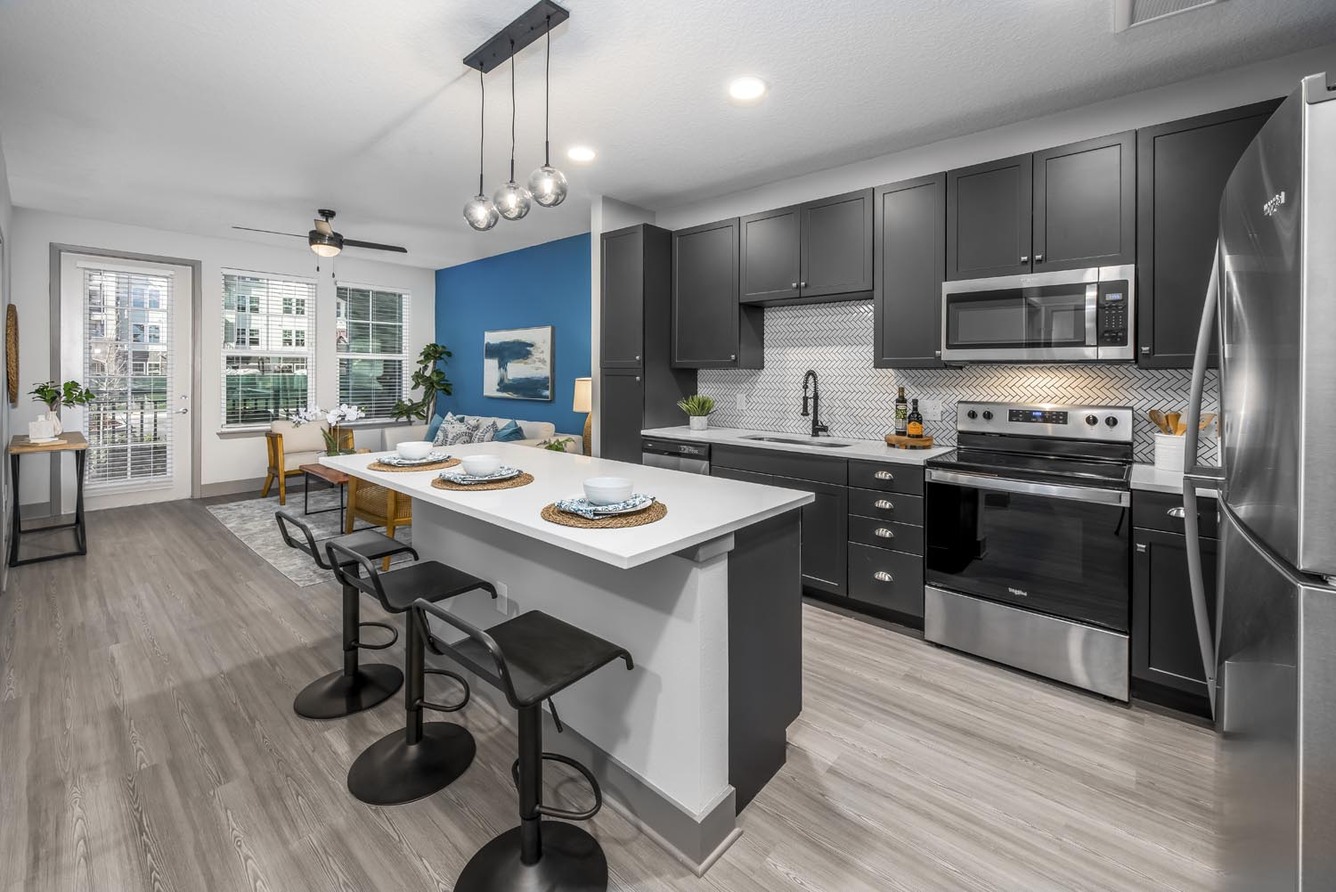 Experience contemporary bliss in a beautifully designed luxury apartment at The Westerly. These studio, one, two, and three bedroom apartments, carefully crafted with your lifestyle in mind, offering bright and open living spaces complemented by hardwood-style flooring, quartz countertops, and stainless steel appliances. Modern conveniences like programmable thermostats, Bluetooth entry, and full-size washer and dryer sets will make daily living efficient, while the wealth of amenities that await you right outside your front door will help you relax and unwind.