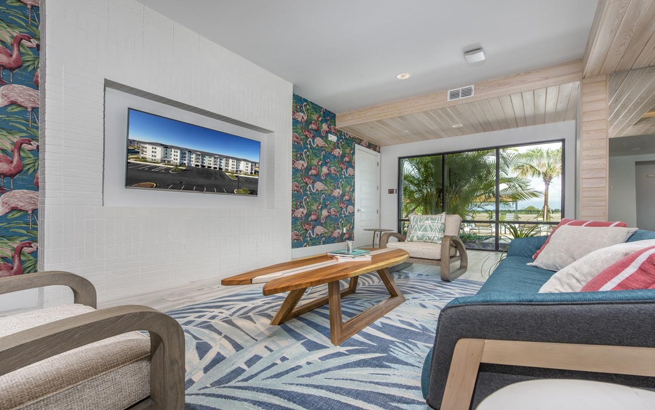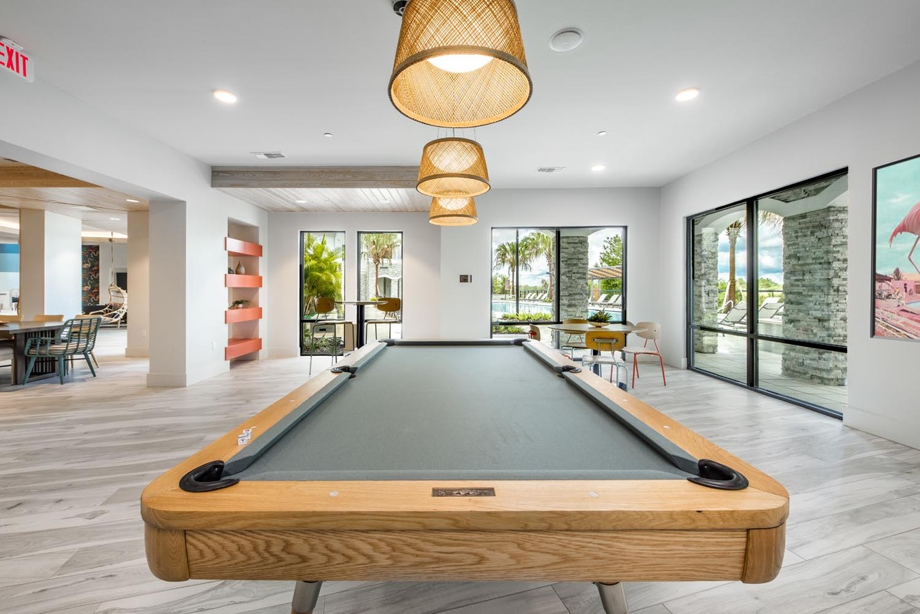 Overlooking Lake Britt, the private pool features an elevated deck and sun shelf where you can lounge while taking in fantastic views. The 24-hour fitness center has a dedicated studio with a virtual training mirror, taking the guesswork out of your workout routine. Follow up with a session in the dry sauna or a cooldown at the outdoor wellness park, where you’ll find trails and even more fitness equipment.