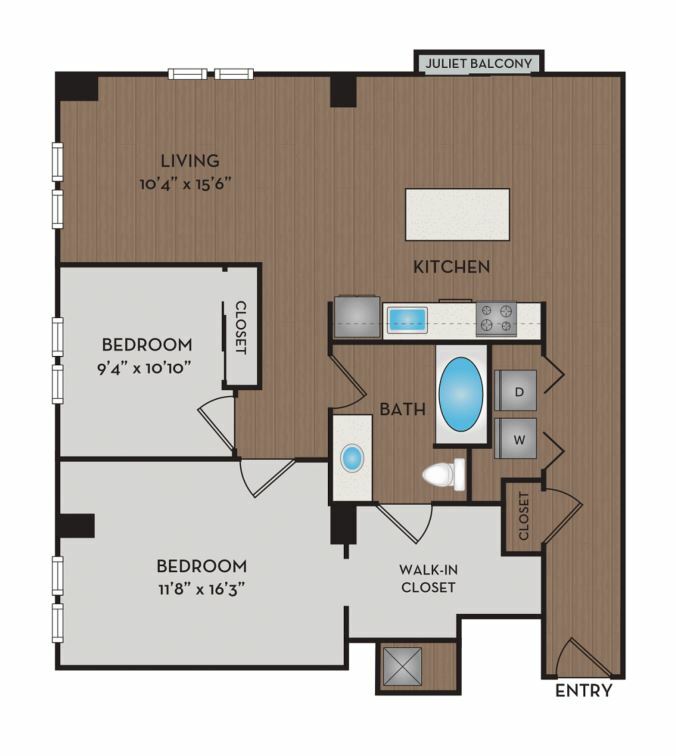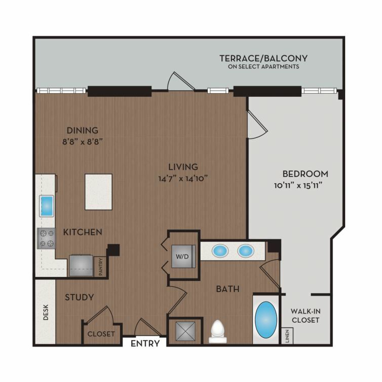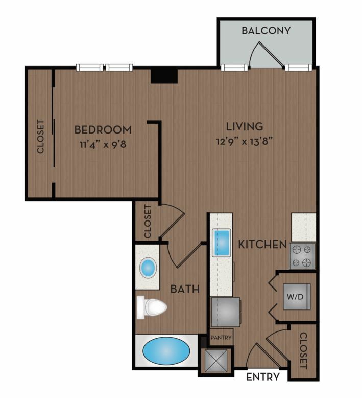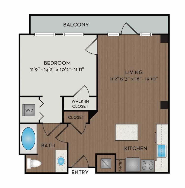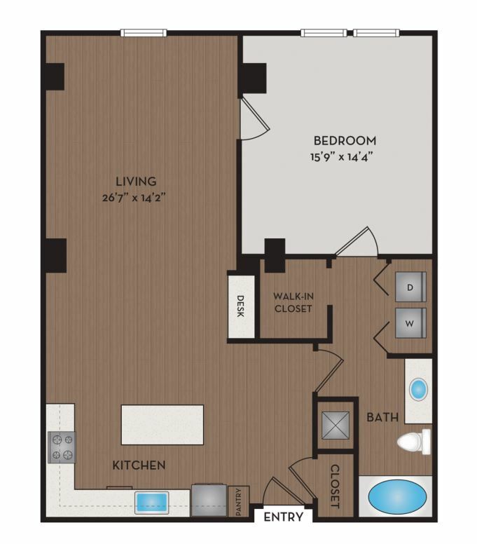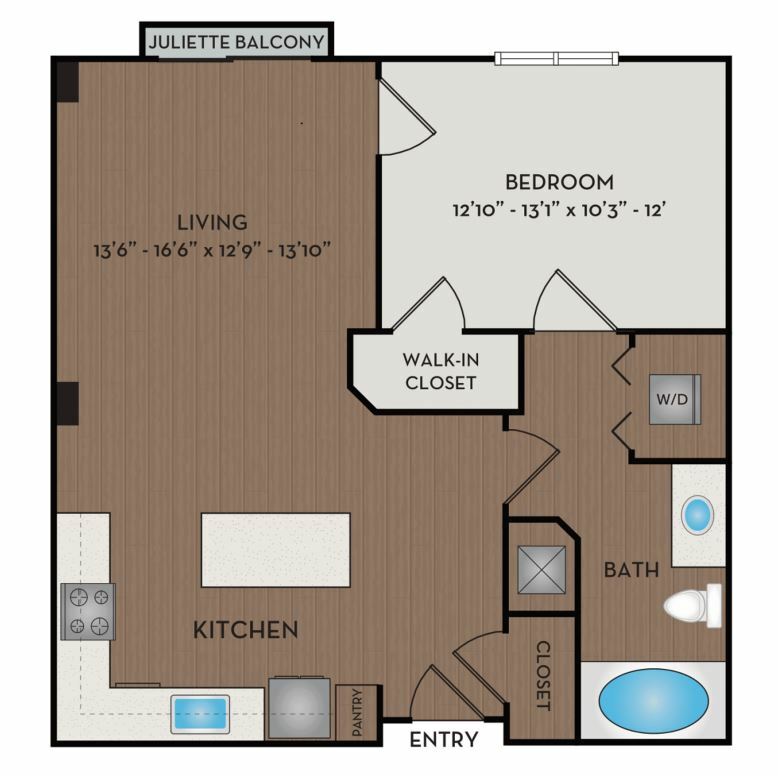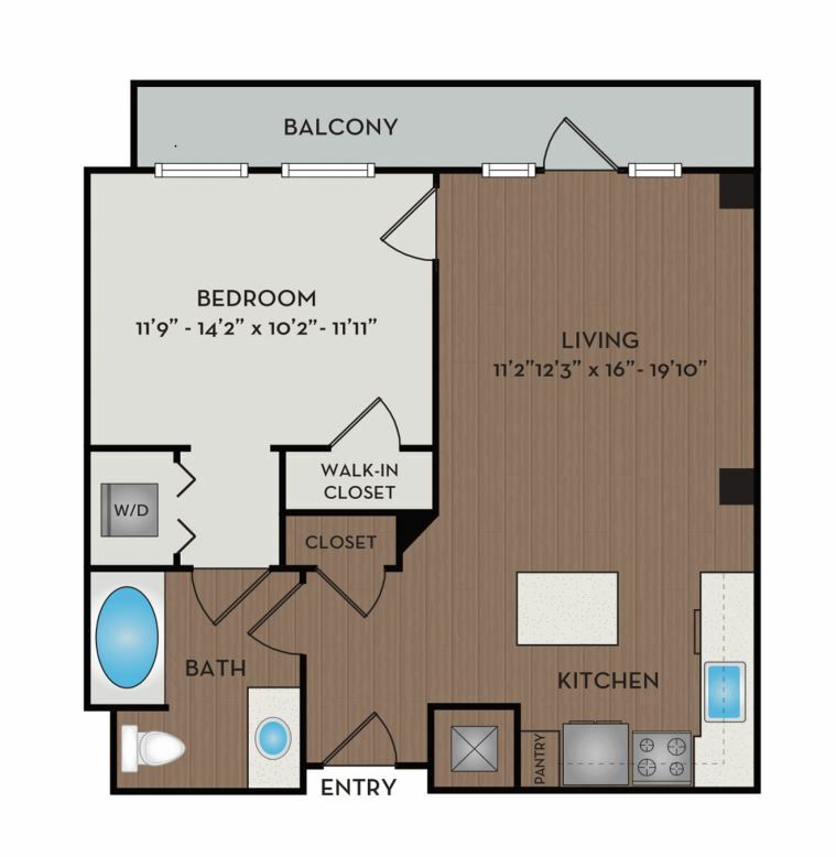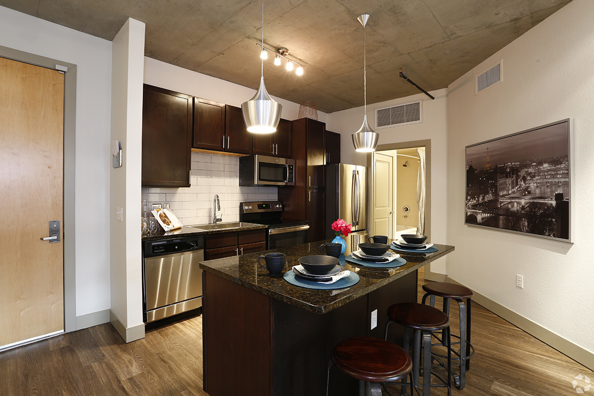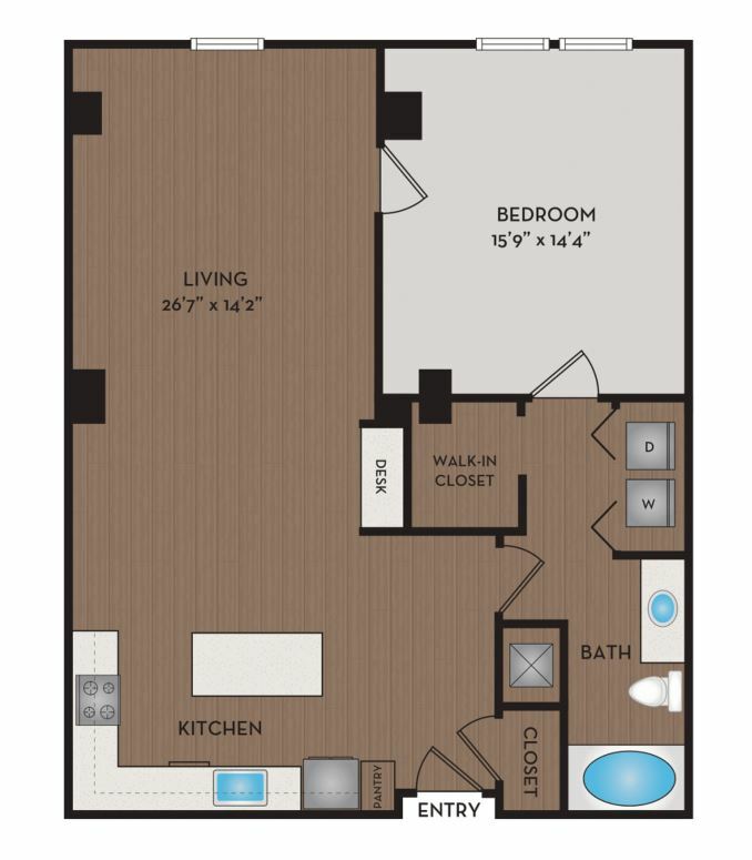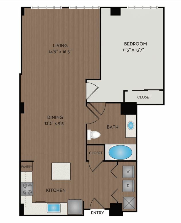 Our contemporary homes have high ceilings and exposed ductwork for a more industrial feel and design. The fully equipped kitchens come with tracked lighting, granite countertops, and a chef’s island. Washer and dryer sets, built-in desks, and air conditioning make these homes even more convenient. You can also opt for a floor plan with a study if you need extra space. After a hectic day, give yourself a relaxing soak in your garden tub or indulge in the gorgeous city views from your patio or balcony. At the end of the day, get cozy in your bedroom with plush carpeting. A convenient life awaits you at TwentyOne01 on Market.