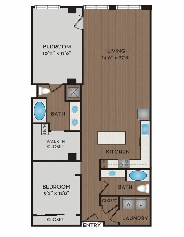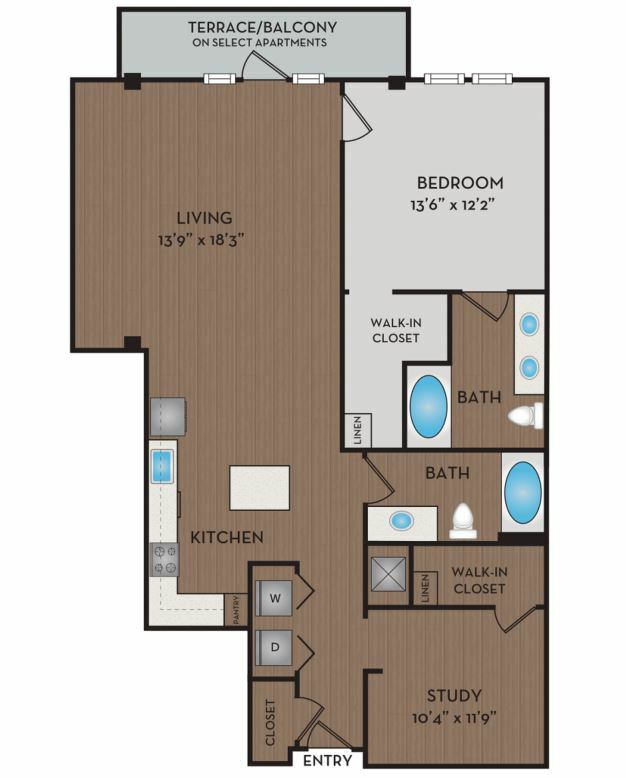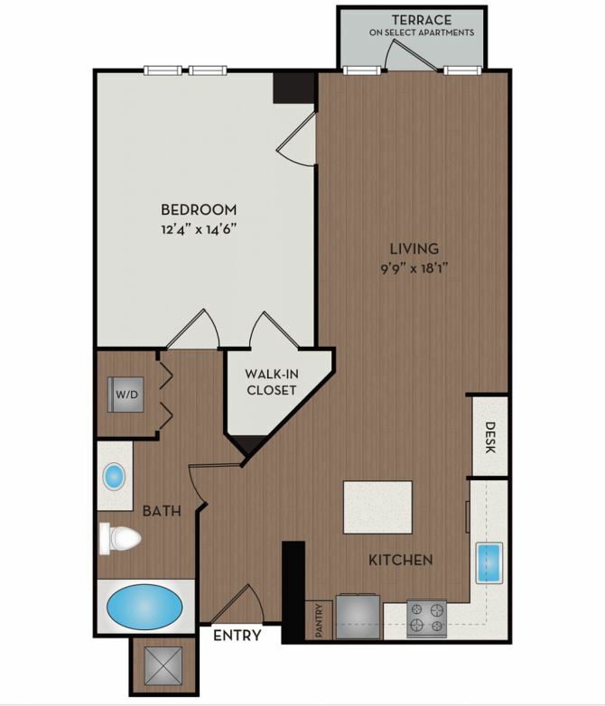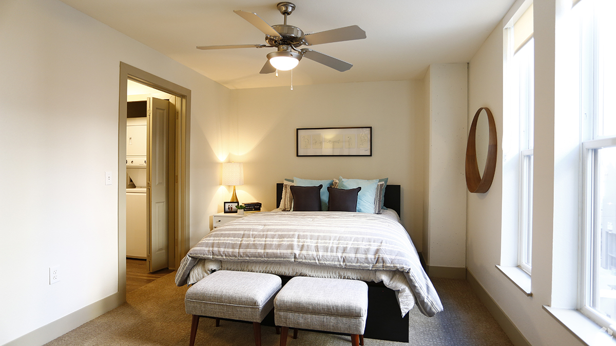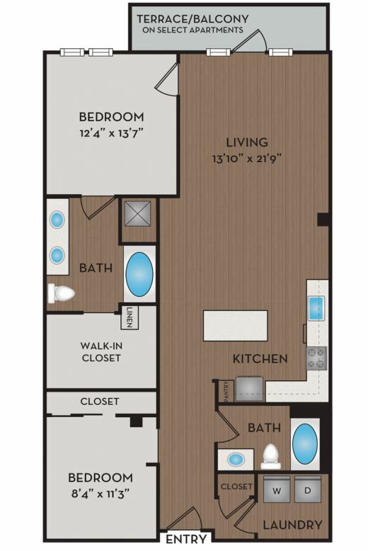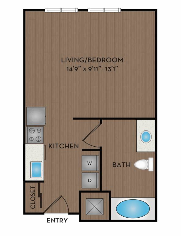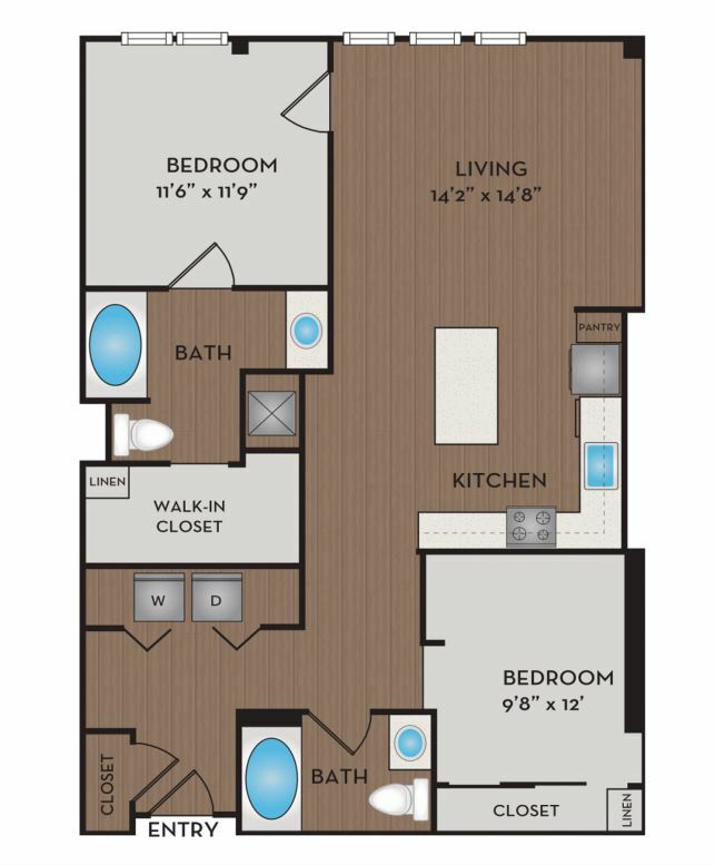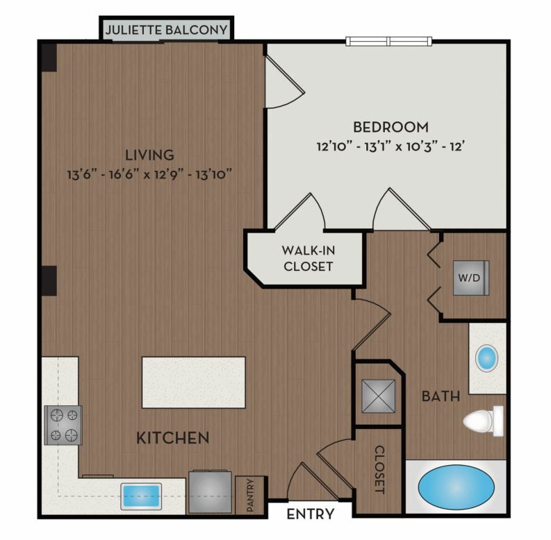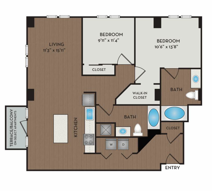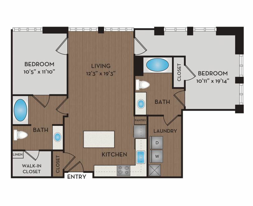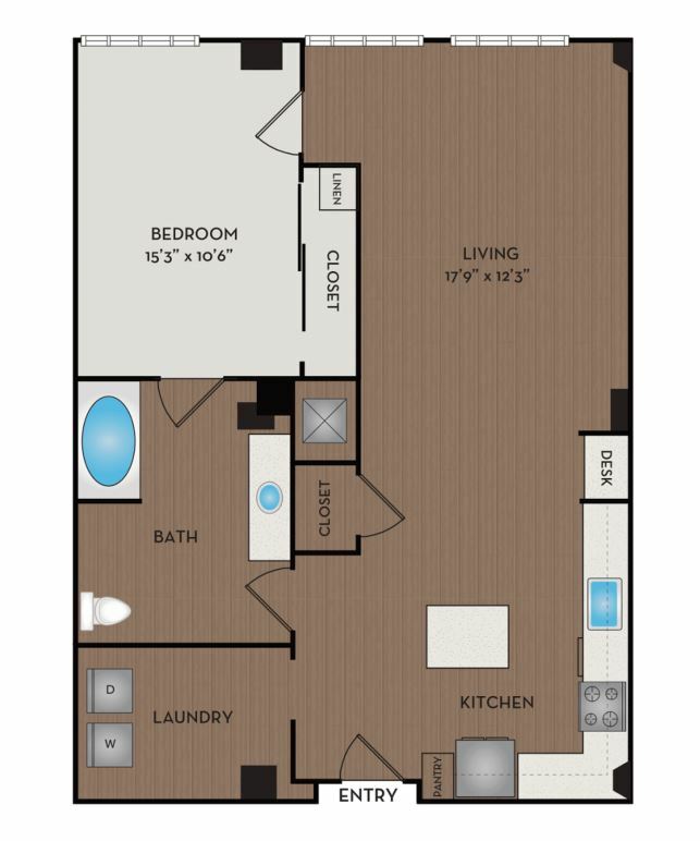 Our contemporary homes have high ceilings and exposed ductwork for a more industrial feel and design. The fully equipped kitchens come with tracked lighting, granite countertops, and a chef’s island. Washer and dryer sets, built-in desks, and air conditioning make these homes even more convenient. You can also opt for a floor plan with a study if you need extra space. After a hectic day, give yourself a relaxing soak in your garden tub or indulge in the gorgeous city views from your patio or balcony. At the end of the day, get cozy in your bedroom with plush carpeting. A convenient life awaits you at TwentyOne01 on Market.