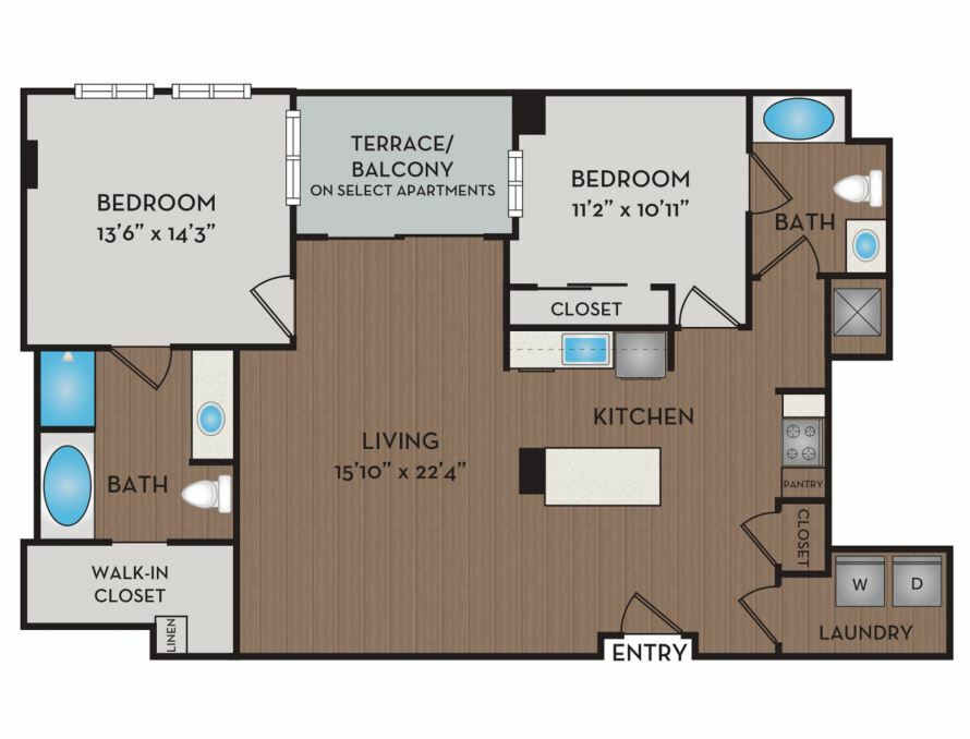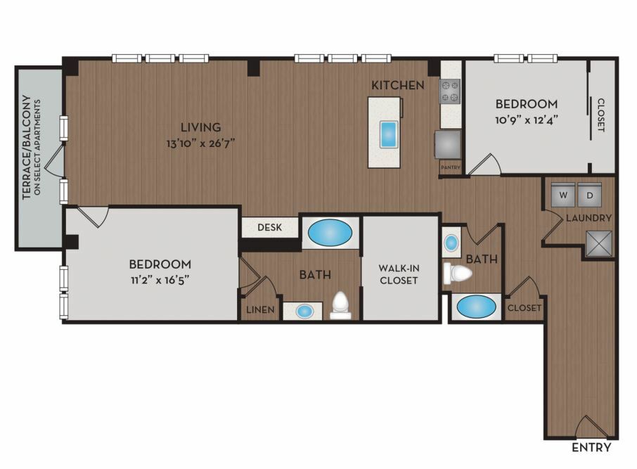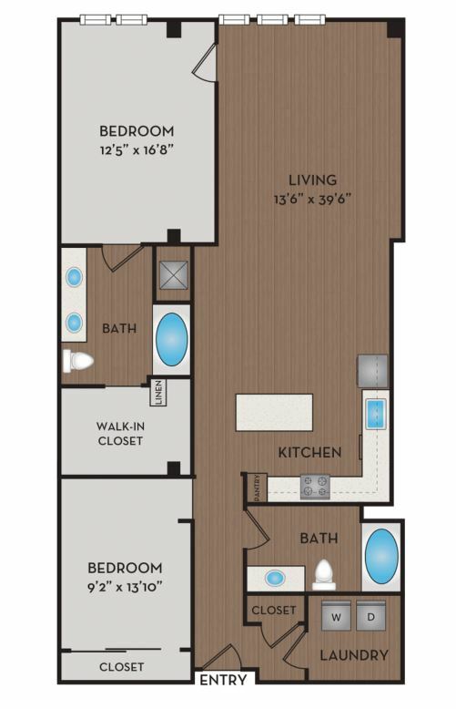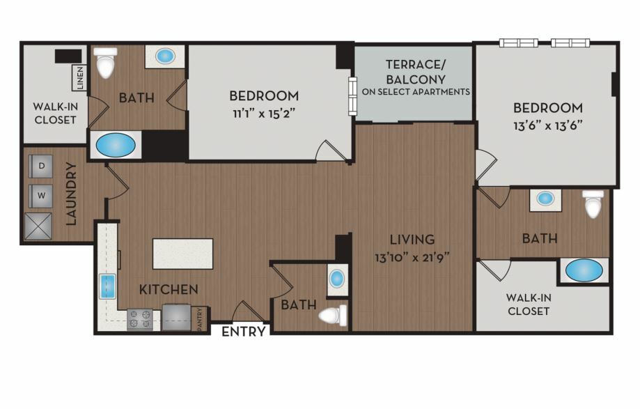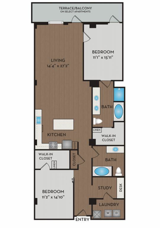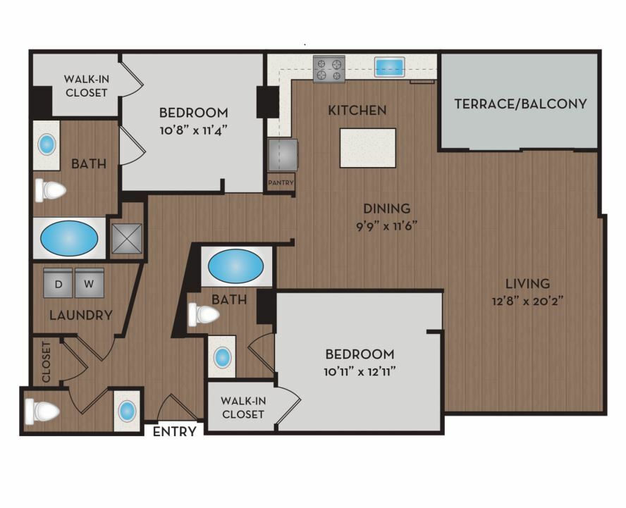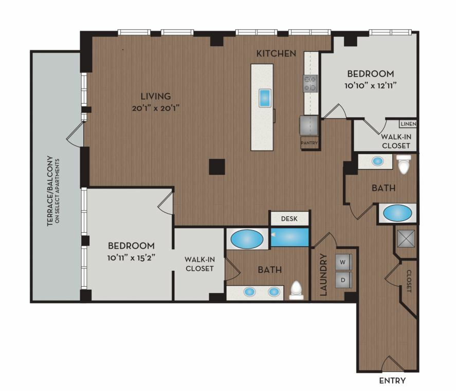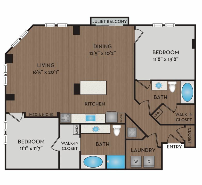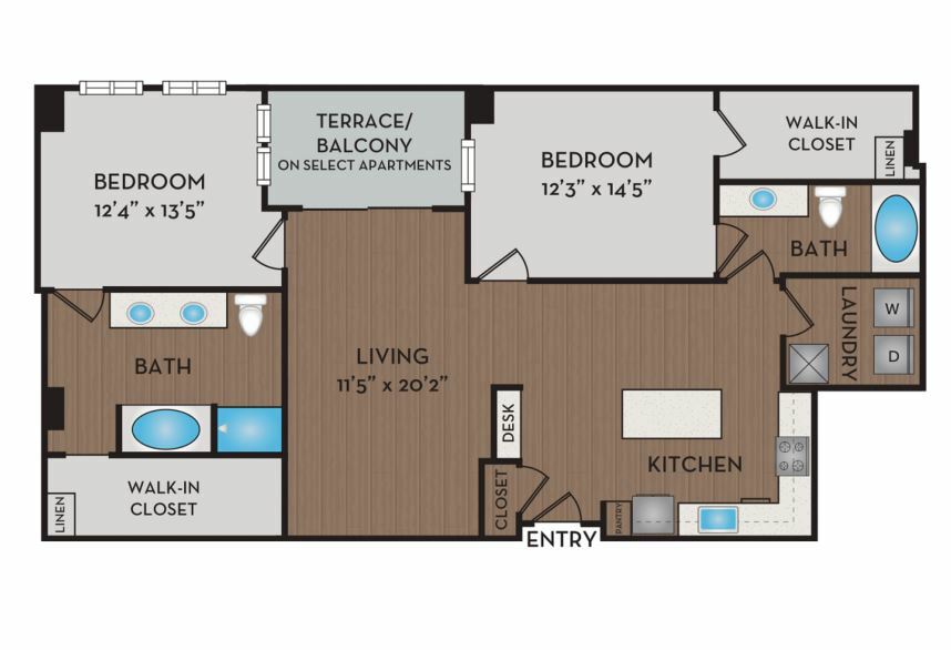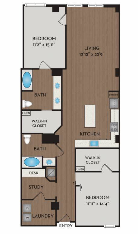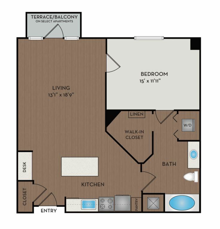 Our contemporary homes have high ceilings and exposed ductwork for a more industrial feel and design. The fully equipped kitchens come with tracked lighting, granite countertops, and a chef’s island. Washer and dryer sets, built-in desks, and air conditioning make these homes even more convenient. You can also opt for a floor plan with a study if you need extra space. After a hectic day, give yourself a relaxing soak in your garden tub or indulge in the gorgeous city views from your patio or balcony. At the end of the day, get cozy in your bedroom with plush carpeting. A convenient life awaits you at TwentyOne01 on Market.