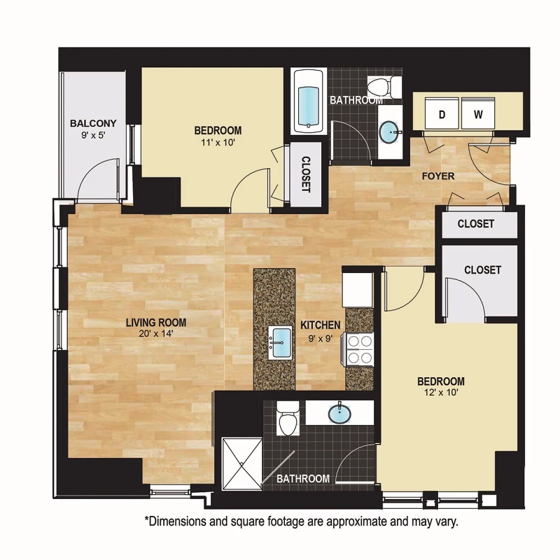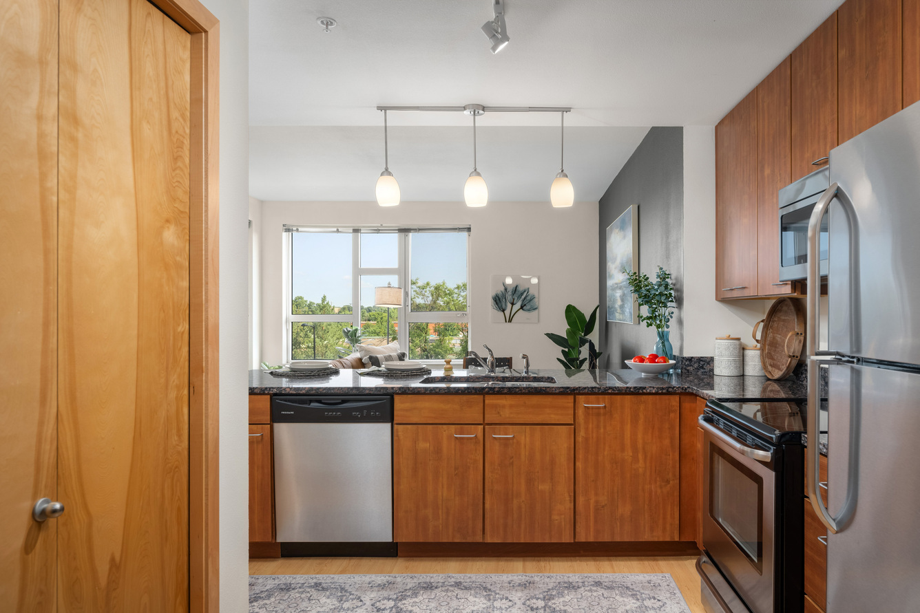 Inside our ultramodern one and two bedroom floor plans, you’ll find the perfect blend of luxury and convenience. Complete your laundry at home thanks to full-size washers and dryers and keep your wardrobe organized in expansive walk-in closets. To prepare your favorite meals in style, head to the spacious kitchen, which boasts sleek stainless steel appliances, as well as stylish granite countertops. Select layouts also feature a terrace or balcony.