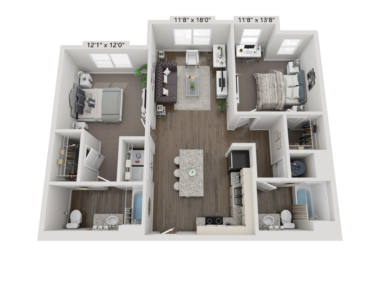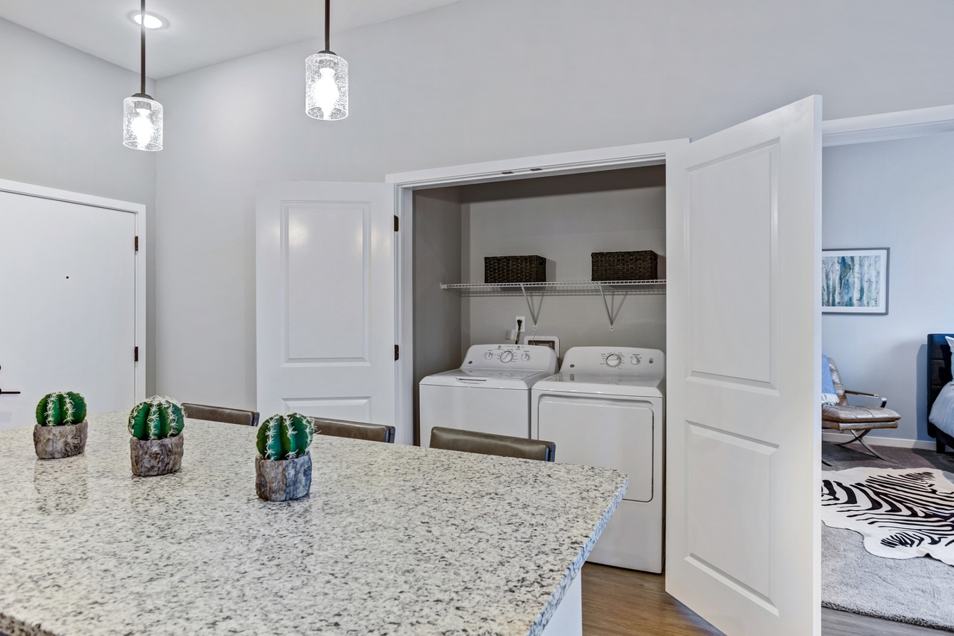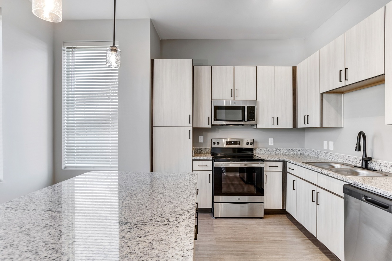 Designed to maximize storage space, these open floor plans feature expansive walk-in closets in the bedrooms well as 42-inch, European-style cabinets in the kitchen and bathrooms. For added functionality, each home includes a stainless steel appliance package and a full-size washer and dryer set. When it’s time to eat, enjoy home-cooked meals on a built-in island or breakfast bar complete with sleek granite countertops. In select layouts, you’ll also find a private patio or balcony.