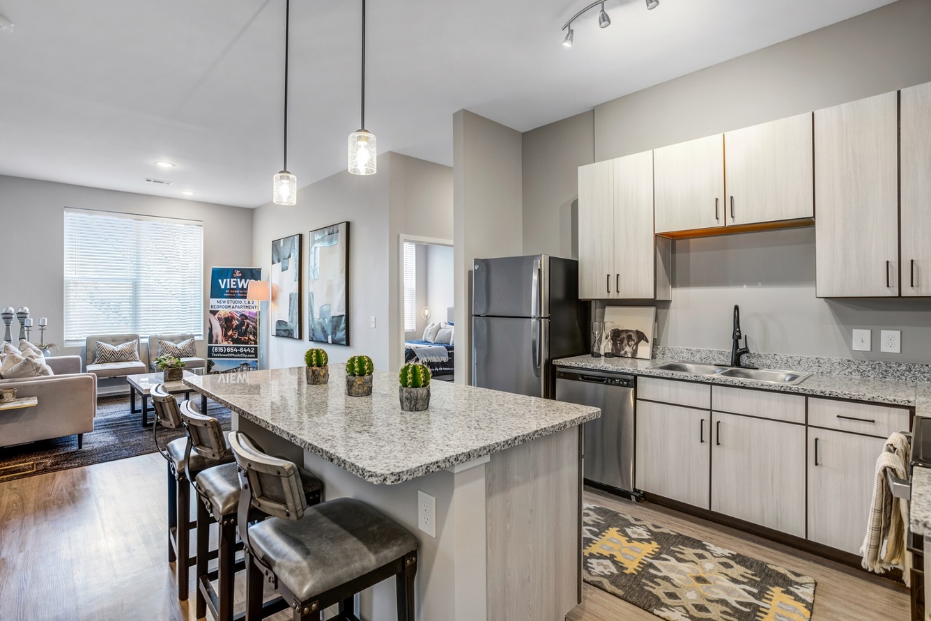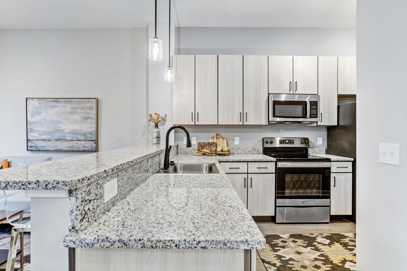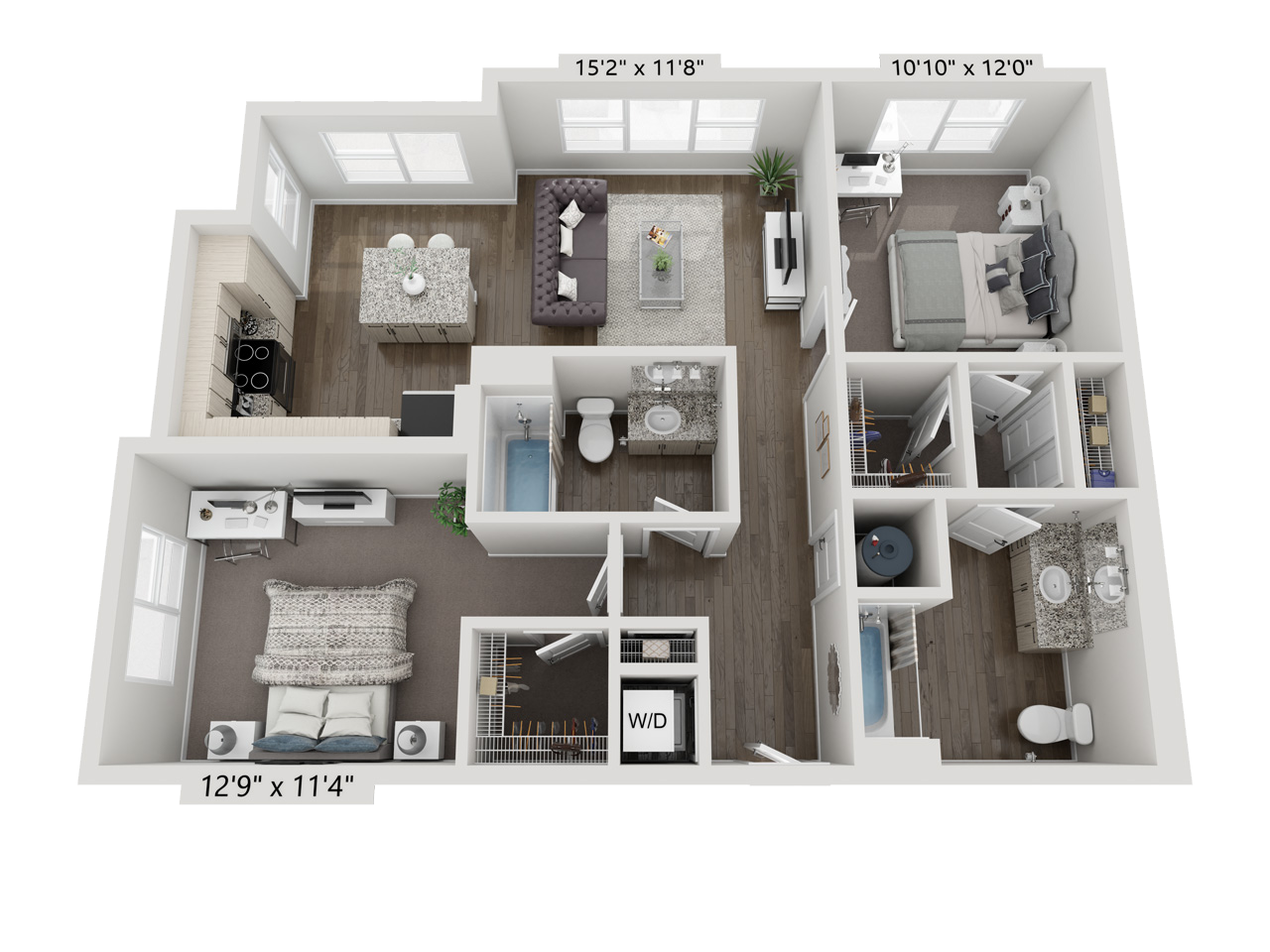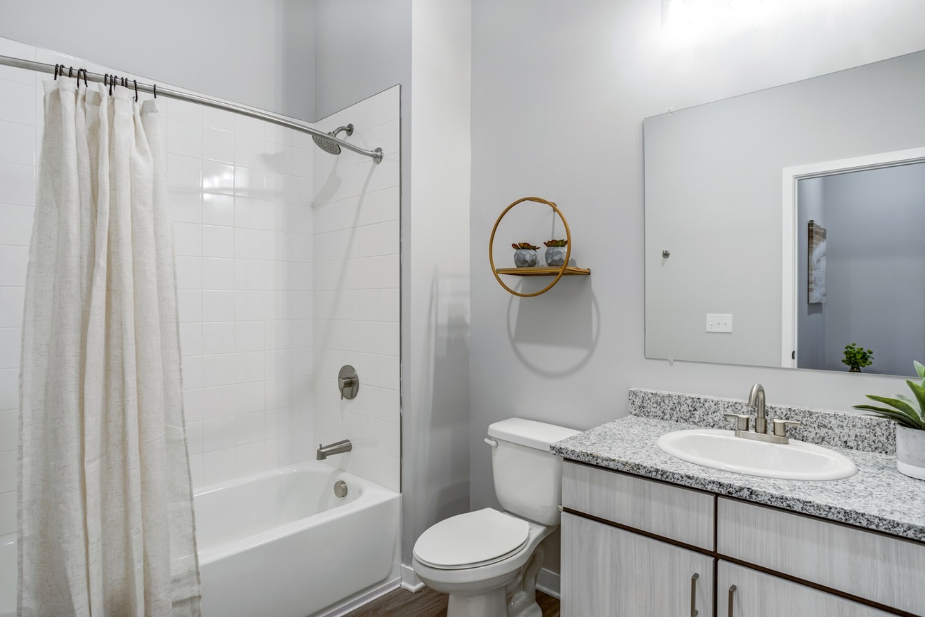 Designed to maximize storage space, these open floor plans feature expansive walk-in closets in the bedrooms well as 42-inch, European-style cabinets in the kitchen and bathrooms. For added functionality, each home includes a stainless steel appliance package and a full-size washer and dryer set. When it’s time to eat, enjoy home-cooked meals on a built-in island or breakfast bar complete with sleek granite countertops. In select layouts, you’ll also find a private patio or balcony.