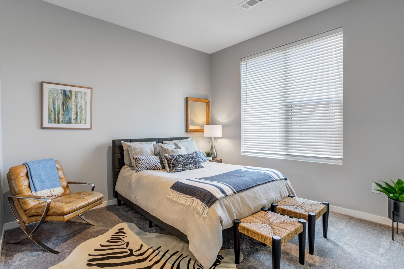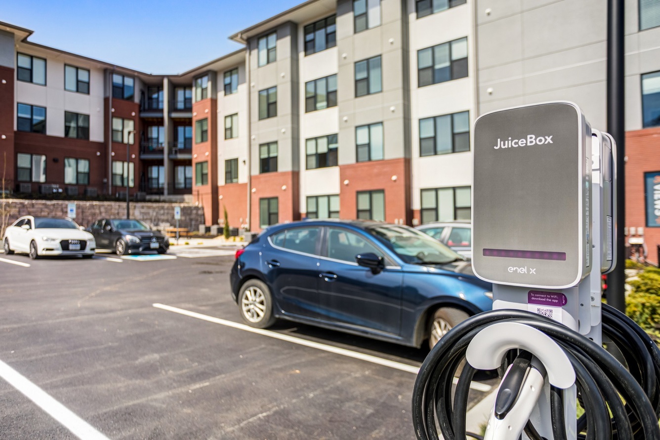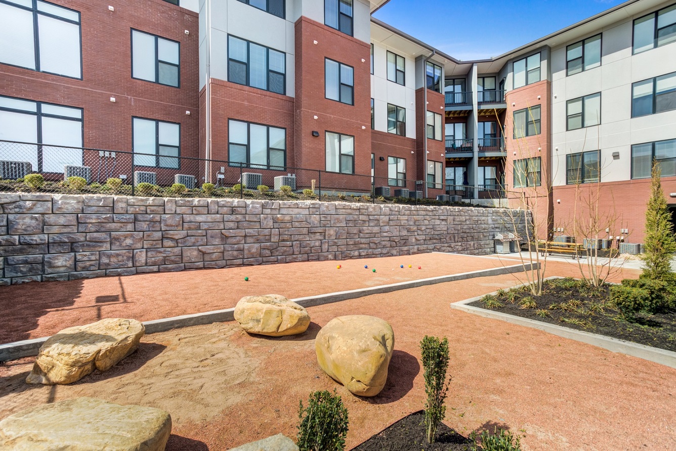 Outside your apartment, the community welcomes you with a collection of lush landscapes and impressive amenities. Spend your spare time in the inviting courtyard, where you can fire up dinner on a barbecue grill, cozy up beside a relaxing fire pit, or challenge your neighbors to a game of bocce ball. Package lockers and electric car charging stations are available for your convenience.