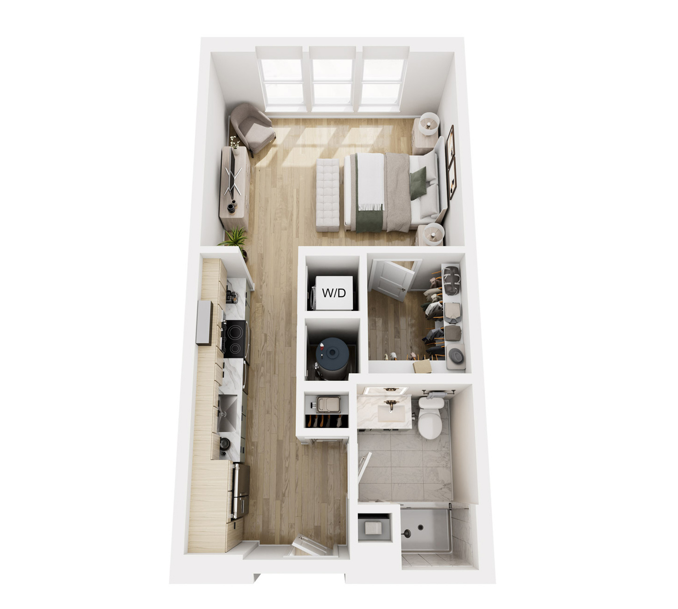 At Wellory Living, you’re free to move the way life moves. Start with coffee in the clubhouse, take a midday meeting in the coworking lounge, and wind down in an infrared sauna before dinner with friends on the rooftop deck.